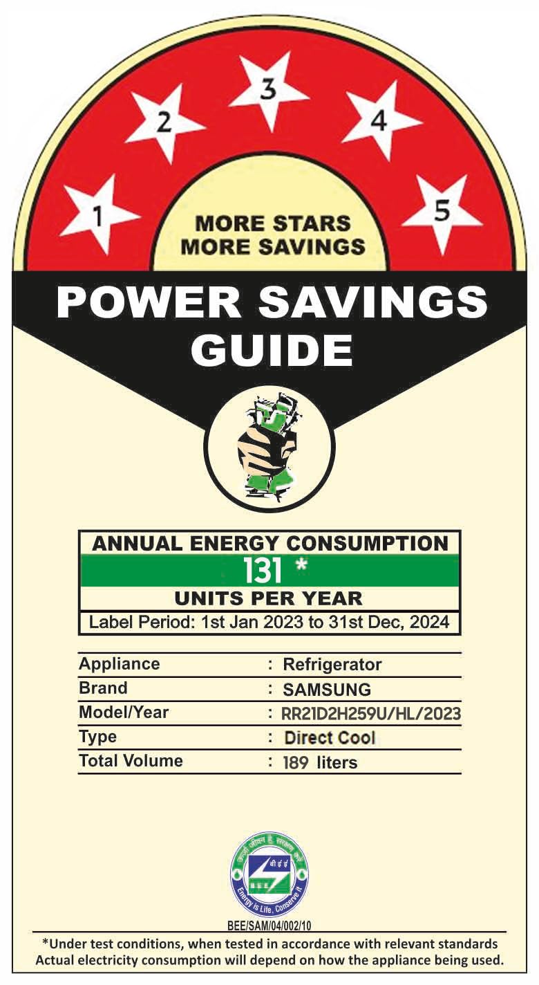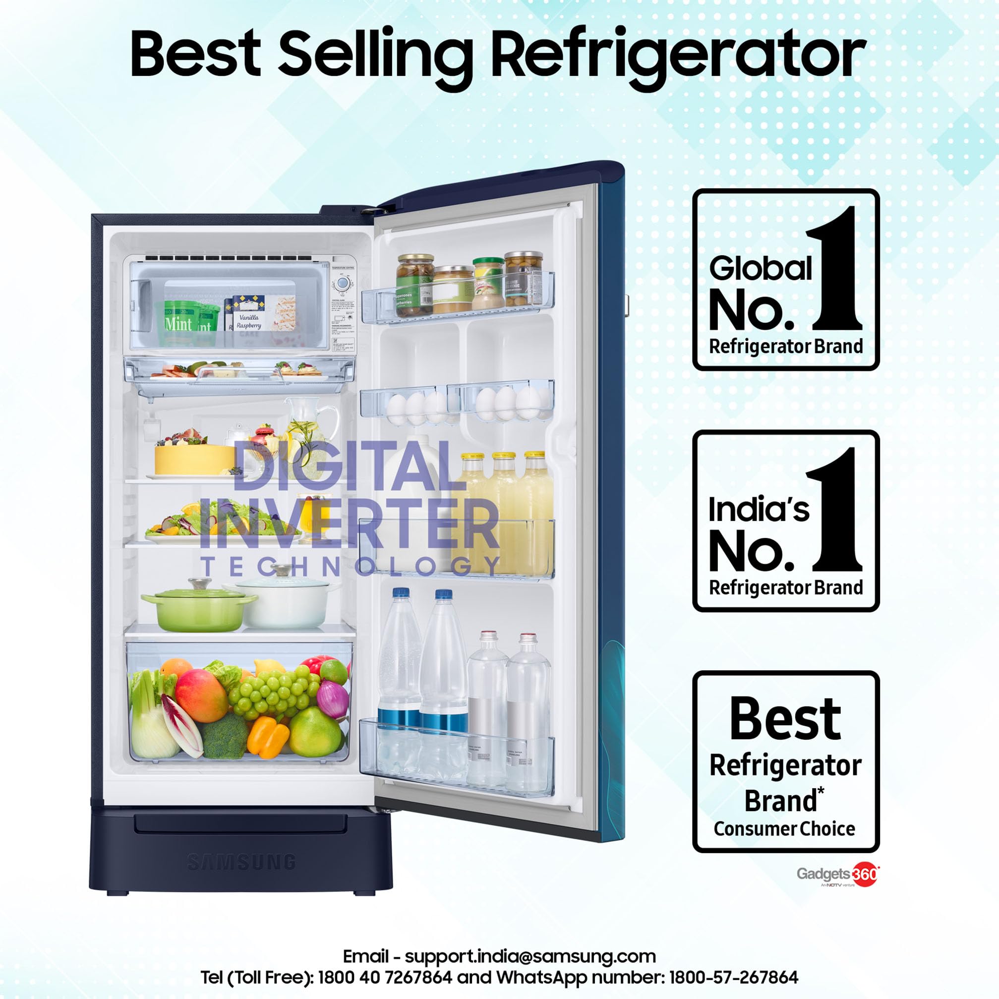 Samsung 189 L, 5 Star, Digital Inverter, Direct-Cool Single Door Refrigerator (RR21D2H259U/HL, Paradise Bloom Blue, Base Stand Drawer)