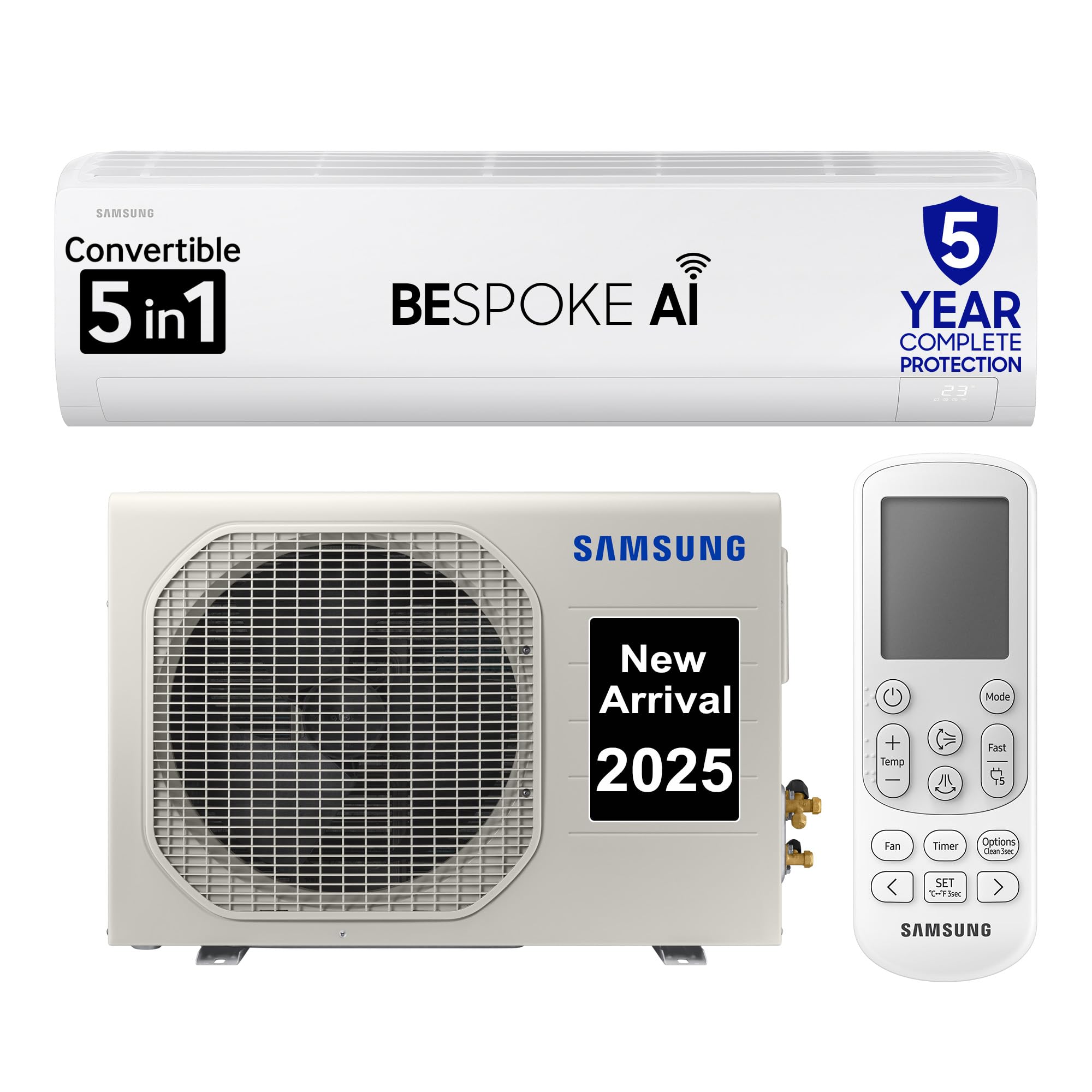 Samsung 2 Ton 3 Star AI Inverter Smart Split AC (BESPOKE AI, Energy Saving, Wi-Fi, Voice Control, Powerful Cooling, 100% Copper, 4 Way swing, Convertible 5in1, 2025 Model AR50F24D1XHNNA, White)