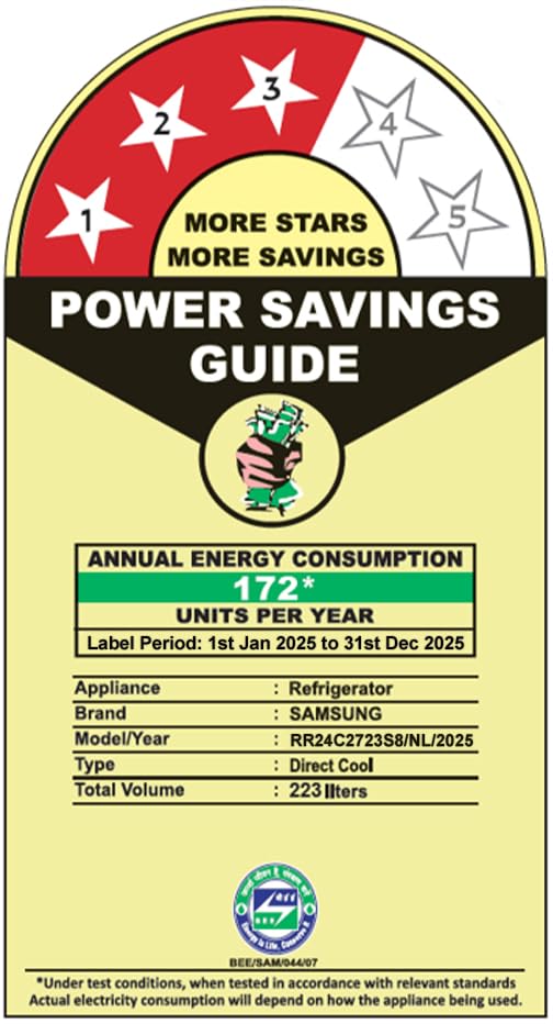 Samsung 223 L, 3 Star Inverter Direct-Cool Single Door Refrigerator (RR24C2723S8/NL, Silver, Elegant Inox)
