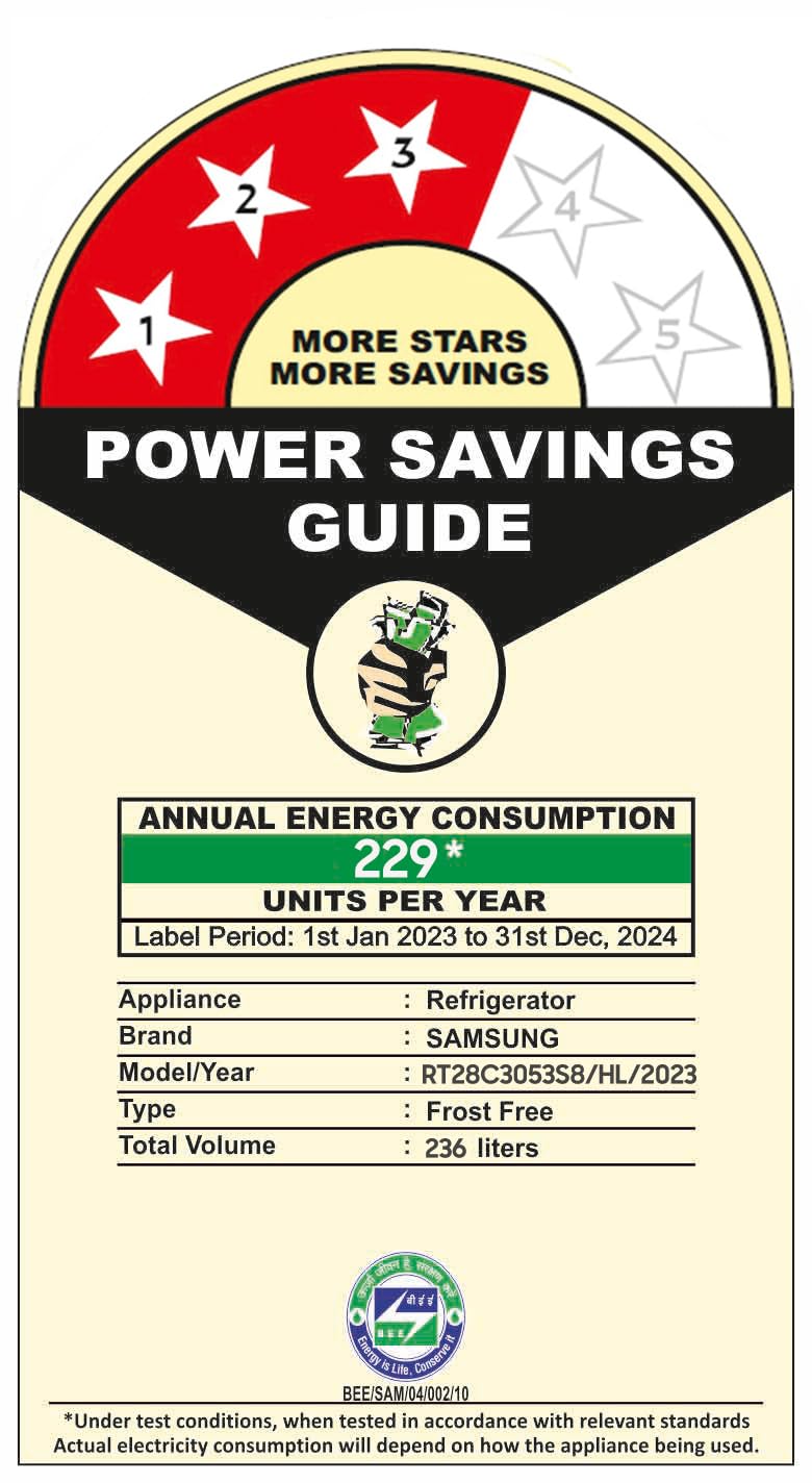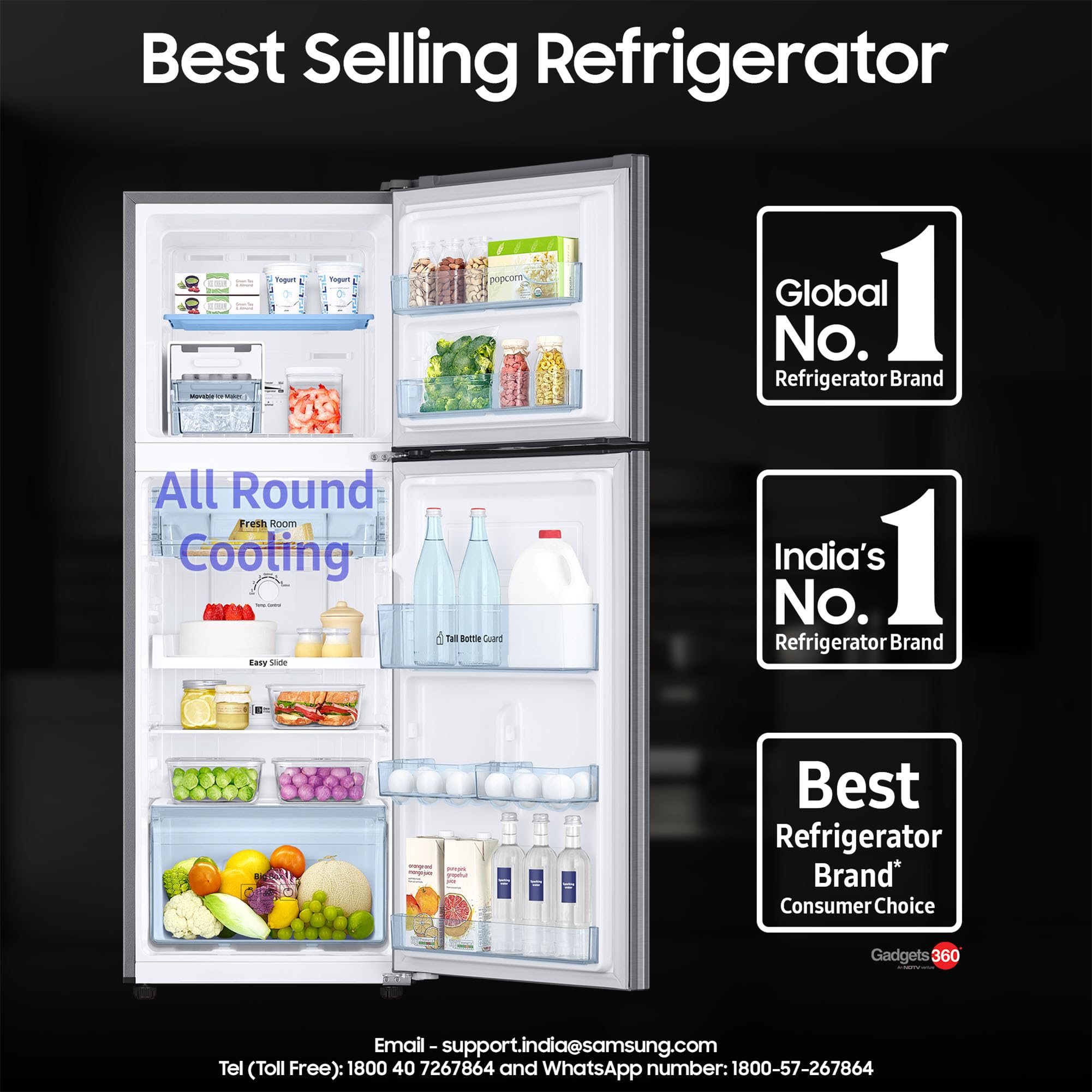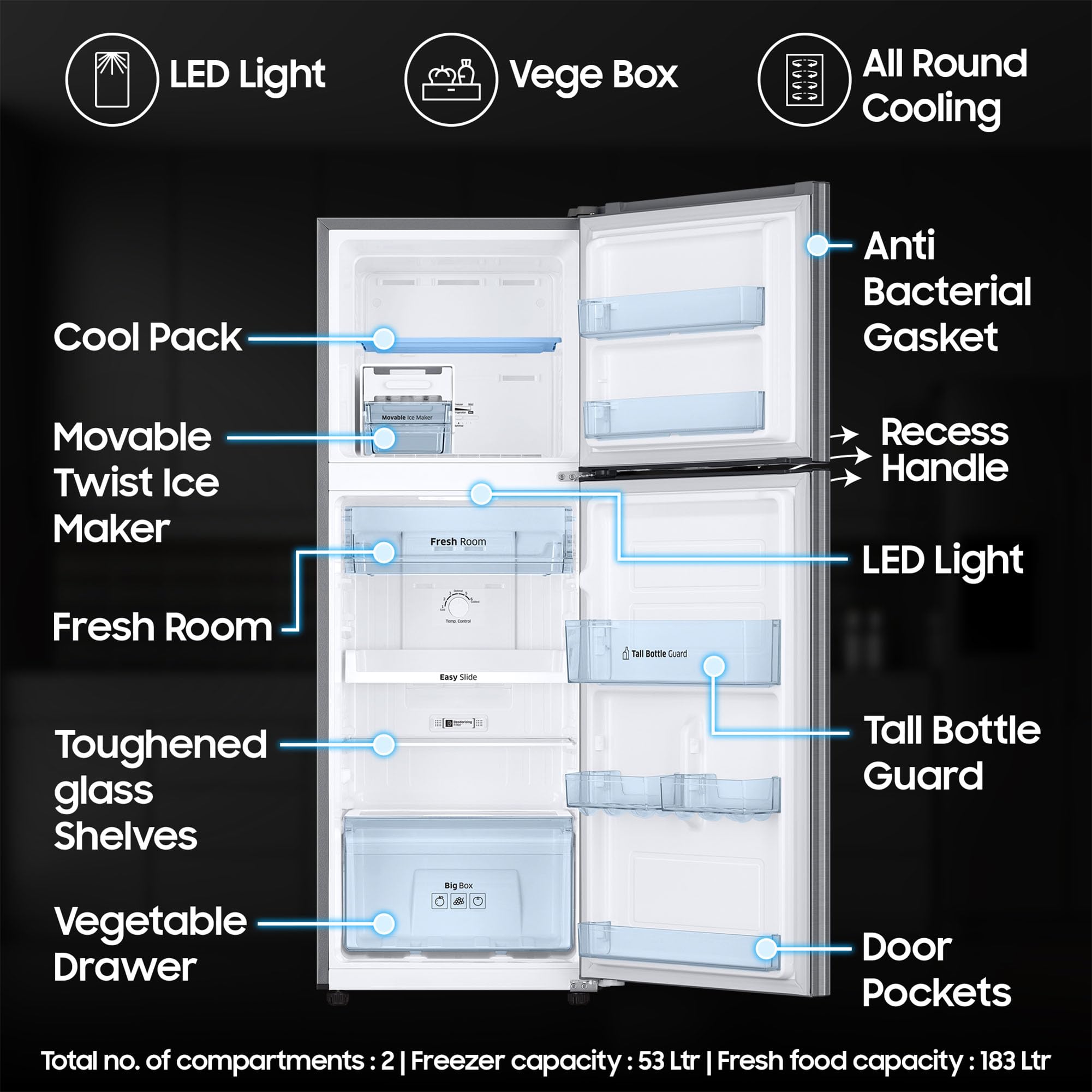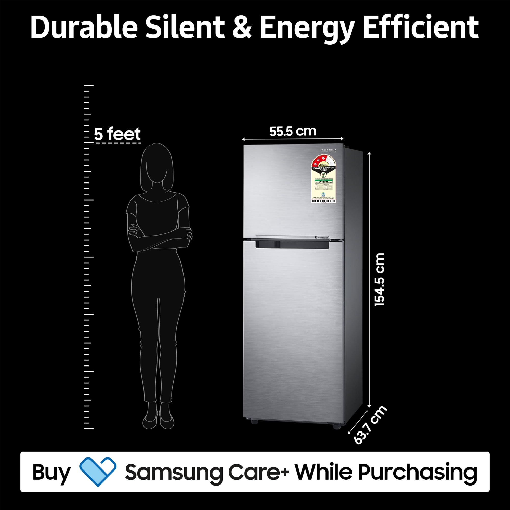 Samsung 236 L, 3 Star, Digital Inverter, Frost Free Double Door Refrigerator (RT28C3053S8/HL, Silver, Elegant Inox)