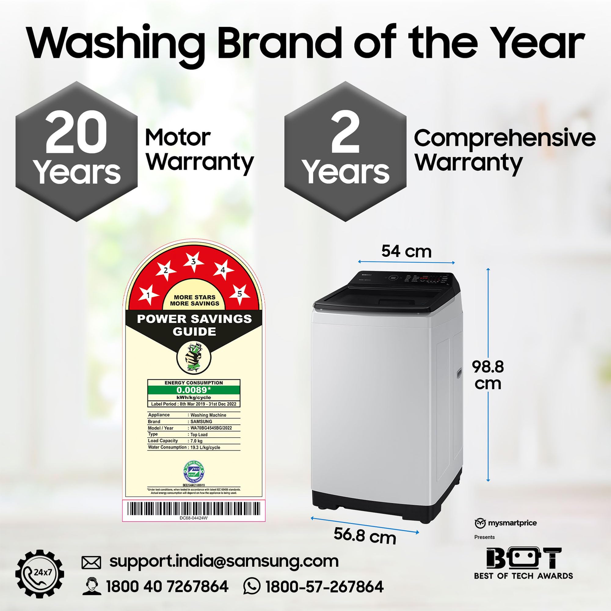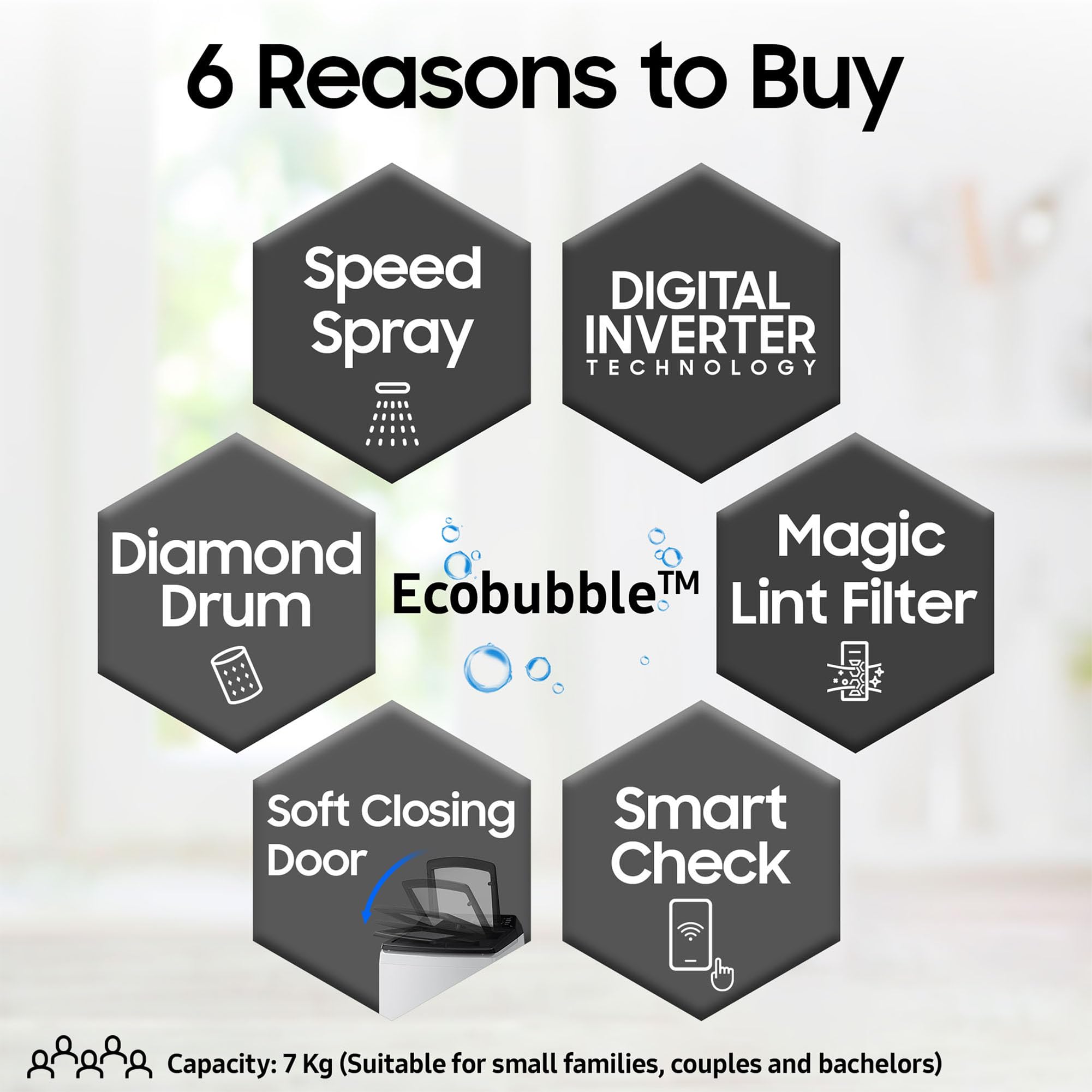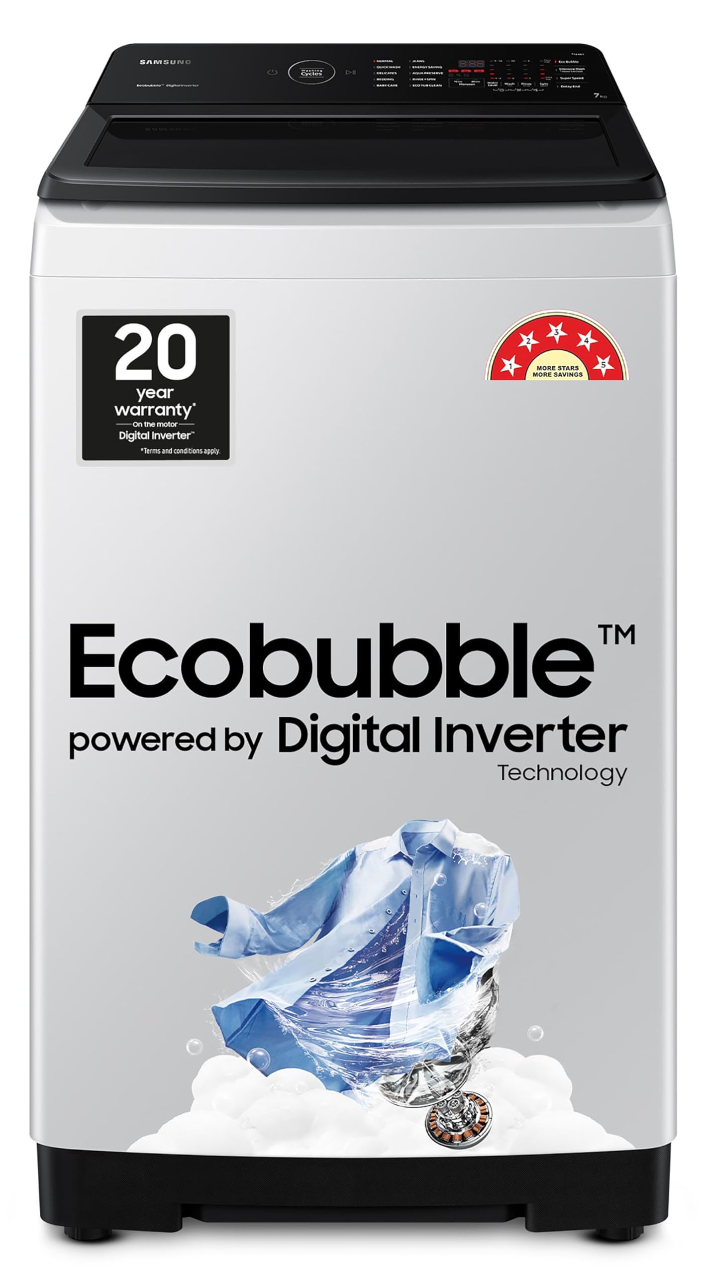 Samsung 7 kg, 5 star, Eco Bubble Technology with Super Speed, Soft Closing Door, Fully-Automatic Top Load Washing Machine (WA70BG4545BGTL, Light Gray)