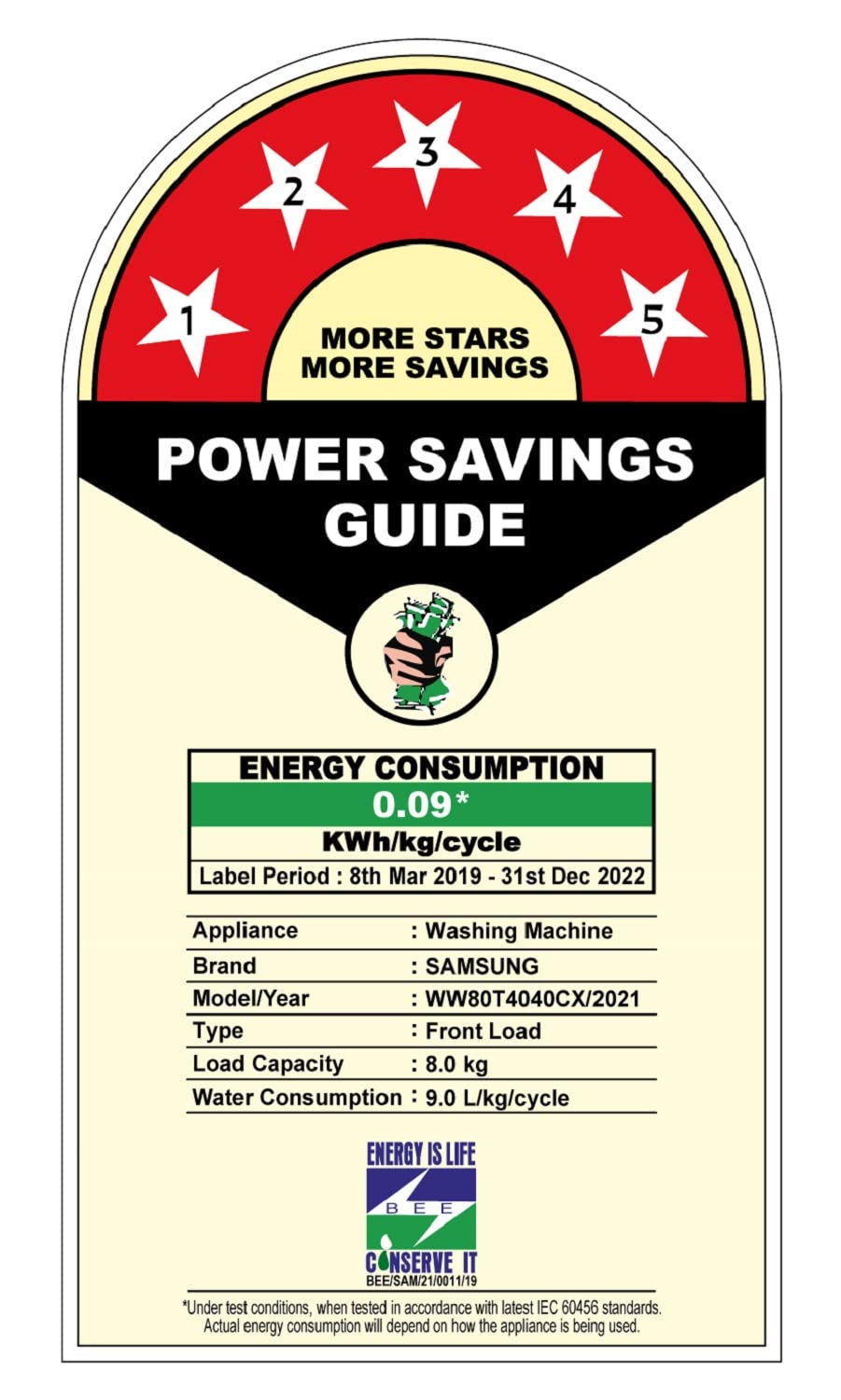 Samsung 8 kg, 5 Star, Digital Inverter Motor, Fully-Automatic Front Load Washing Machine Appliance (WW80T4040CX1TL, Hygiene Steam, Inox)