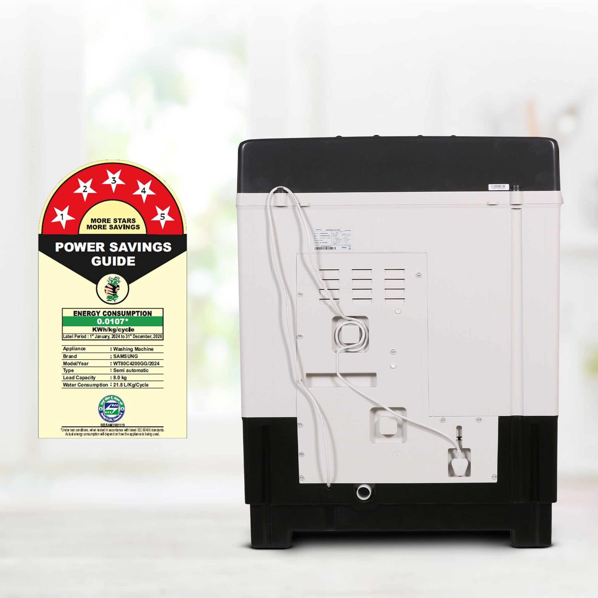 Samsung 8 kg, 5 star, Semi-Automatic Top Load Washing Machine (WT80C4200GG/TL, Air Turbo Drying, Light Gray, 2023 Model)