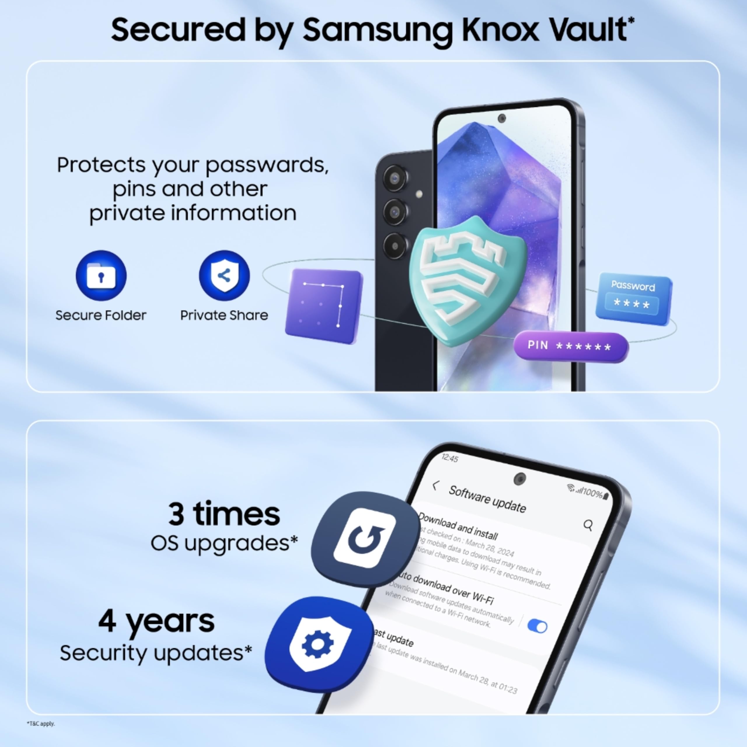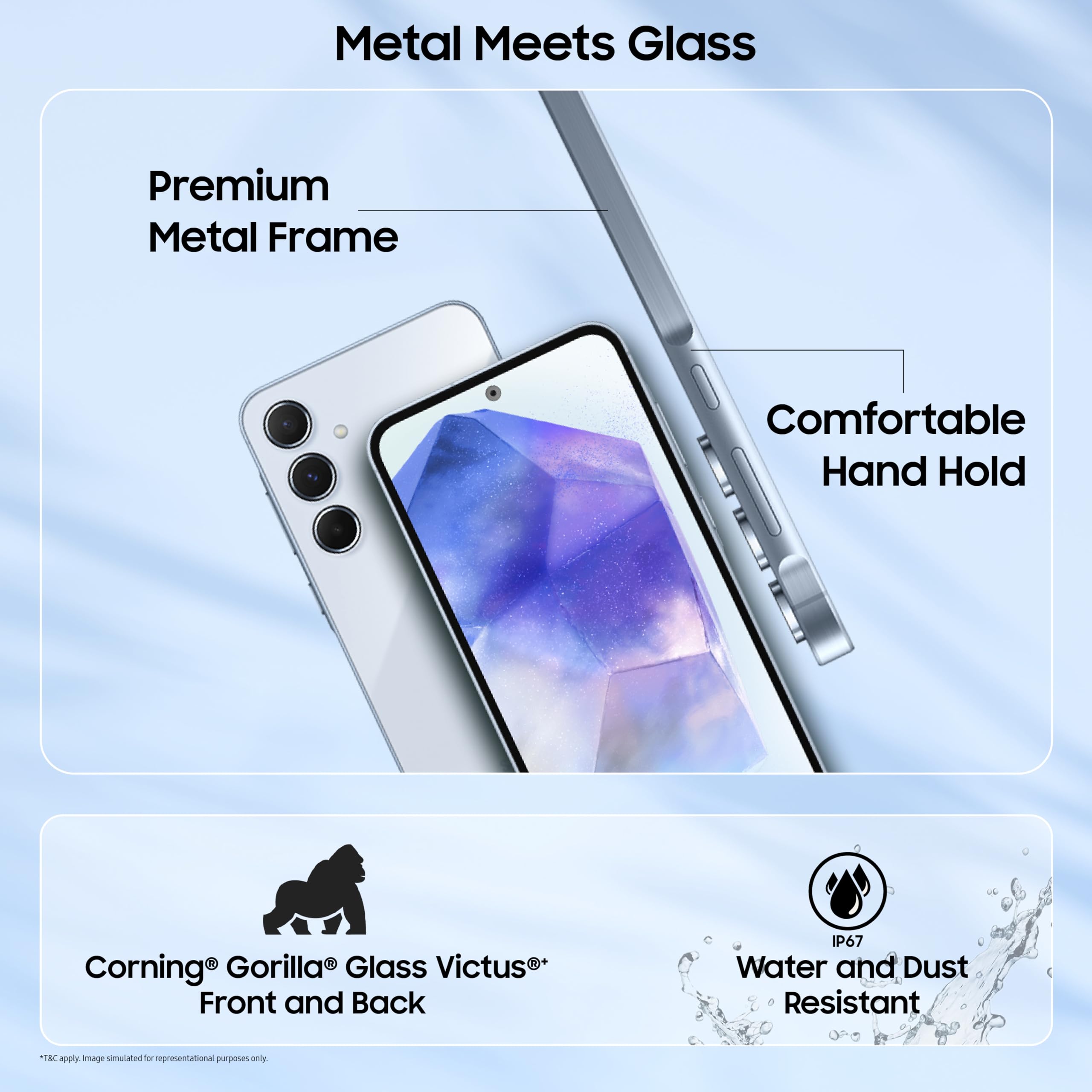 Samsung Galaxy A55 5G (Awesome Navy, 8GB RAM, 256GB Storage) | AI | Metal Frame | 50 MP Main Camera (OIS) | Super HDR Video| Nightography | IP67 | Corning Gorilla Glass Victus+ | sAMOLED Display