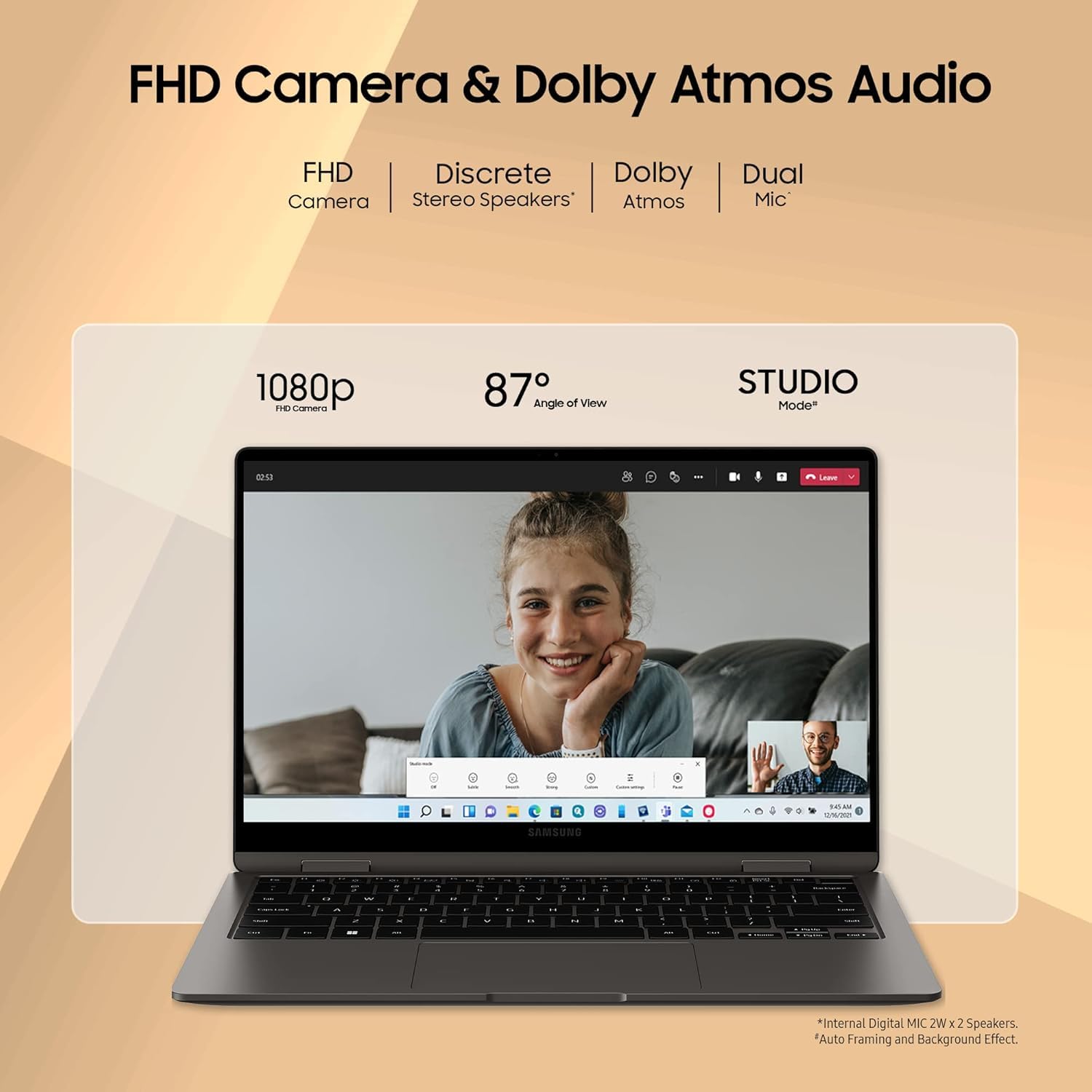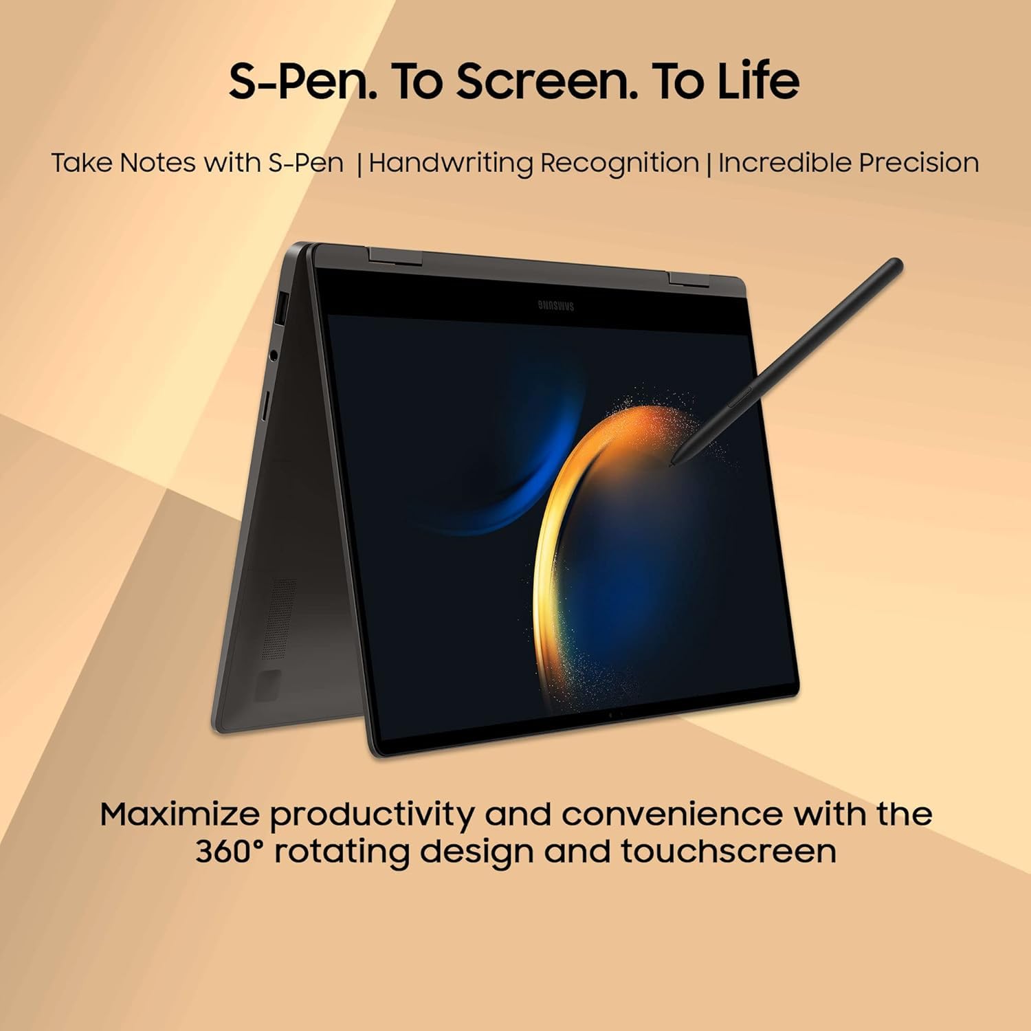 Samsung Galaxy Book3 360 Intel 13th Gen i7 EvoTM 33.78cm(13.3") Super Amoled 2-in-1 Touchscreen Laptop (16 GB/512GB SSD/Windows11/MSOffice/BacklitKB/Fingerprint Sensor/Graphite/1.16Kg), NP730QFG-LA1IN