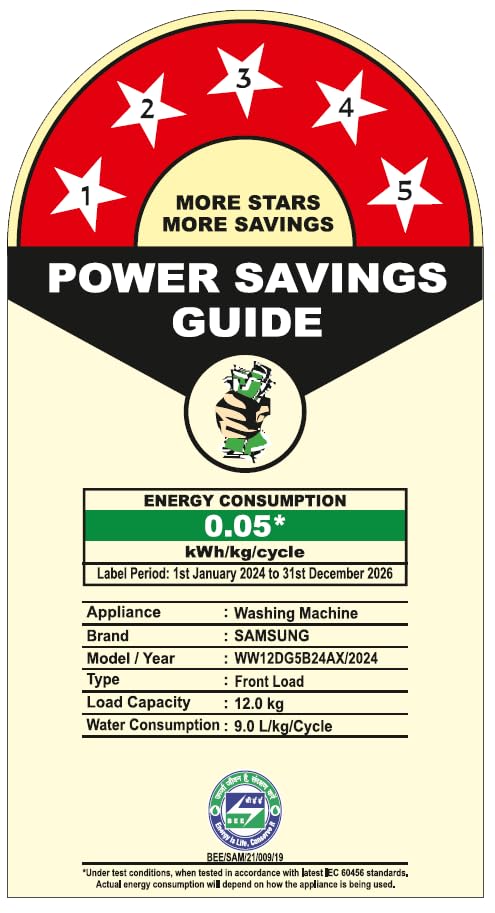Samsung Smart Choice 12 kg, 5star, AI Ecobubble, Super Speed, Wi-Fi, Hygiene Steam with Inbuilt Heater, Digital Inverter, Fully-Automatic Front Load Washing Machine (WW12DG5B24AXTL, Inox)