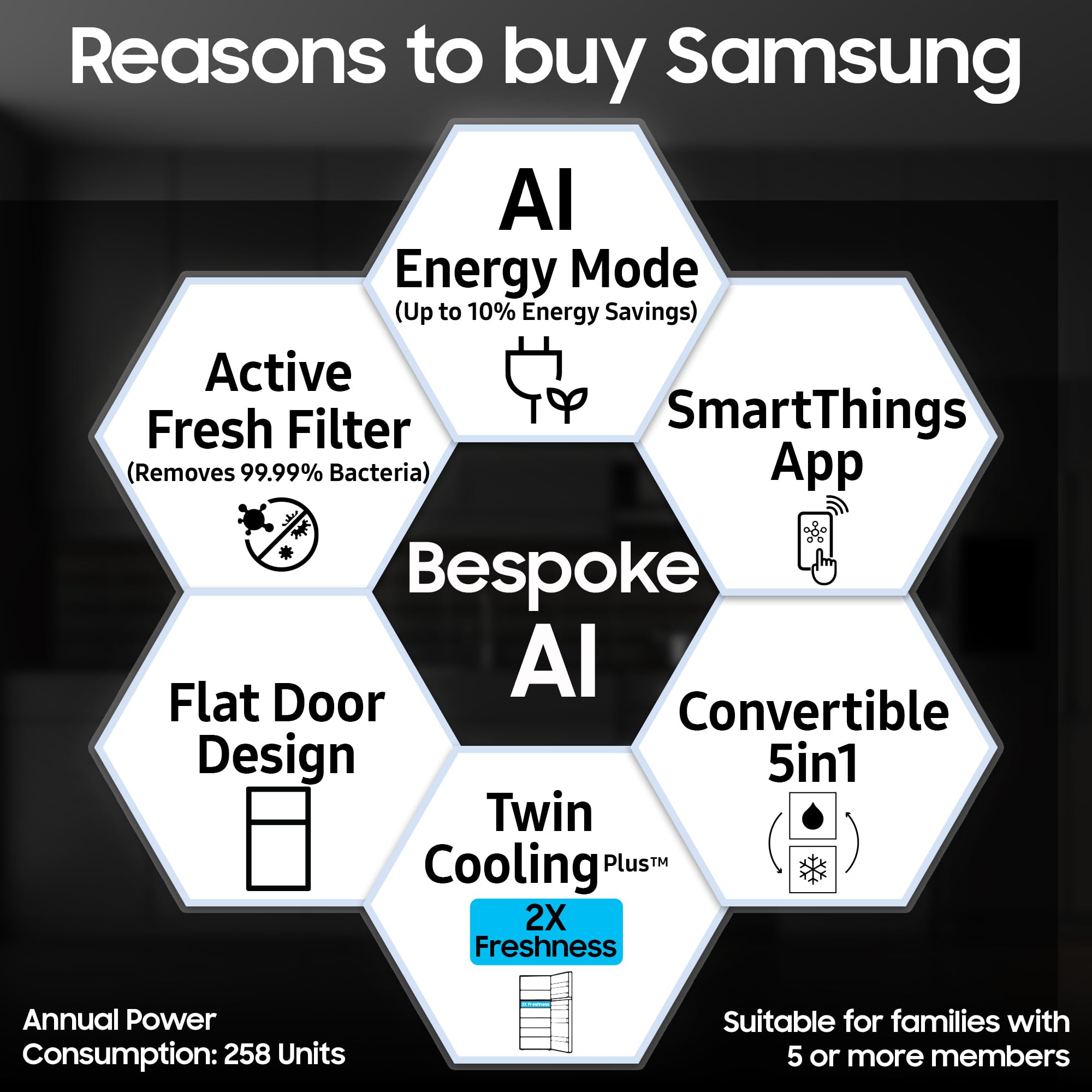 Brand: SamsungColor: BlackFeatures: Frost Free Refrigerator with Bespoke AI: Premium Auto Defrost with powerful cooling and long lasting freshness. Powered... Read more