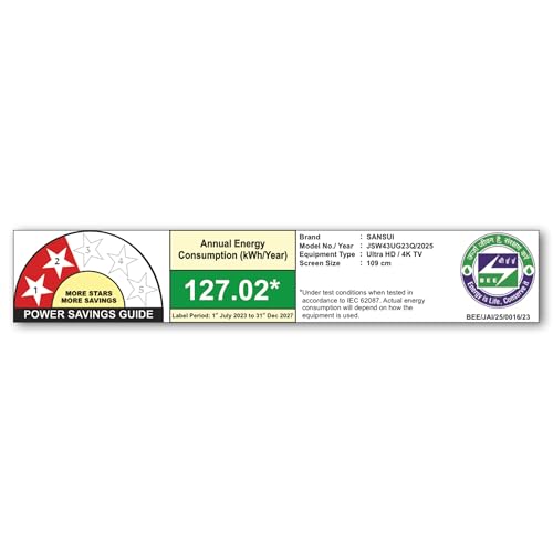 SANSUI 2025 New Launch 109cm (43) | 4K UHD Smart Google 5.0 (Android 14) | HDR10 & HLG| Dolby Vision| MEMC| HSR120 Hz| QLED TV | JSW43UG23Q (Black)