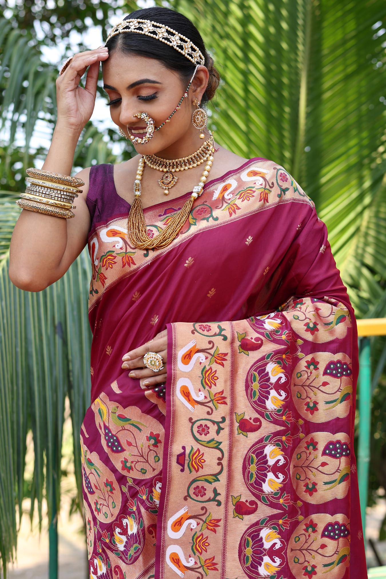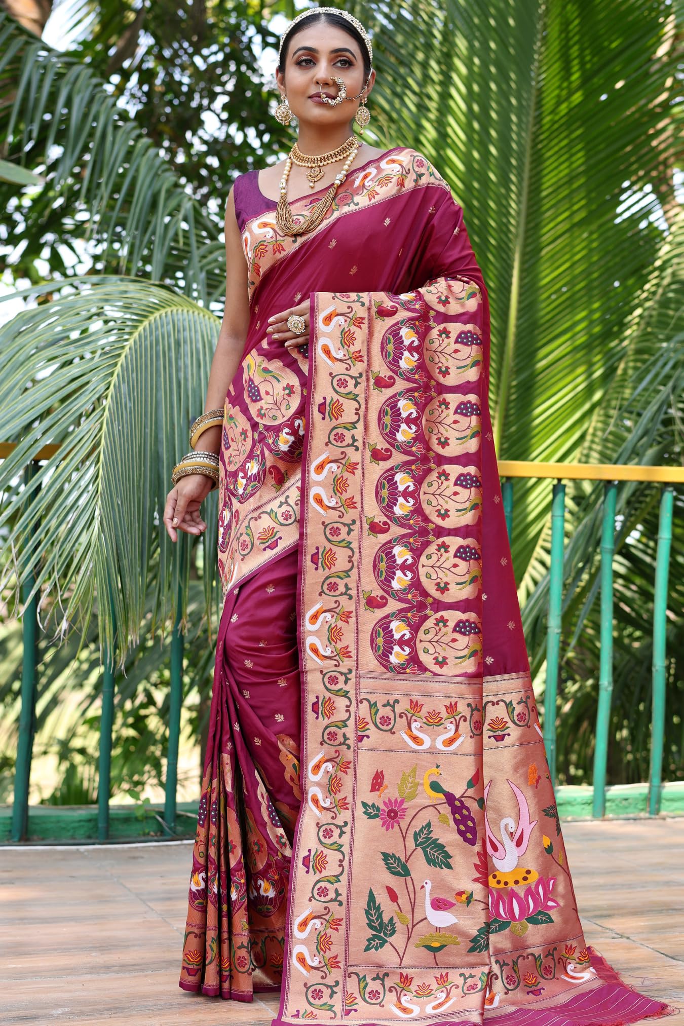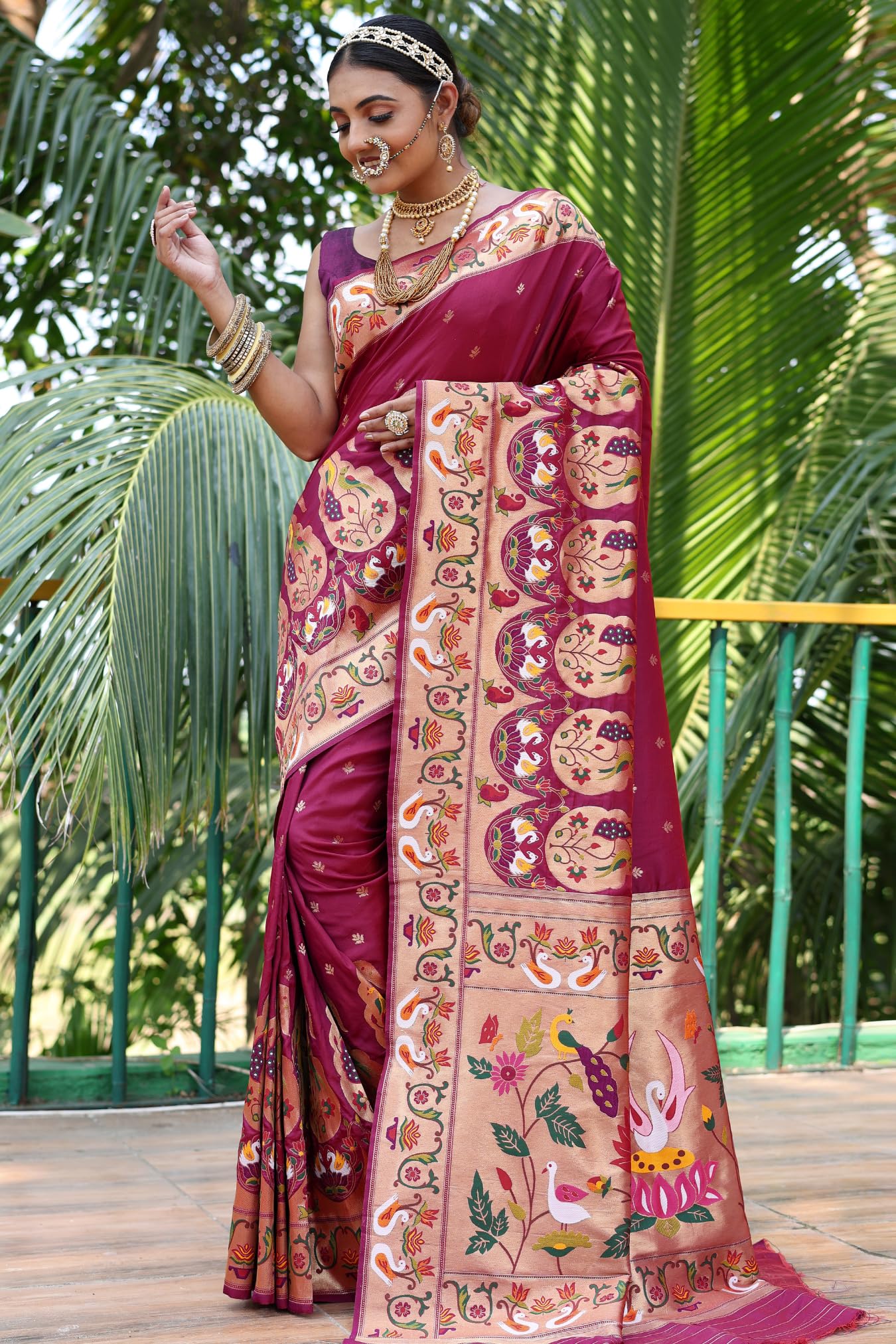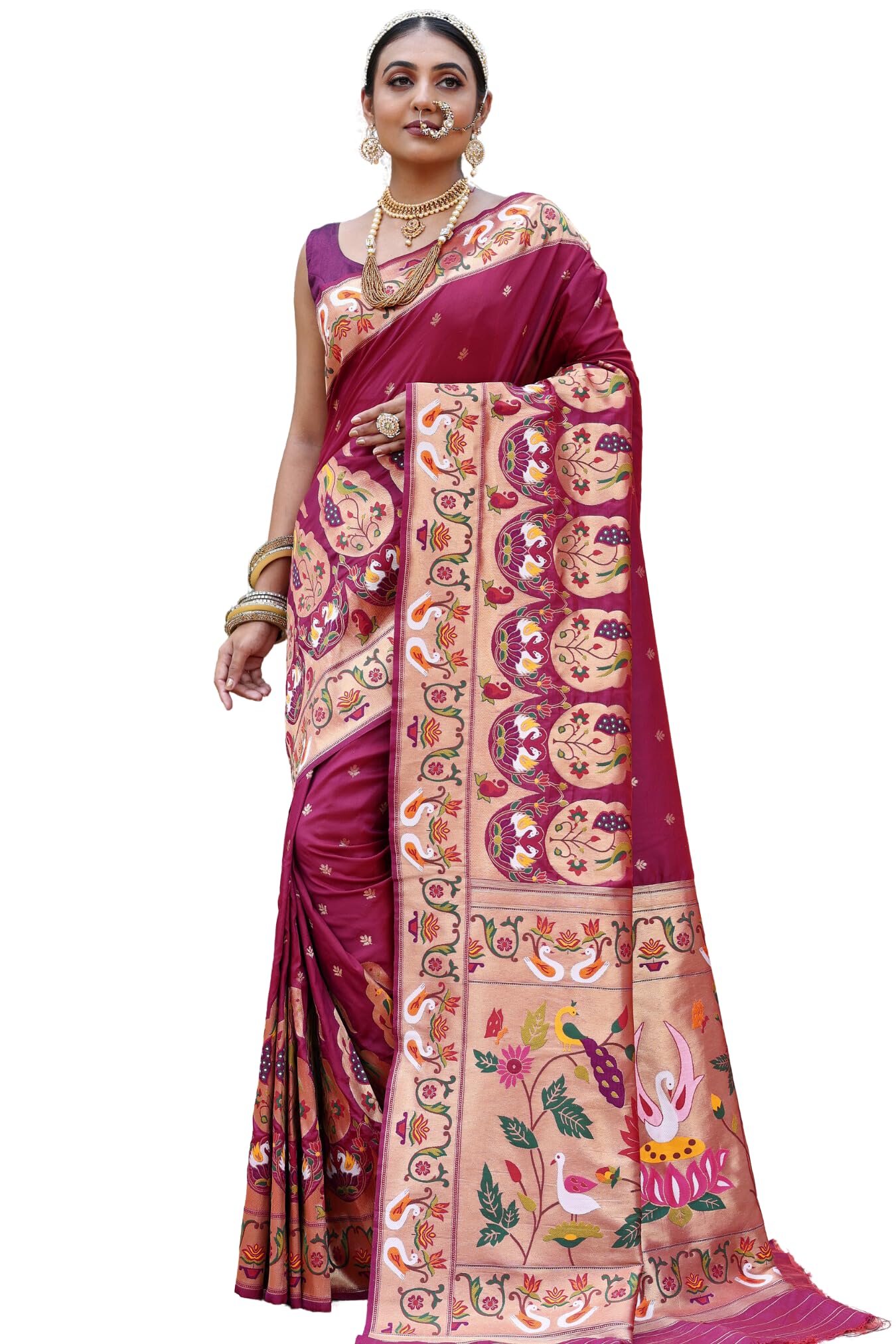 SGF11 Women's Kanjivaram Paithani Silk Saree Pure Golden Zari With Blouse Piece(Rani Pink)