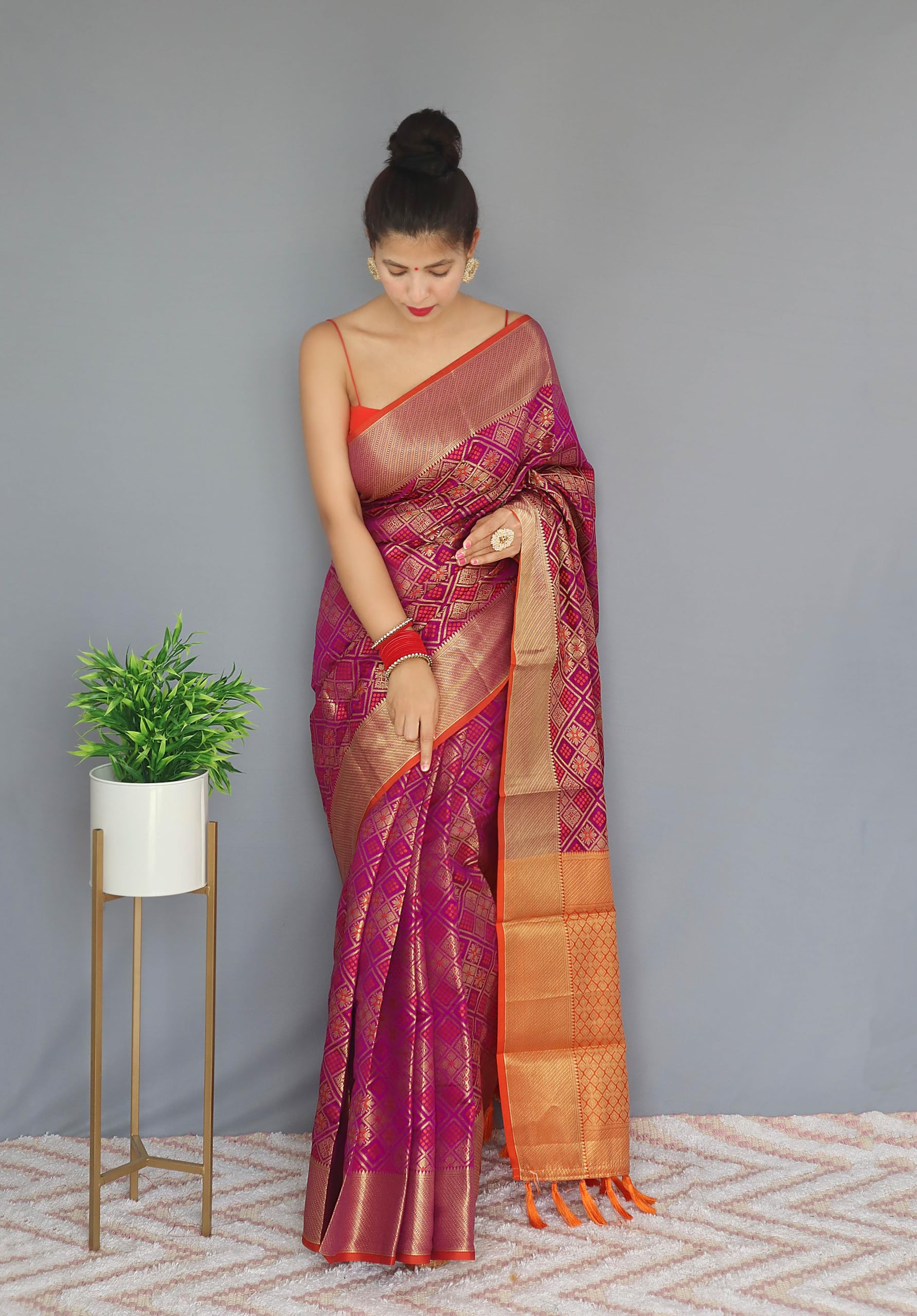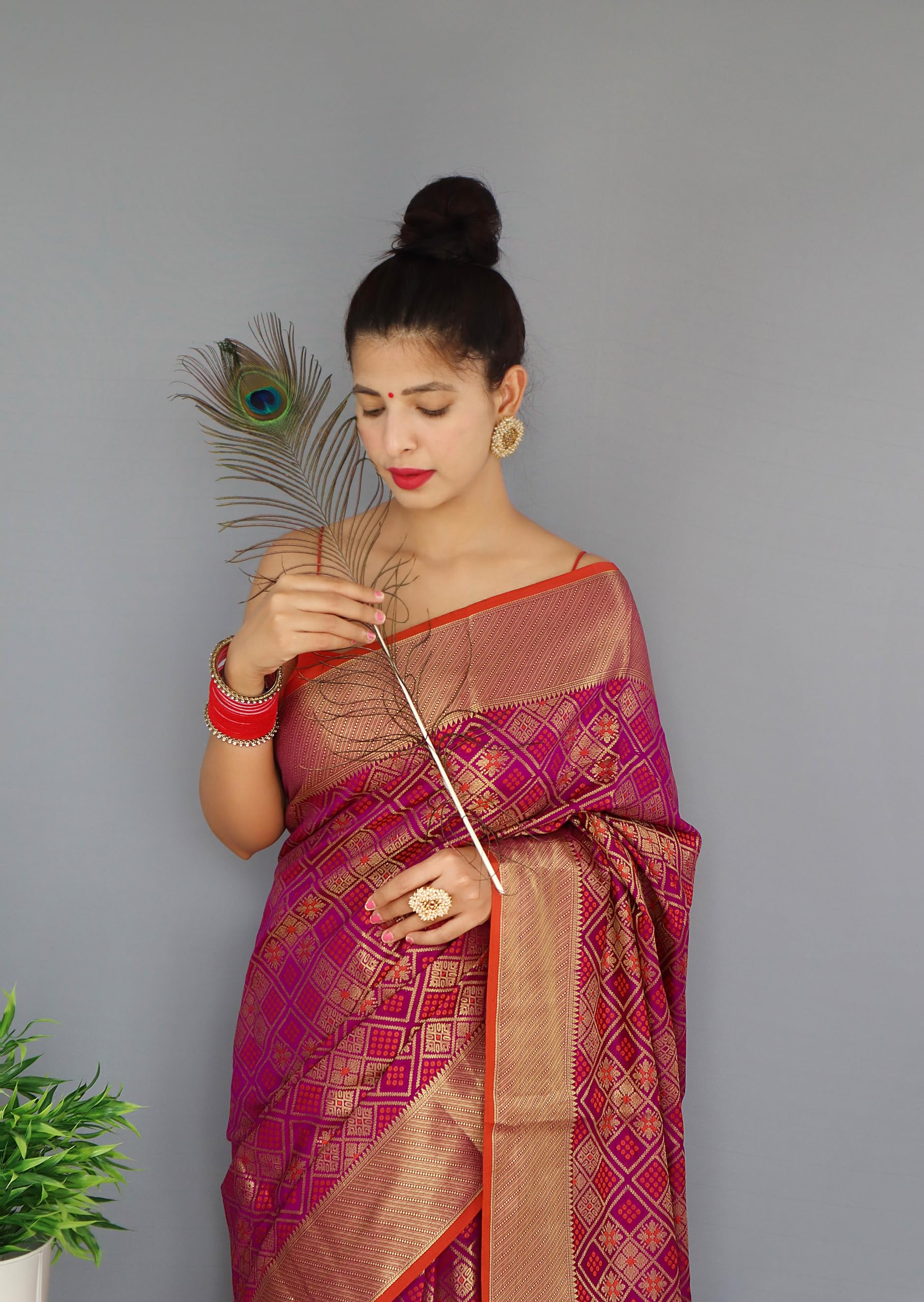 SGF11 Women's Kanjivaram patola Soft Lichi Silk Sarees With Unstitched Blouse Piece (Wine)