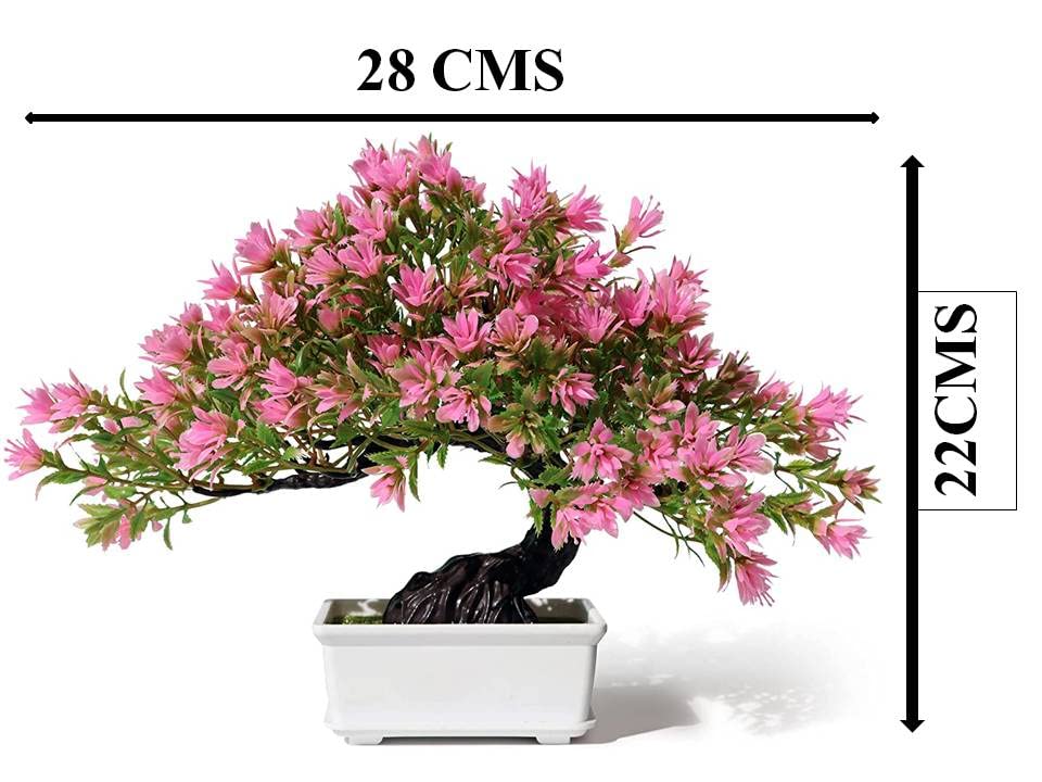 SHOI LITTLE Artificial Bonsai Tree Fake Plants for Home Office Room Wall Book Shelf Decor, Size Tall 8.5"(Pink)