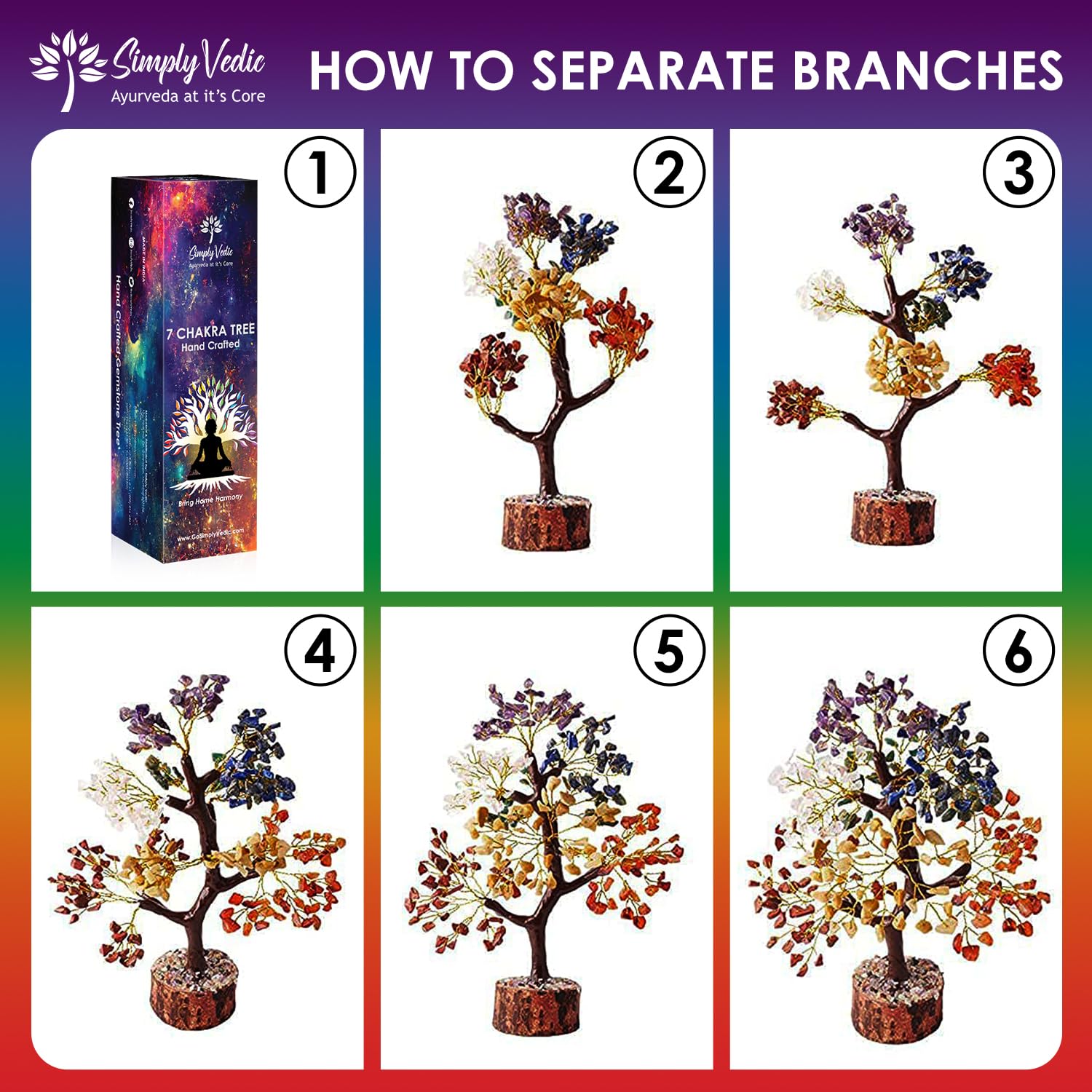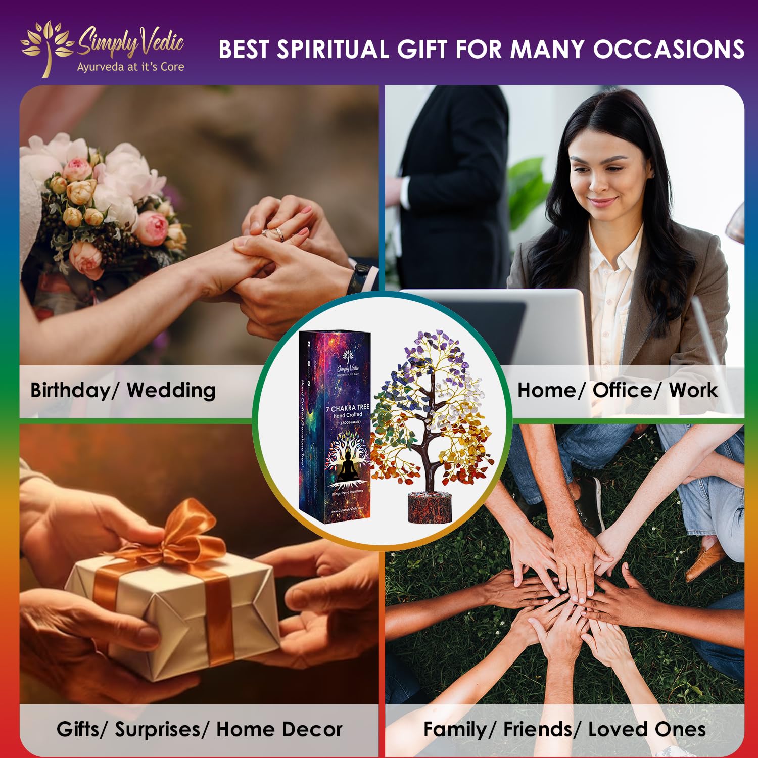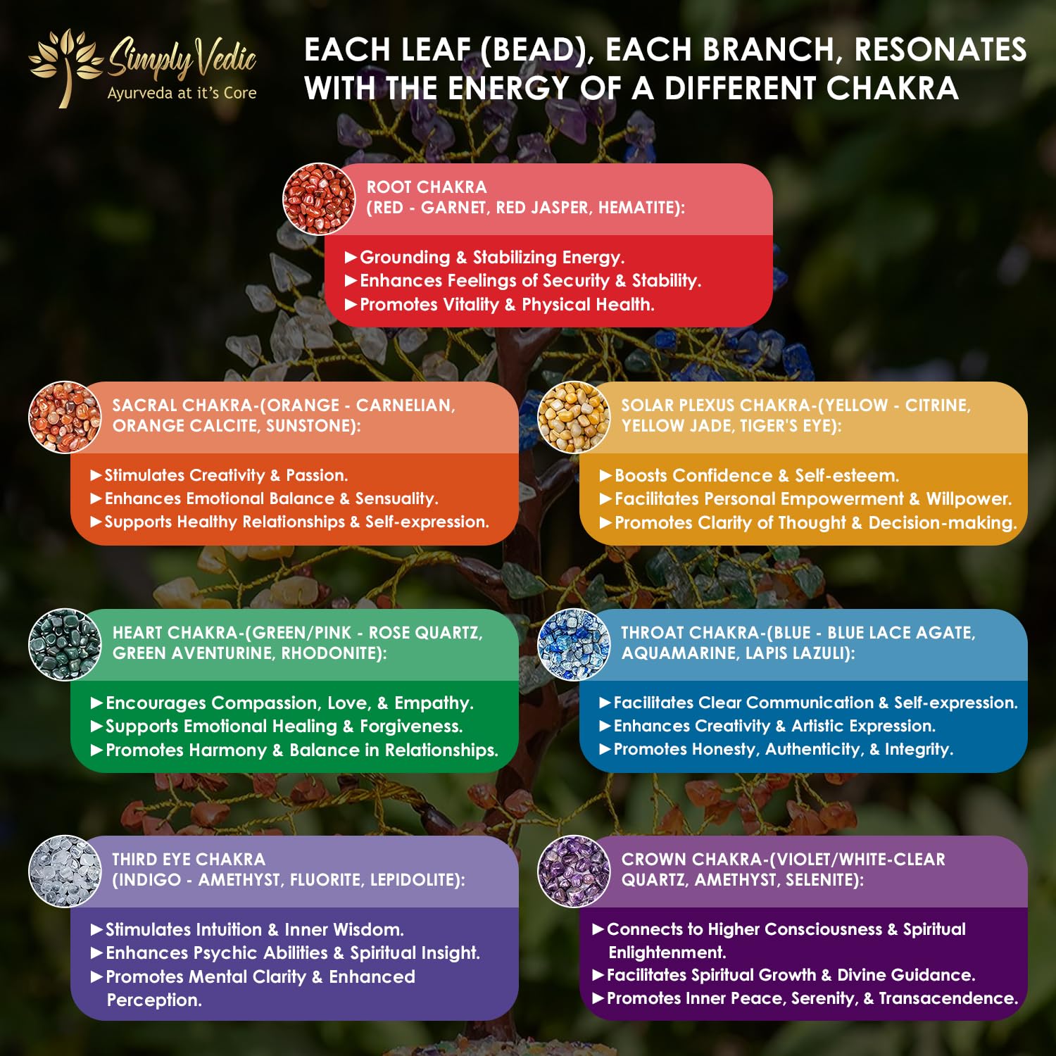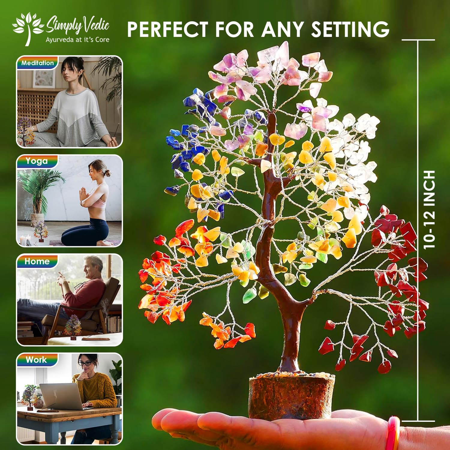 Simply Vedic 7 Chakra Crystal Tree (300 Beads) for Positive Energy, Good Luck, Chakra Activation| Healing Gemstones MoneyTree Feng Shui, Spiritual Gift, Home Decor| Handmade by Traditional Artist