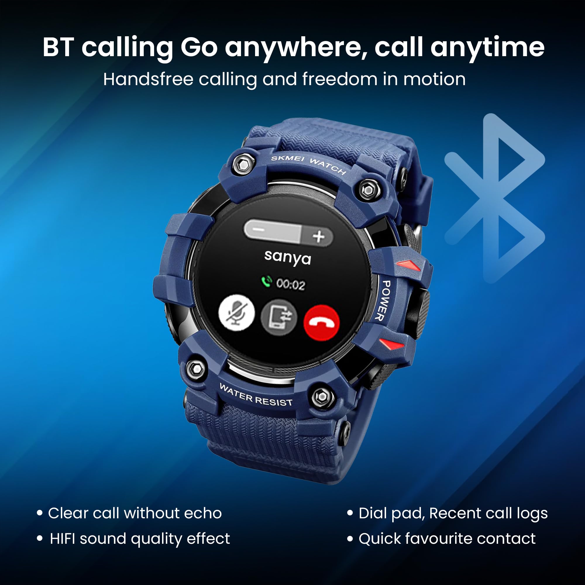 SKMEI New Launch Sport Smartwatch Full Touch Screen Dial, Zinc Alloy Frame ABS Case Men's Watch, TPU Rubber Blue Color Band, Bluetooth, Heart Rate, Blood Pressure & Oxygen Detection-S231 (Blue)