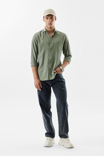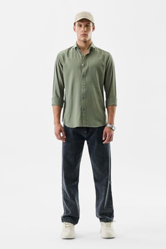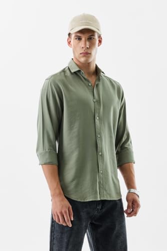 SNITCH Men Casual Shirt | Slim Fit Full Sleeve Classic Collar Solid Pattern | Premium Viscose Blend & Breathable Fabric for Everyday & Semi-Formal Wear | Sage Green