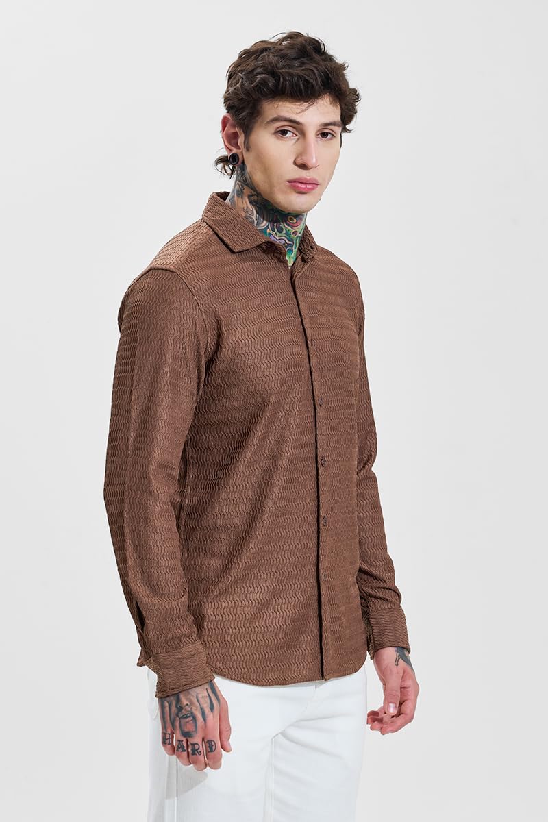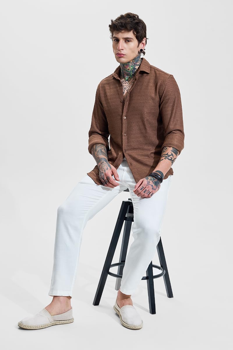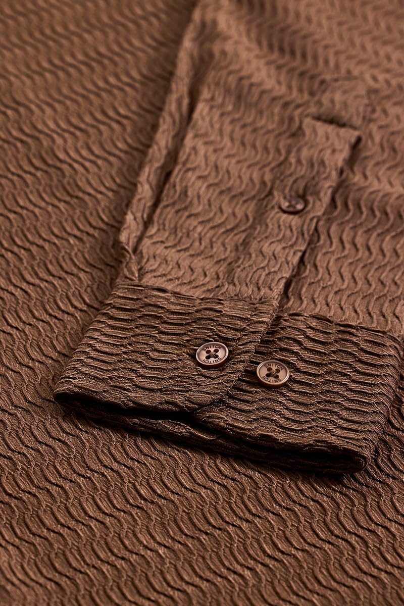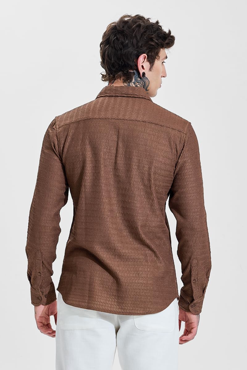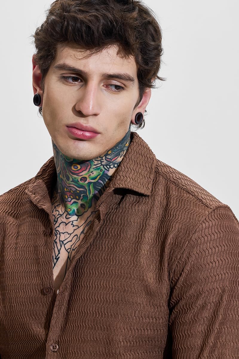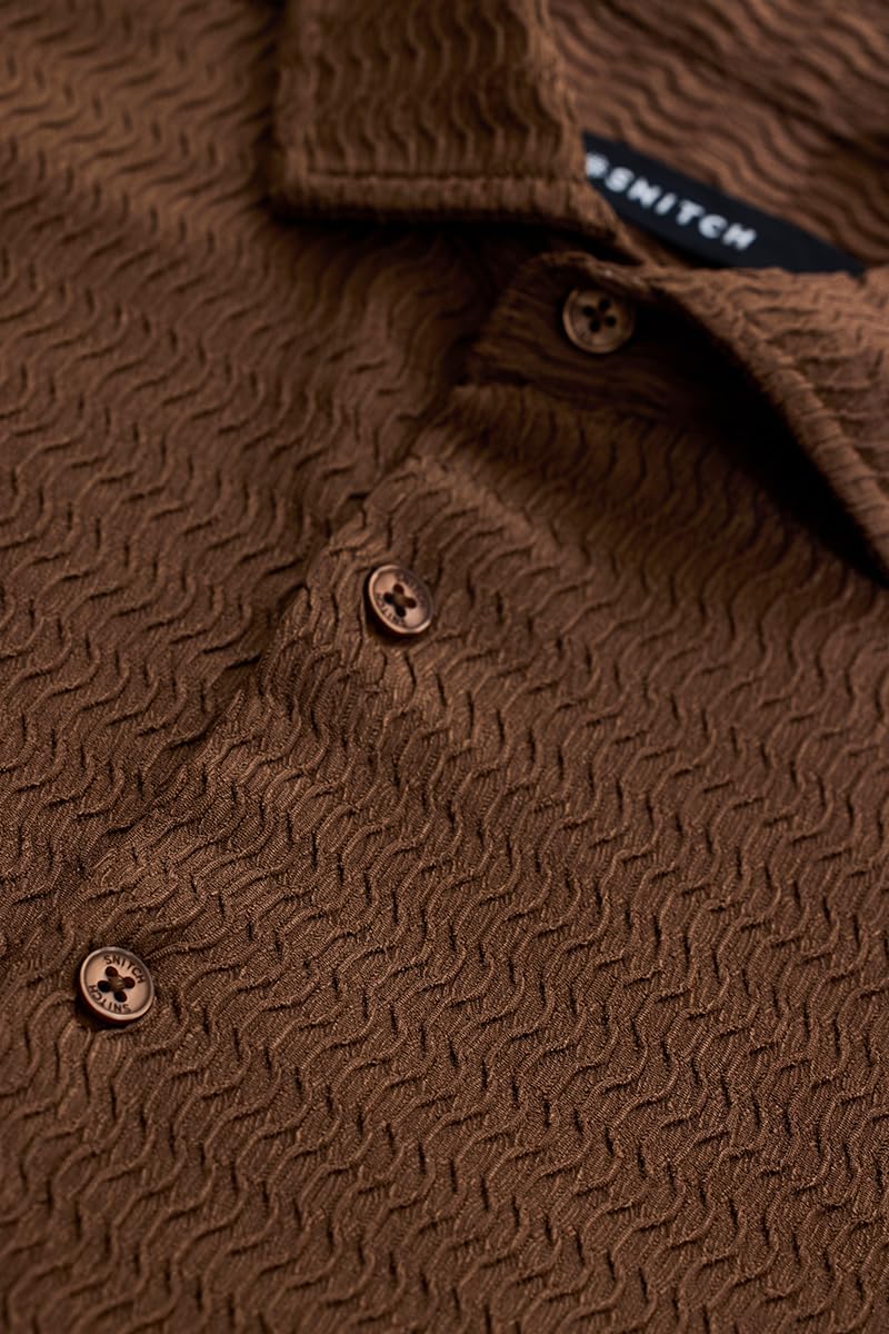 SNITCH Men Casual Shirt | Slim Fit Full Sleeve Classic Collar Textured Design | Premium Polyester Blend & Comfortable Fabric Semi-Formal Events ||Rich Earthy Brown