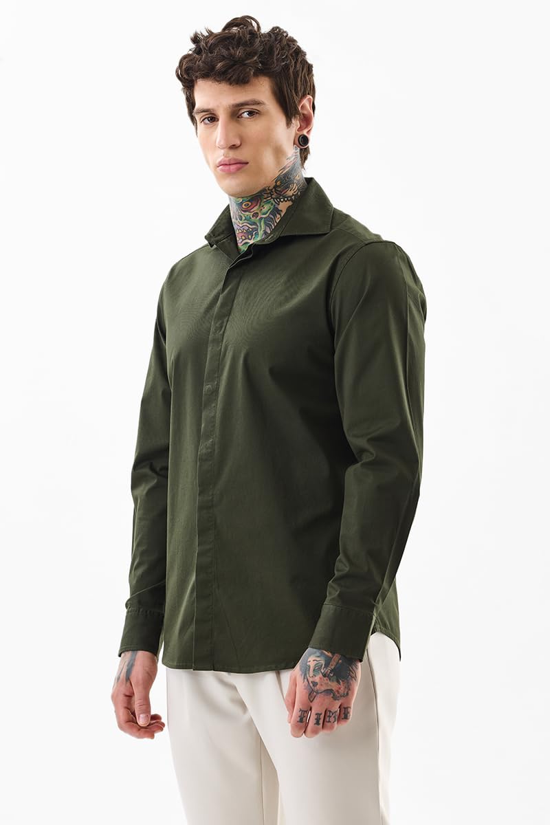 SNITCH Men's Casual Shirt | Slim Fit Full Sleeve Classic Collar Solid Pattern | Premium Cotton Blend & Breathable Fabric for Everyday & Semi-Formal Wear | Dark Green