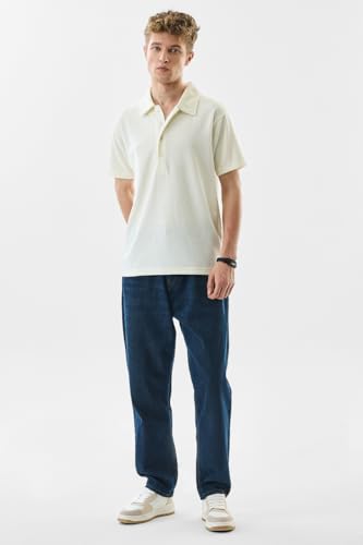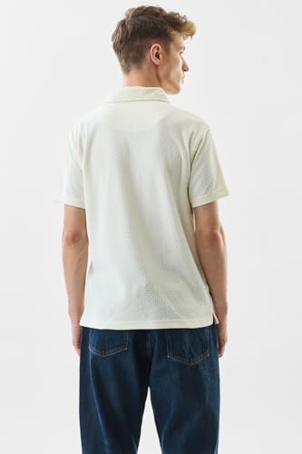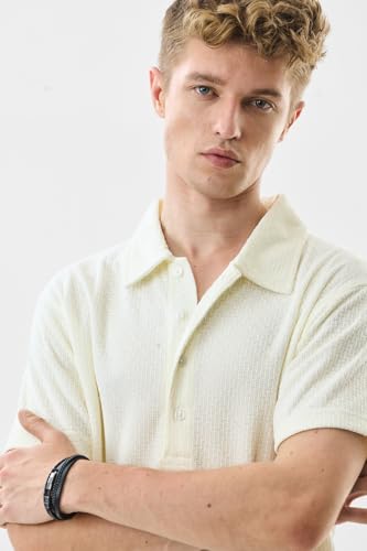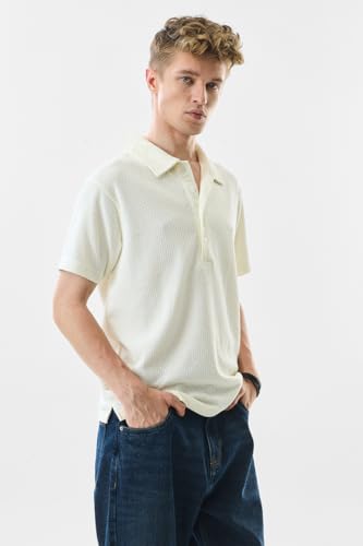 SNITCH Men's Polo Shirt | Textured Slim Fit Design | 100% Polyester Fabric with Breathable & Lightweight Features | Casual & Streetwear Usage |Light Yellow