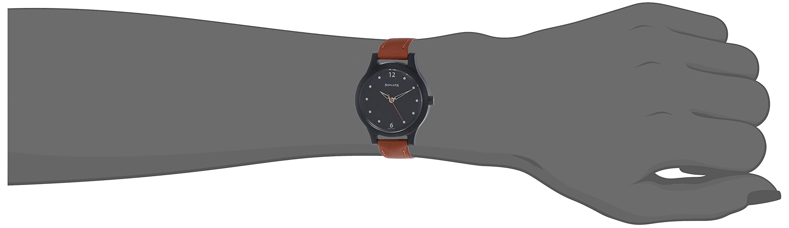 Brand: SonataColor: Tan BlackFeatures: Dial Color: Black, Case Shape: Round, Dial Glass Material: Acrylic Band Color: Brown, Band Material: Leather... Read more