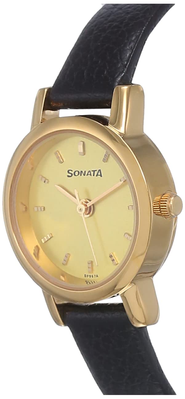 Sonata Quartz Analog Champagne Dial Leather Strap Watch for Women-NS8976YL01W/NT8976YL01W