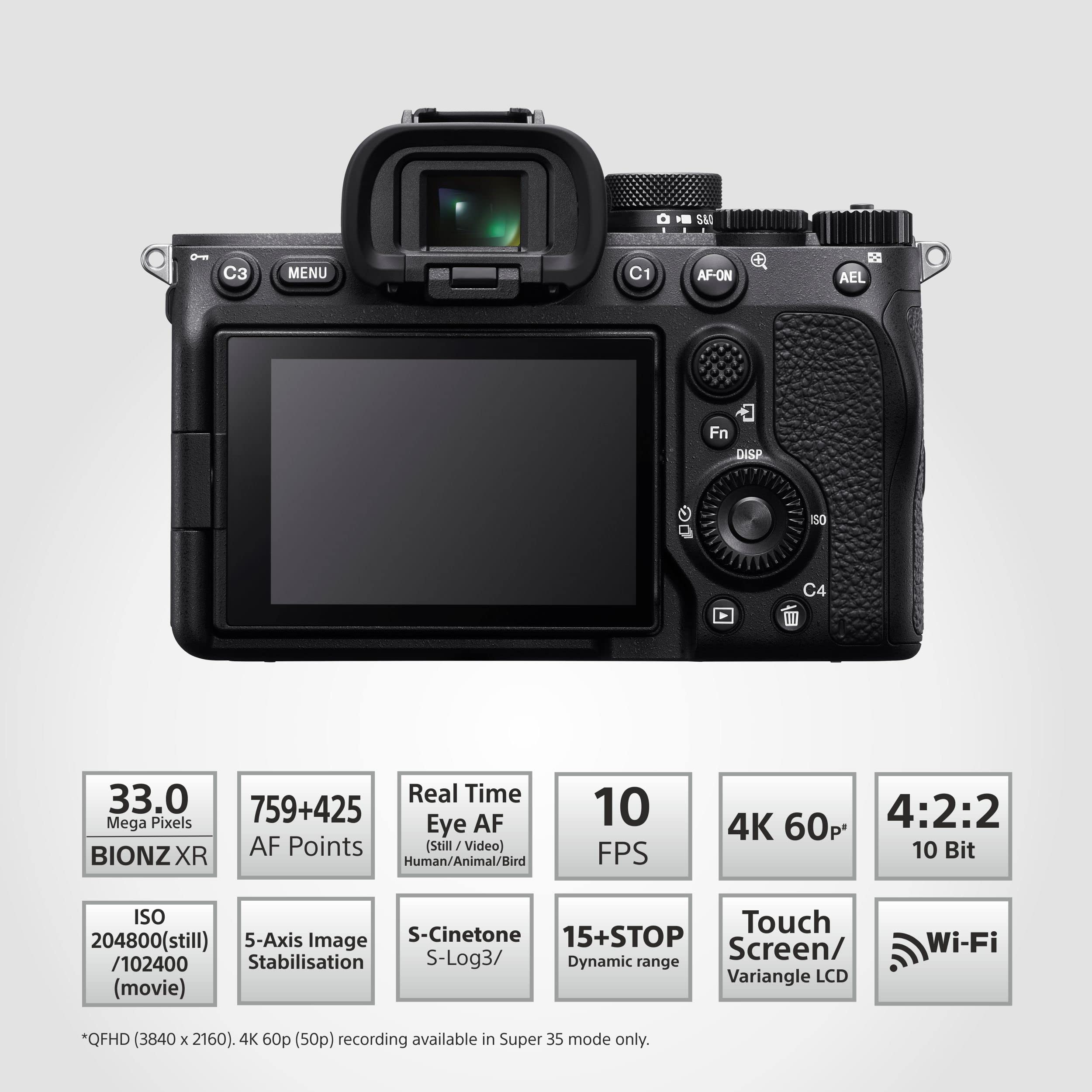 Brand: SonyColor: Black, ILCE-7M4KFeatures: 33MP Full-Frame Exmor R CMOS Sensor 4K 60p Video Recording in 10-Bit Enhanced 5.5-stop effective 5-axis... Read more