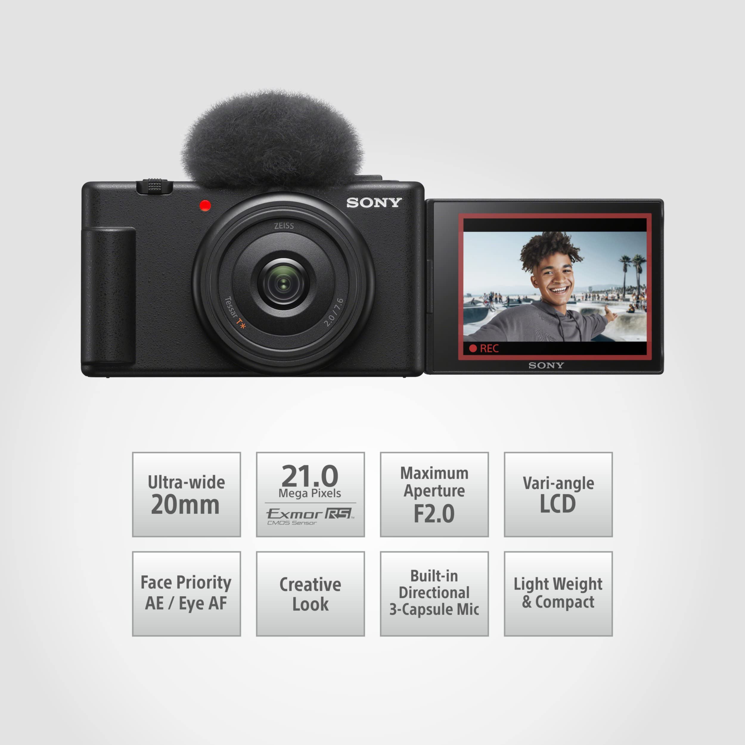 Sony Digital Camera ZV-1F for Content Creators with Ultra-Wide 20mm Prime Lens | Soft Skin Feature | Bokeh | Creative Look | Active Mode Stabilisation -Black