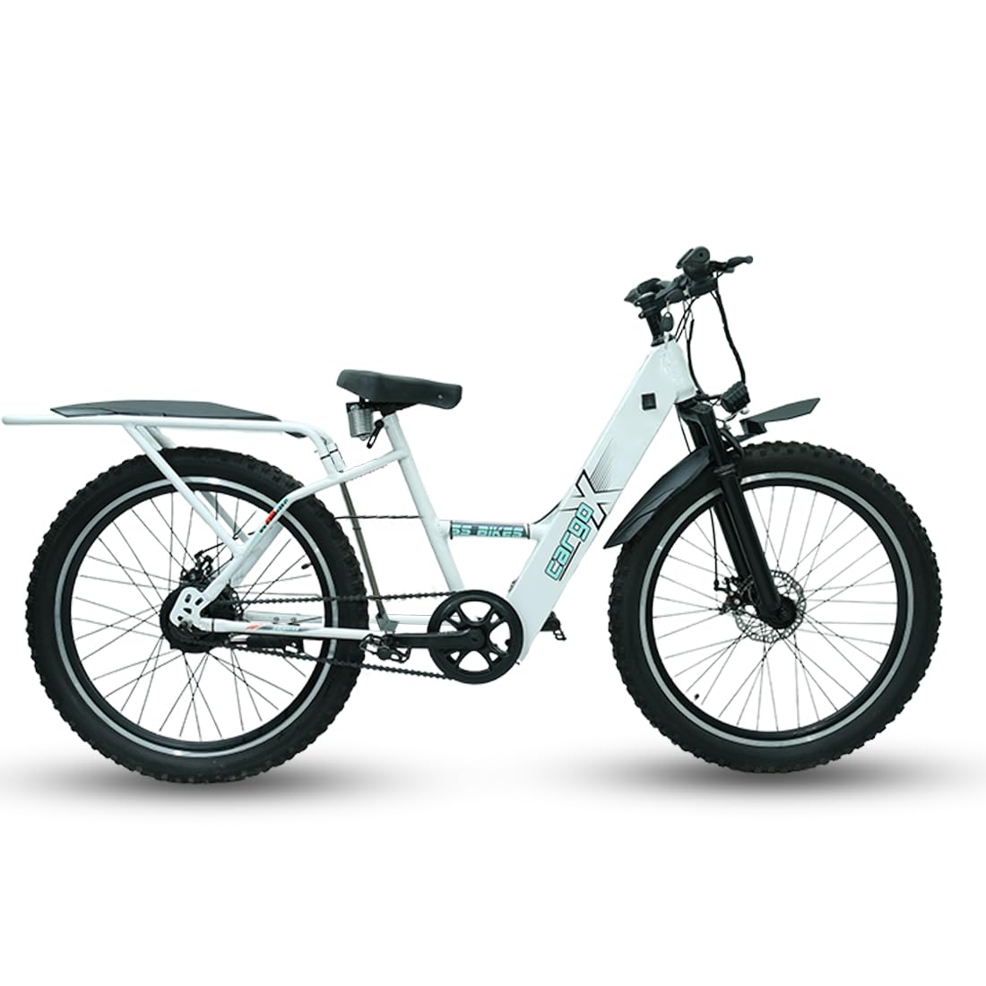 SS Bikes CargoX Heavy Duty Electric Cycle, 50 KM Range, 36V/10Ah Internal Battery, 350W BLDC Motor, Front Suspension Dual Disc Brakes, LED Display, Headlight, Top Speed 25KM, 2 Years Warranty on Motor