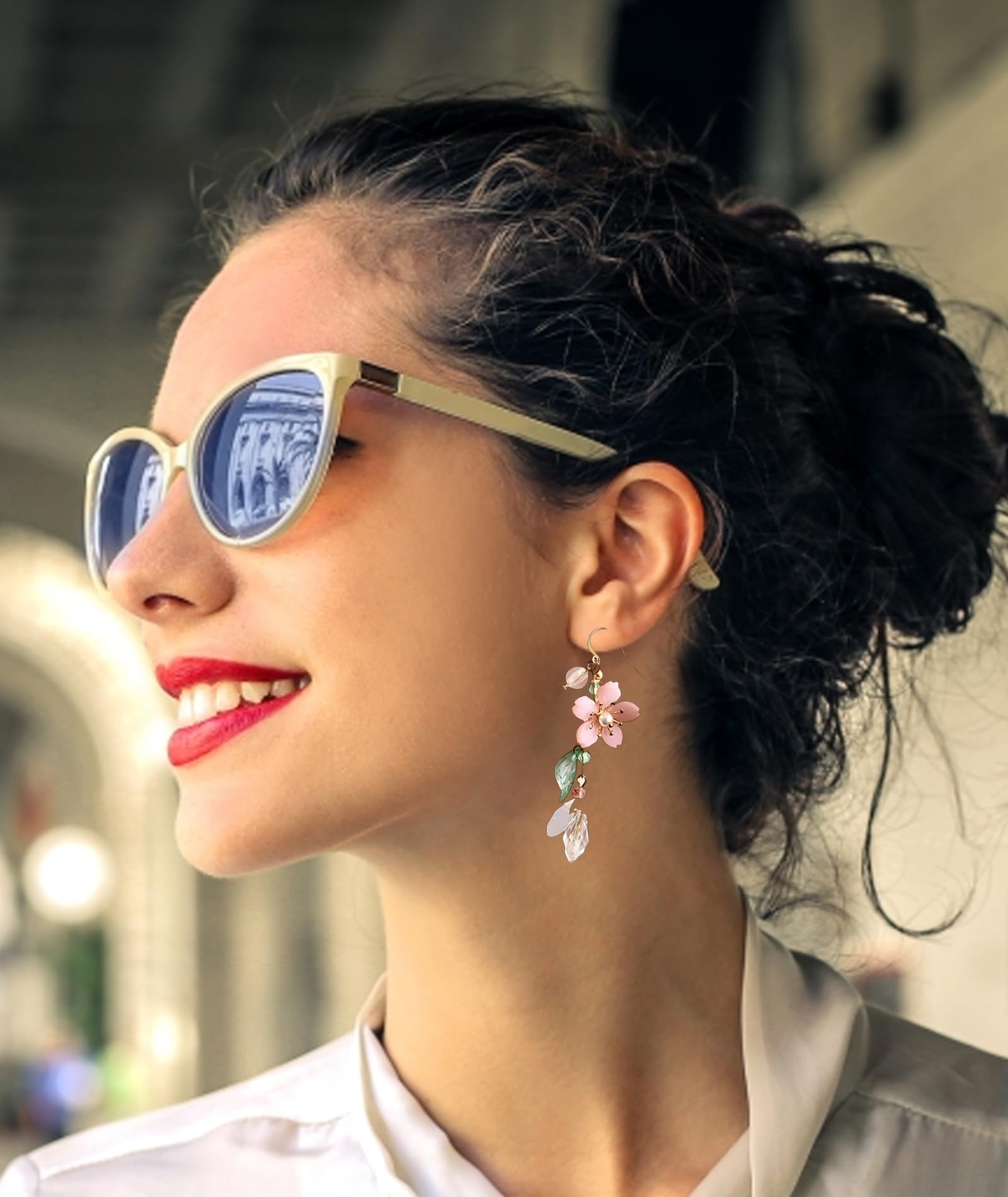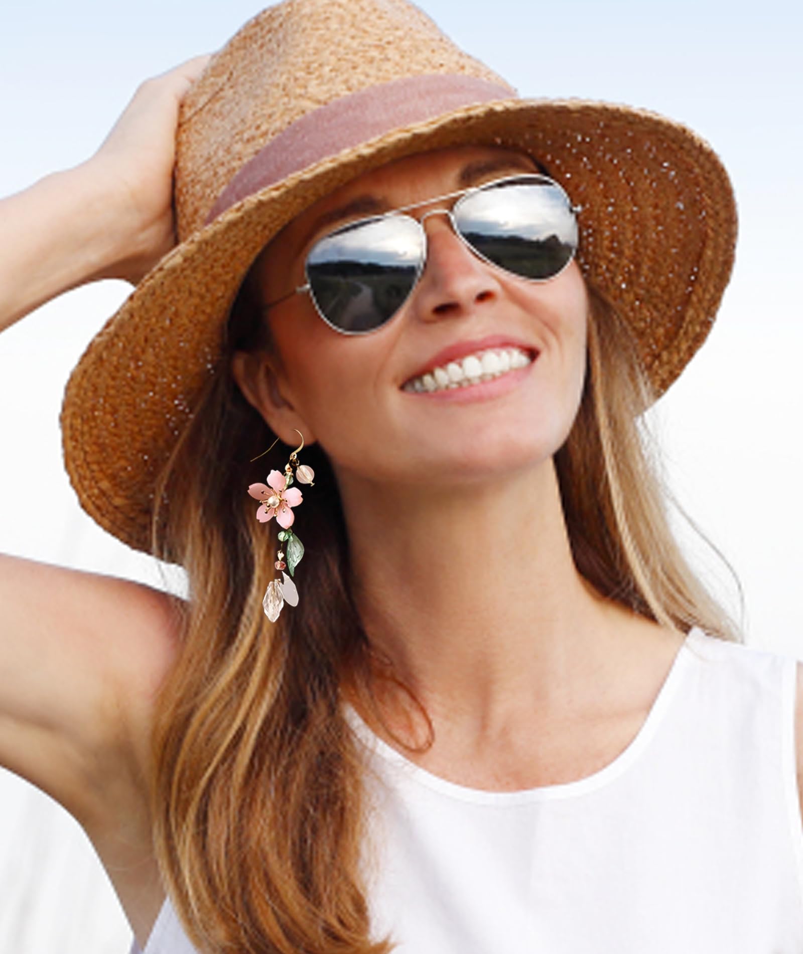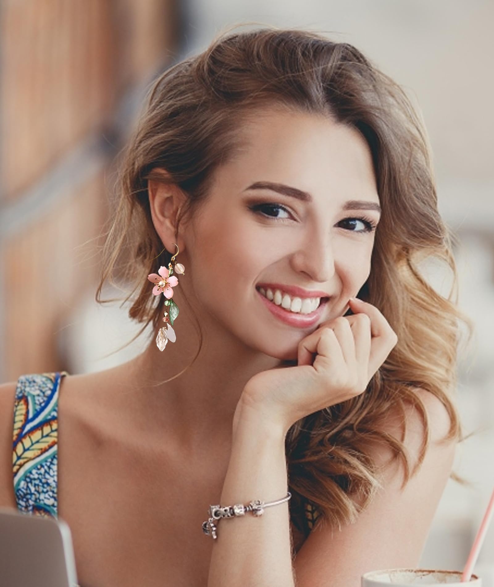 Statement Earrings for Women, Stylish Pink Flower Dangle Earrings, Korean Inspired Design, Elegant Western Style Earring for Girls, Perfect Special Occasions