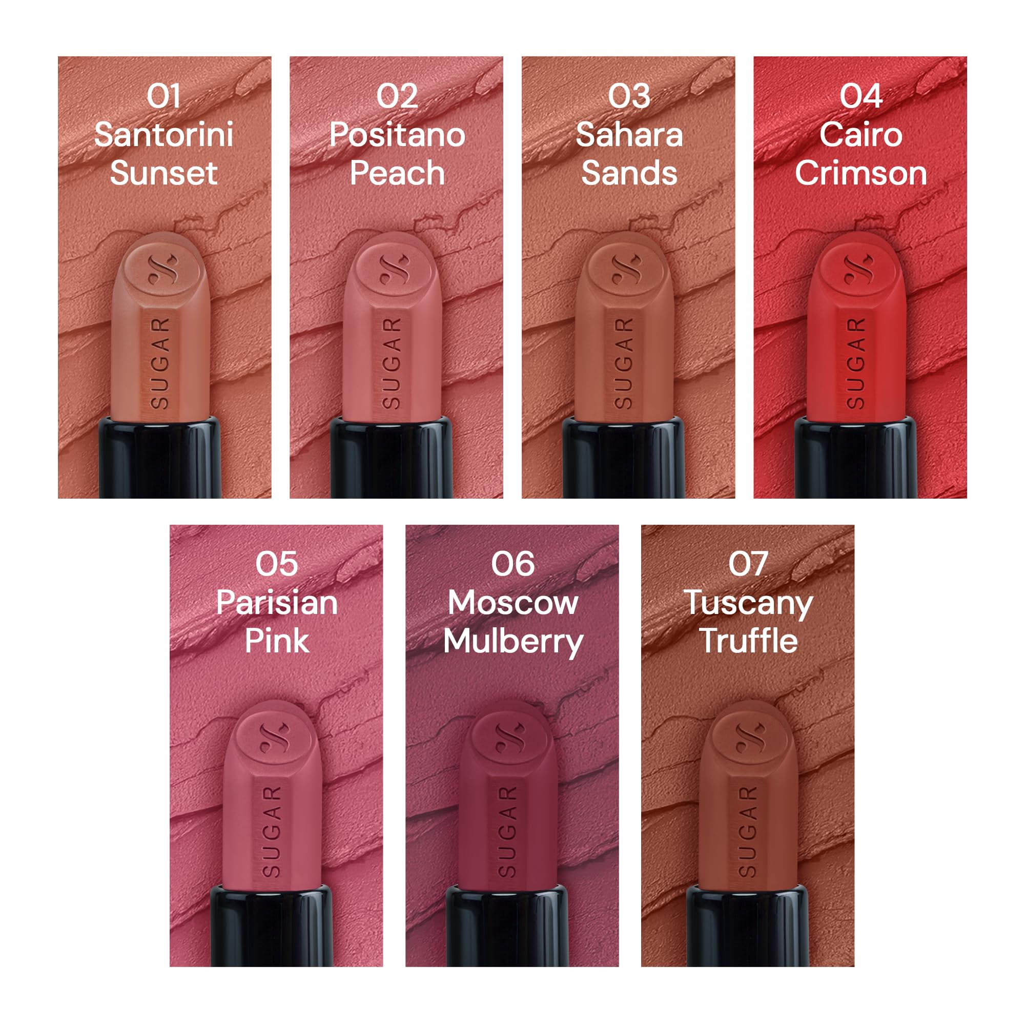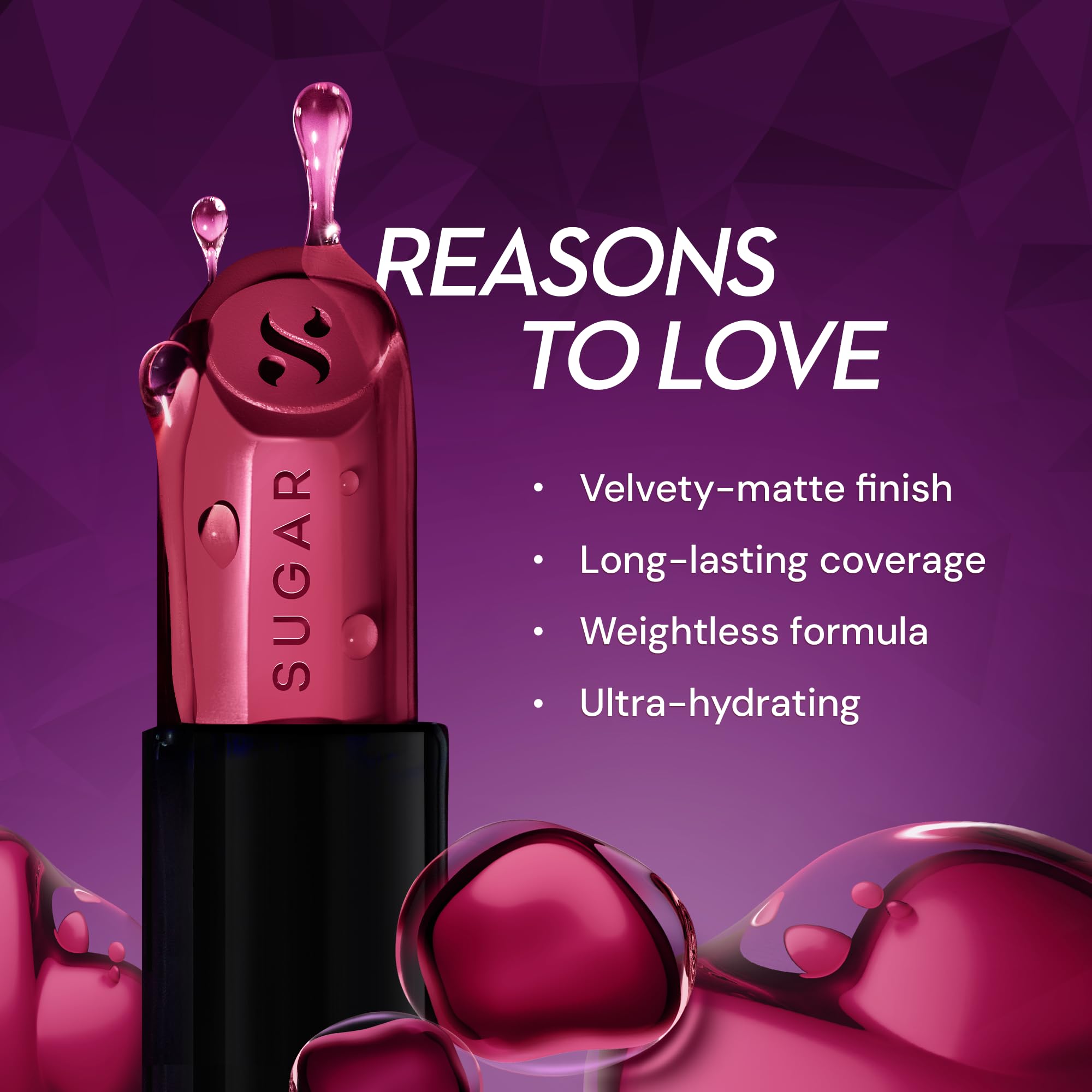SUGAR Cosmetics Glide Peptide Serum Lipstick with Hyaluronic Acid & Vitamin E | Velvet Matte Finish | Long Lasting & Pigmented | 1 Swipe Full Coverage | 4.2gm - 06 Moscow Mulberry