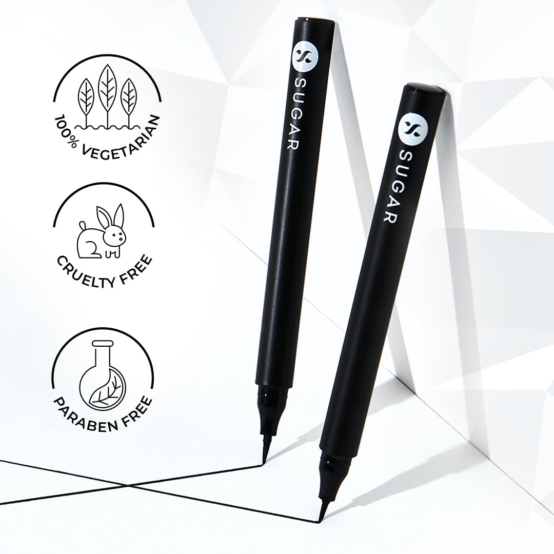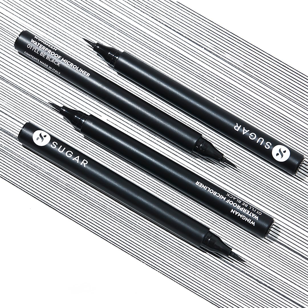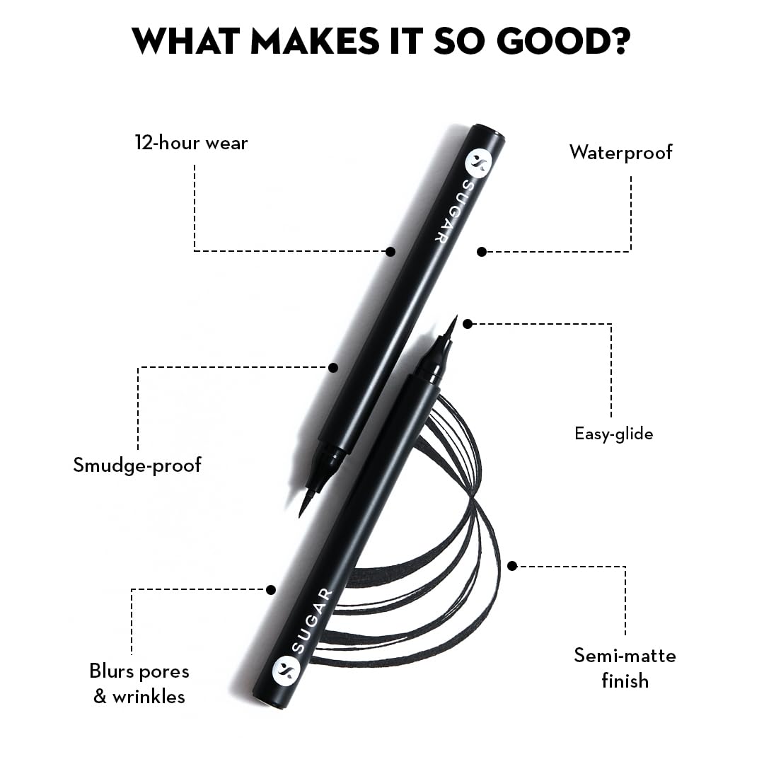 SUGAR Cosmetics Wingman Waterproof Matte Finish Microliner | Liquid Eyeliner | Flexi-Tip Applicator | Pen Eyeliner | Lasts Upto 12 Hrs | Smudgeproof & Transferproof | 1.6ml - 01 I'Ll Be Black