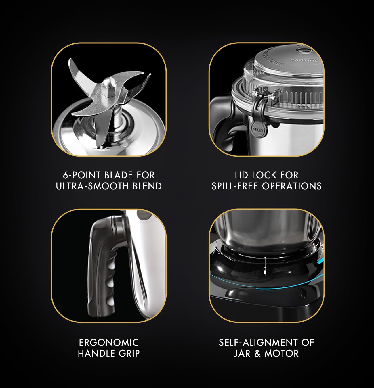 Sujata MG01 Mixer Grinder|1000 Watts Double Ball Bearing Motor|25000 RPM| Non-Stop 90 Mins Running|3 Jars including 1750ml Blender, 1000ml Grinder, 500ml Chutney Jar| (Black)