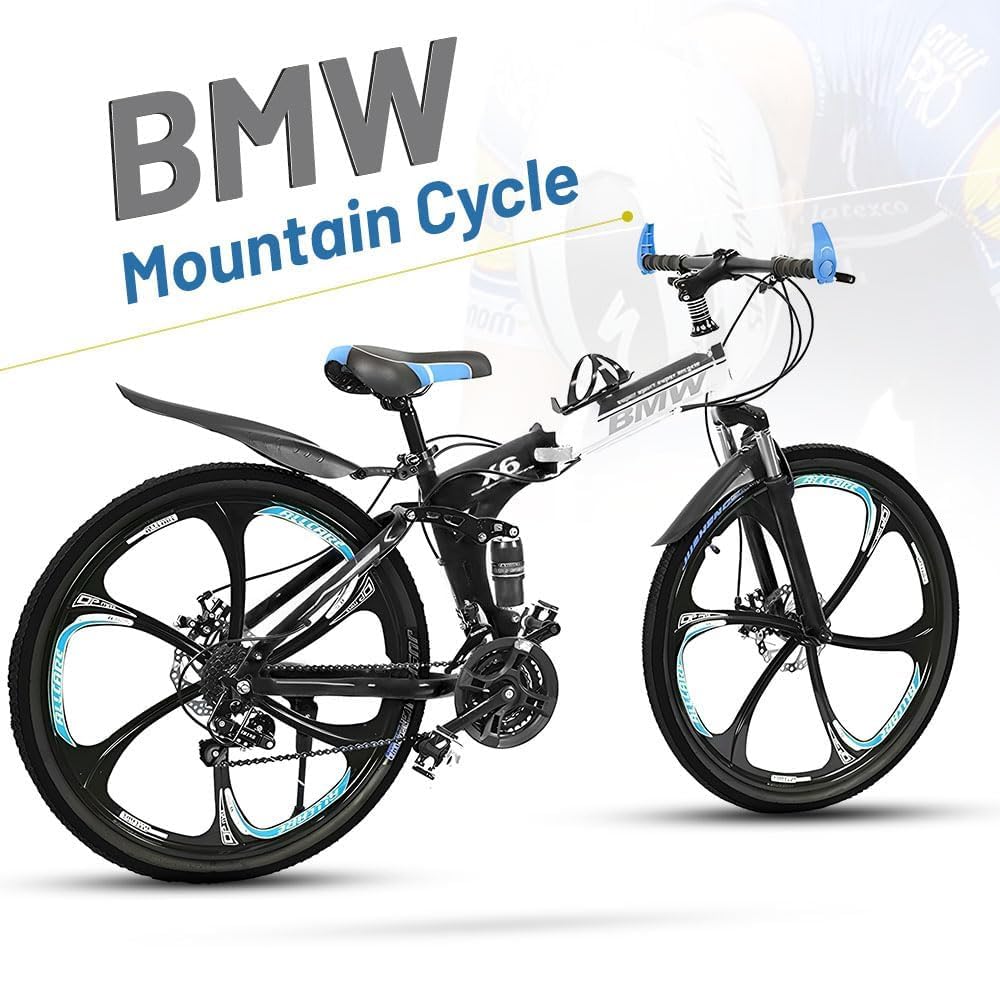 Sunspeed Men Skyride BMV X6 Foldable Cruiser Bicycle| Black Bike with 21-Speed Gears, Dual Disc Brakes, Hydraulic Suspension and Strong Carbon Steel Frame|Great for City Rides, 26 inch