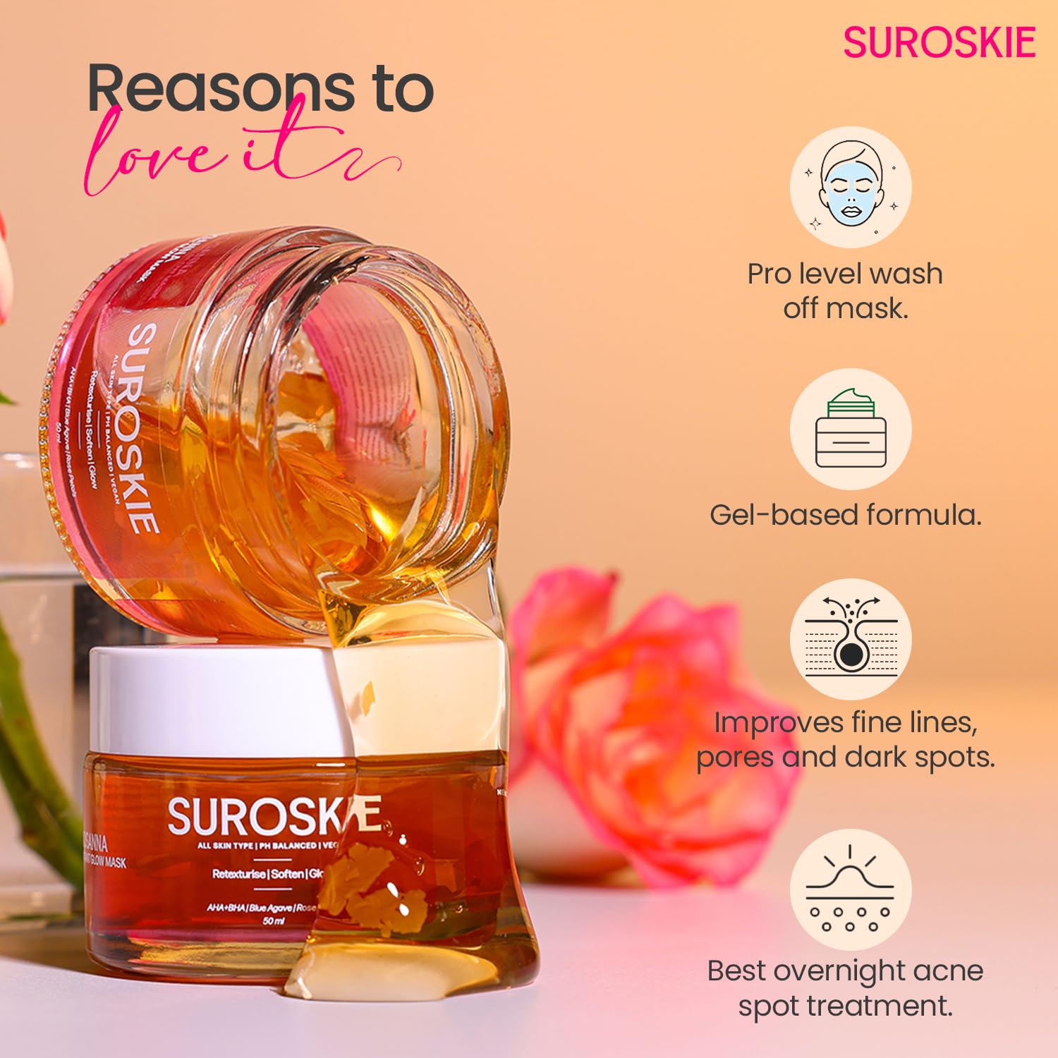 SUROSKIE Rosanna Rose Instant Glow Face Mask 50ml | With Rose & Aloe vera | For Cleans Pores & Dark Spot | Spa Glow at Home | Facial In a Jar | korean Face Mask For Glowing Skin |Men & Women