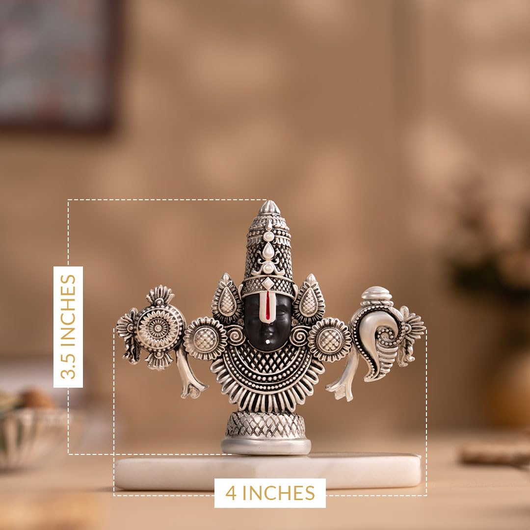 Svastika Lord Balaji Face Idol | 4 Inch Silver Plated Venkateswara Face Murti | Home Temple Decor | Spiritual Table Showpiece | Gift for Devotees and for Car Dashboard