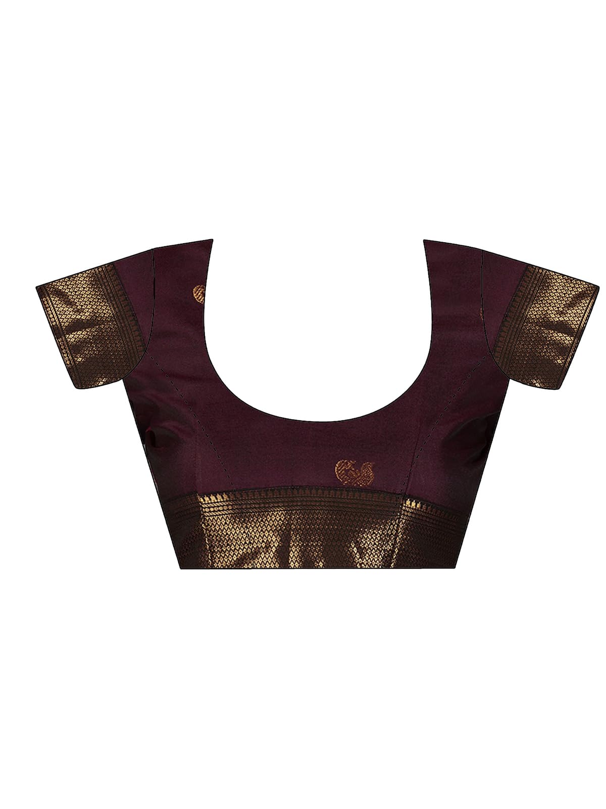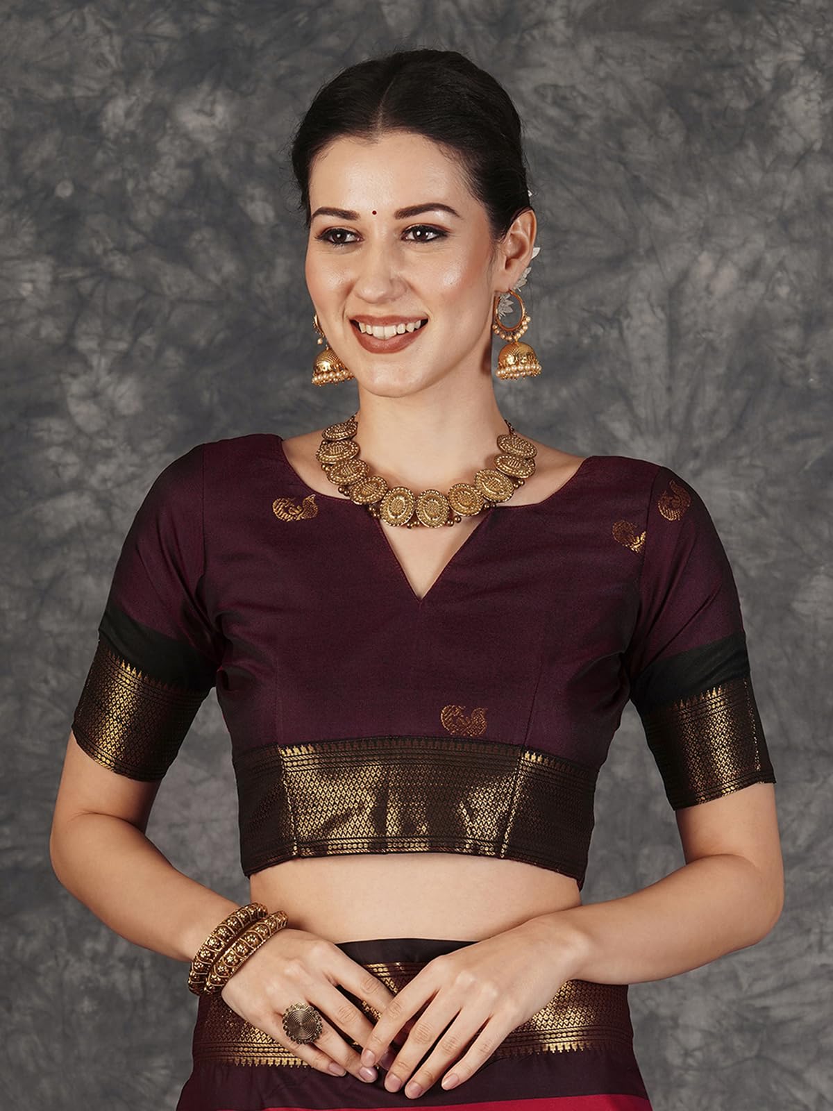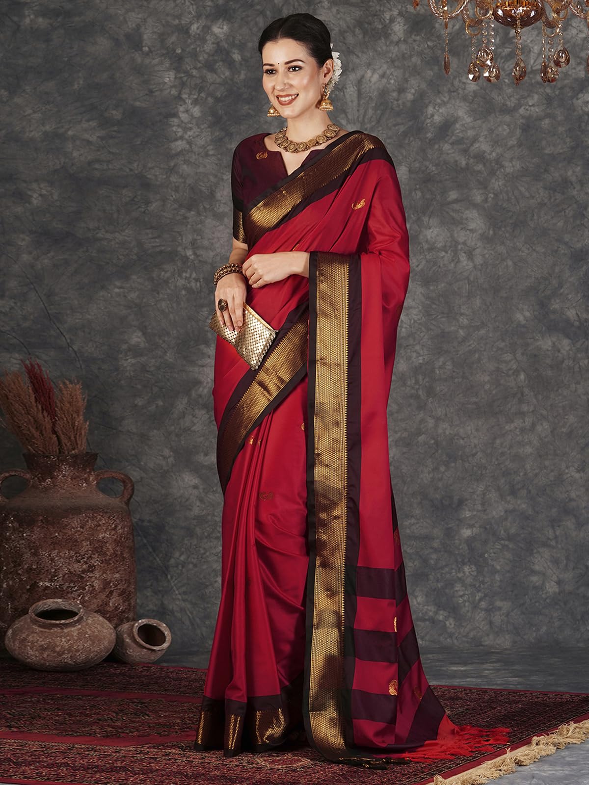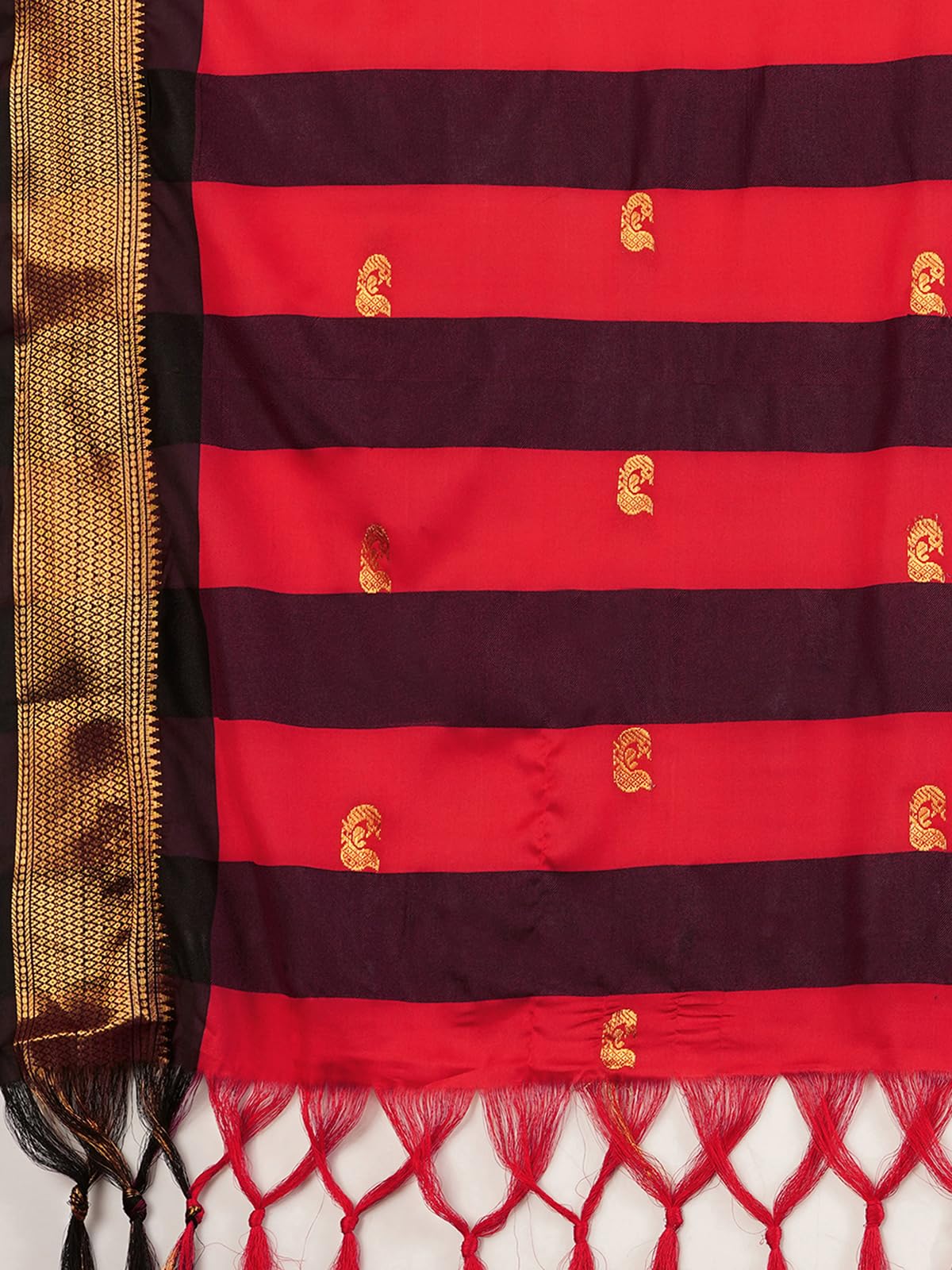 SWARON Women's Banarasi Jacquard Kanjivaram Silk Saree with Unstitched Blouse Piece (3743S111NW_Red & Dark Maroon)