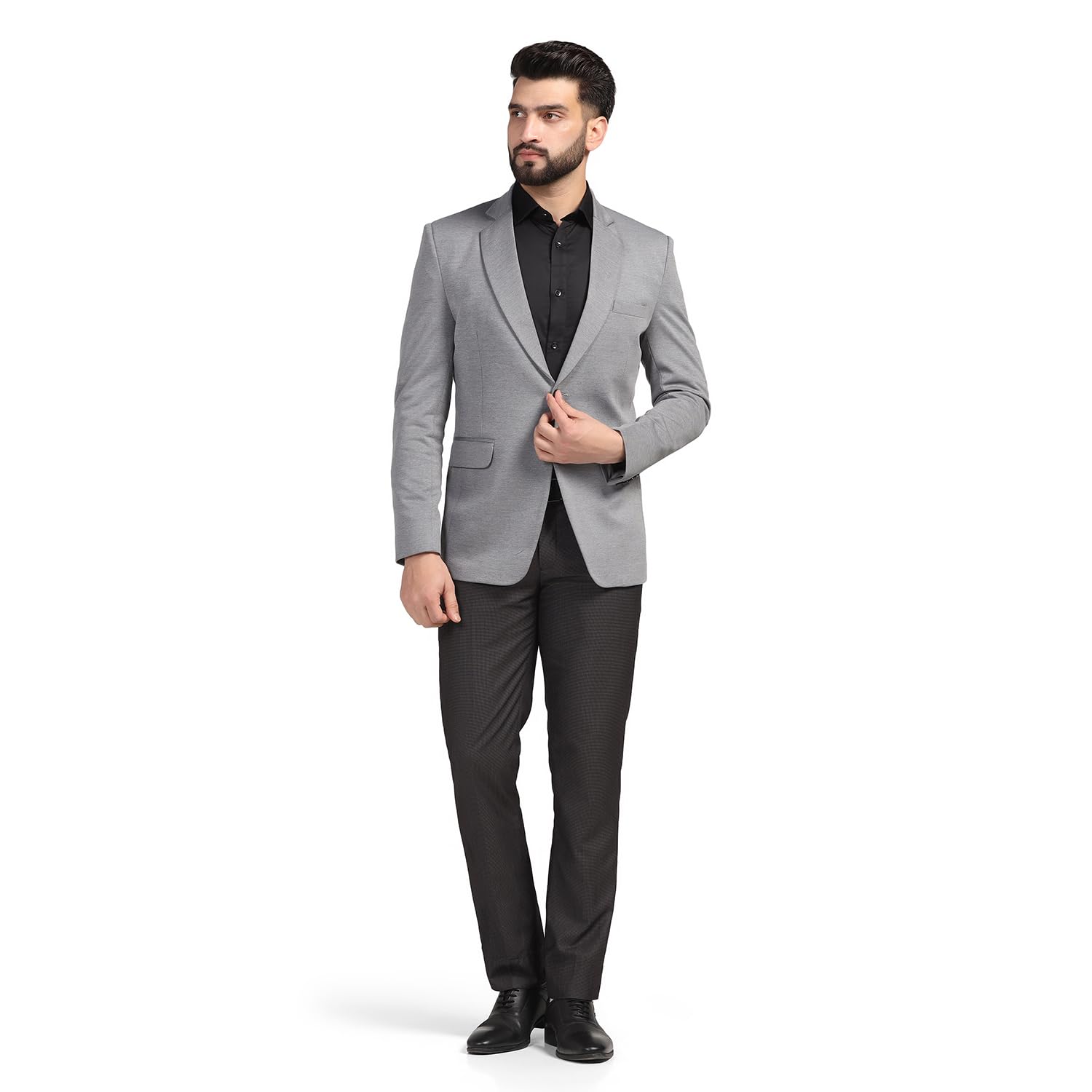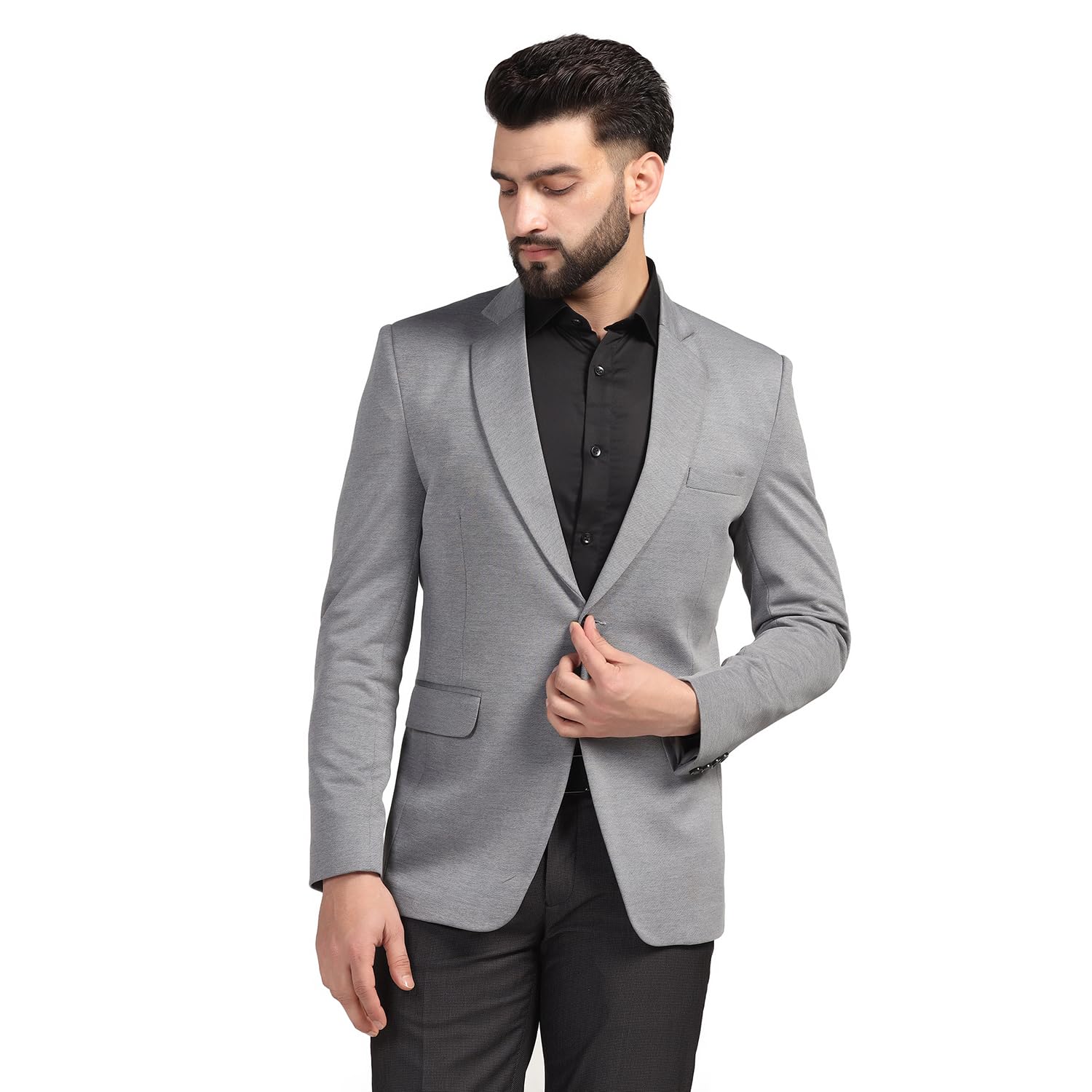 TAHVO Men Blazer Lycra Fabric Blend Slim Fit Single Breasted Blazer Color Grey Size 42