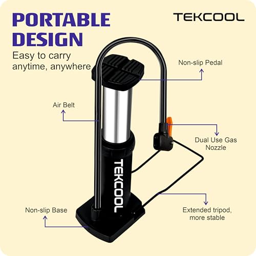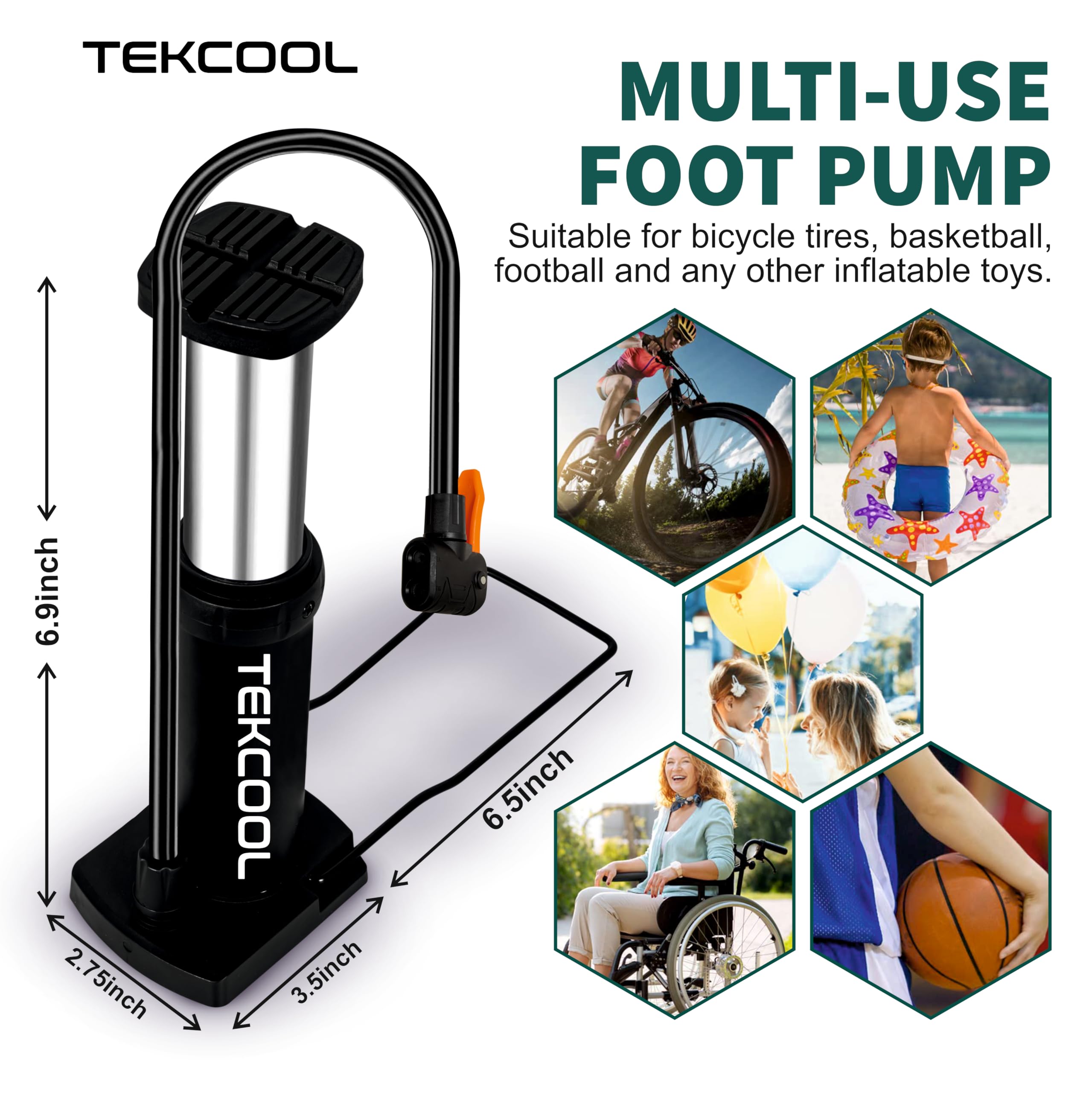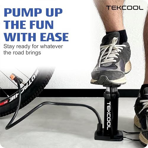TEKCOOL Bicycle Foot Pump, Manual Air Pump for Bike, Cycle, Football, Basketball, Air Mattress, Multicolour, 449g, Plastic, Includes Multiple Valve Adapters