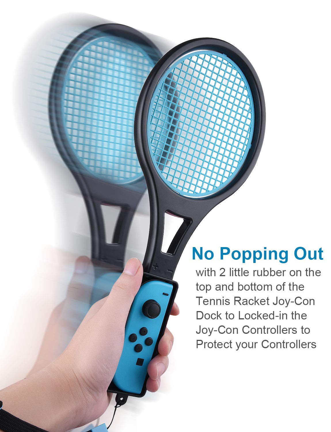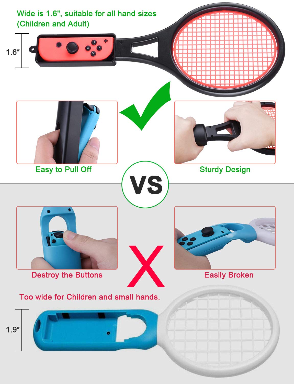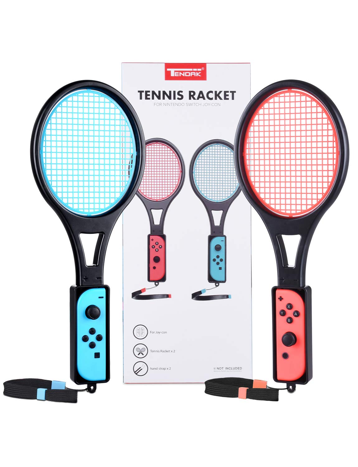 Tendak Tennis Racket for Nintendo Switch Joy-Con, Tendak Game Accessories for Mario Tennis Aces Game with 12 in 1 Game Card Case (2 Pack, Black)