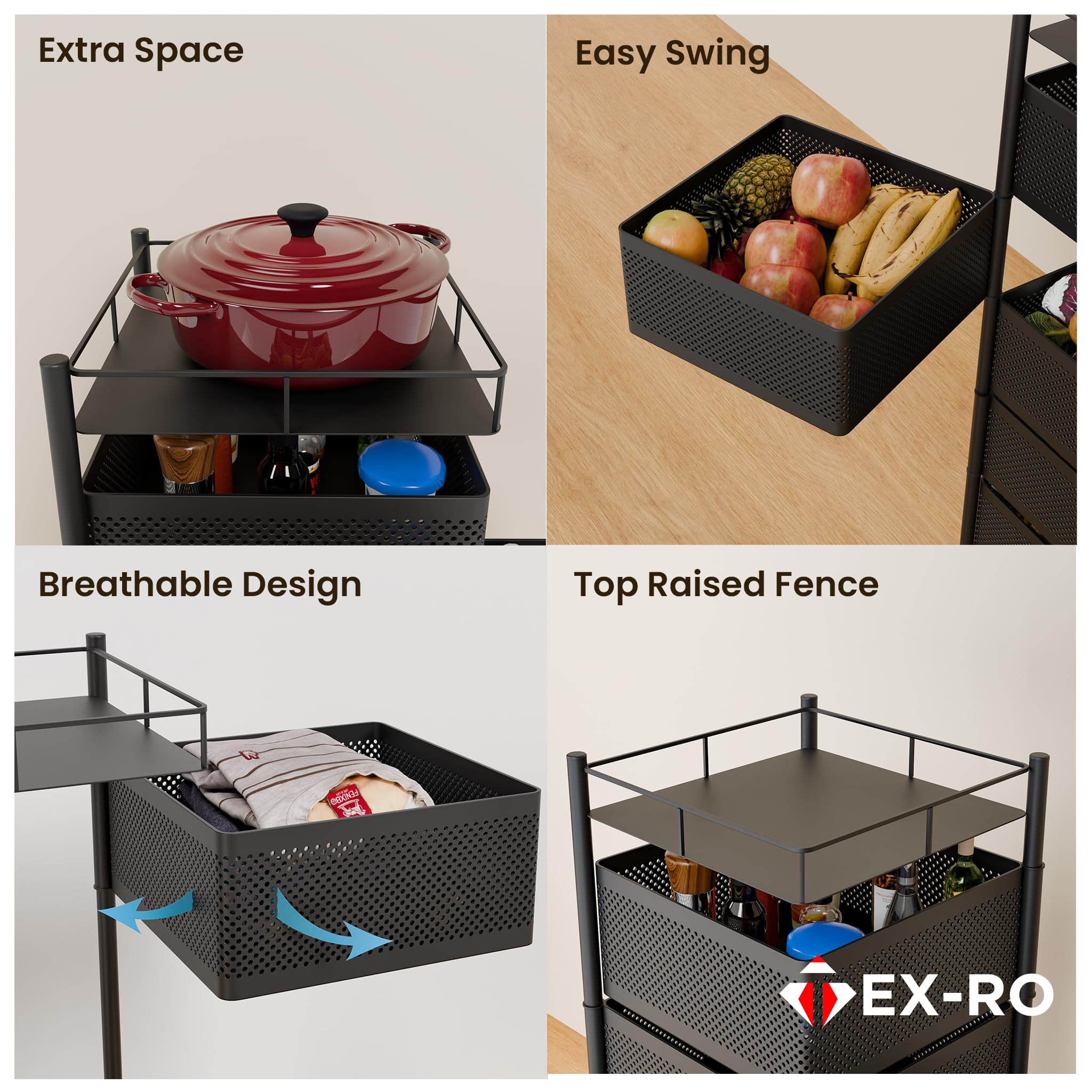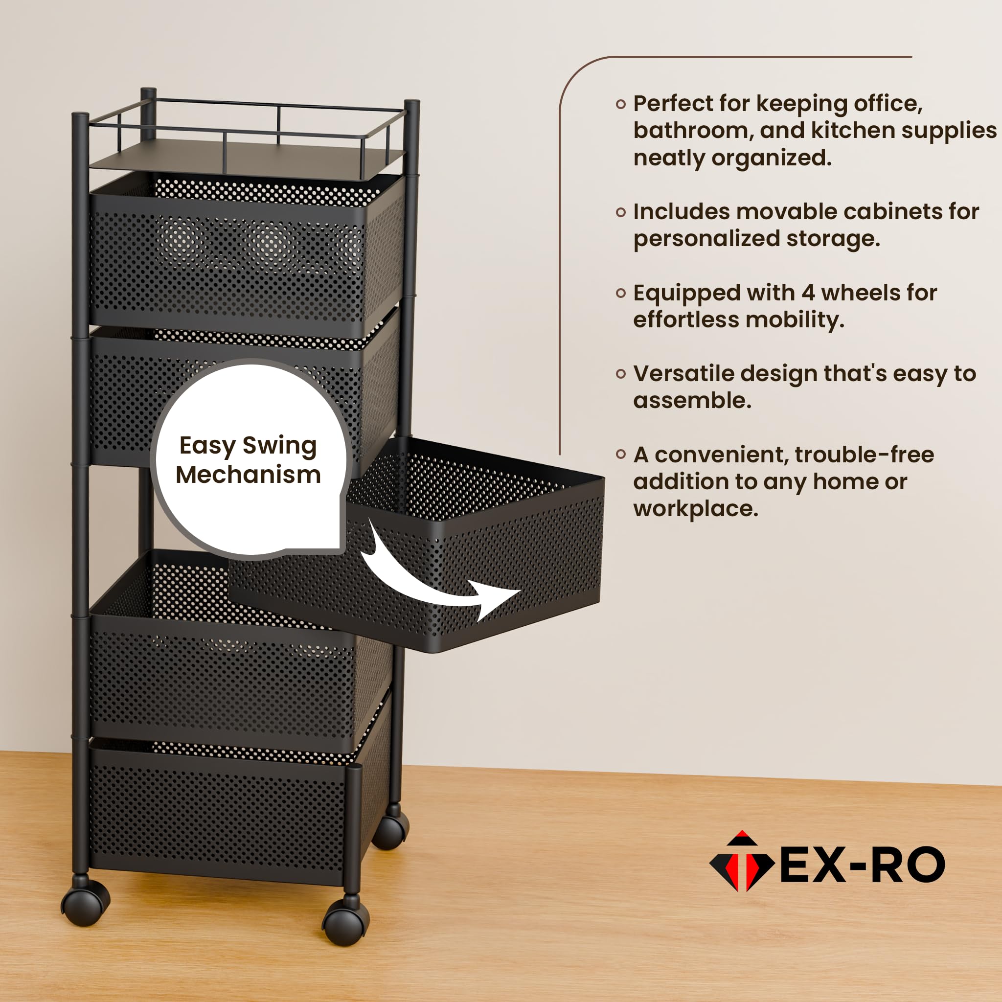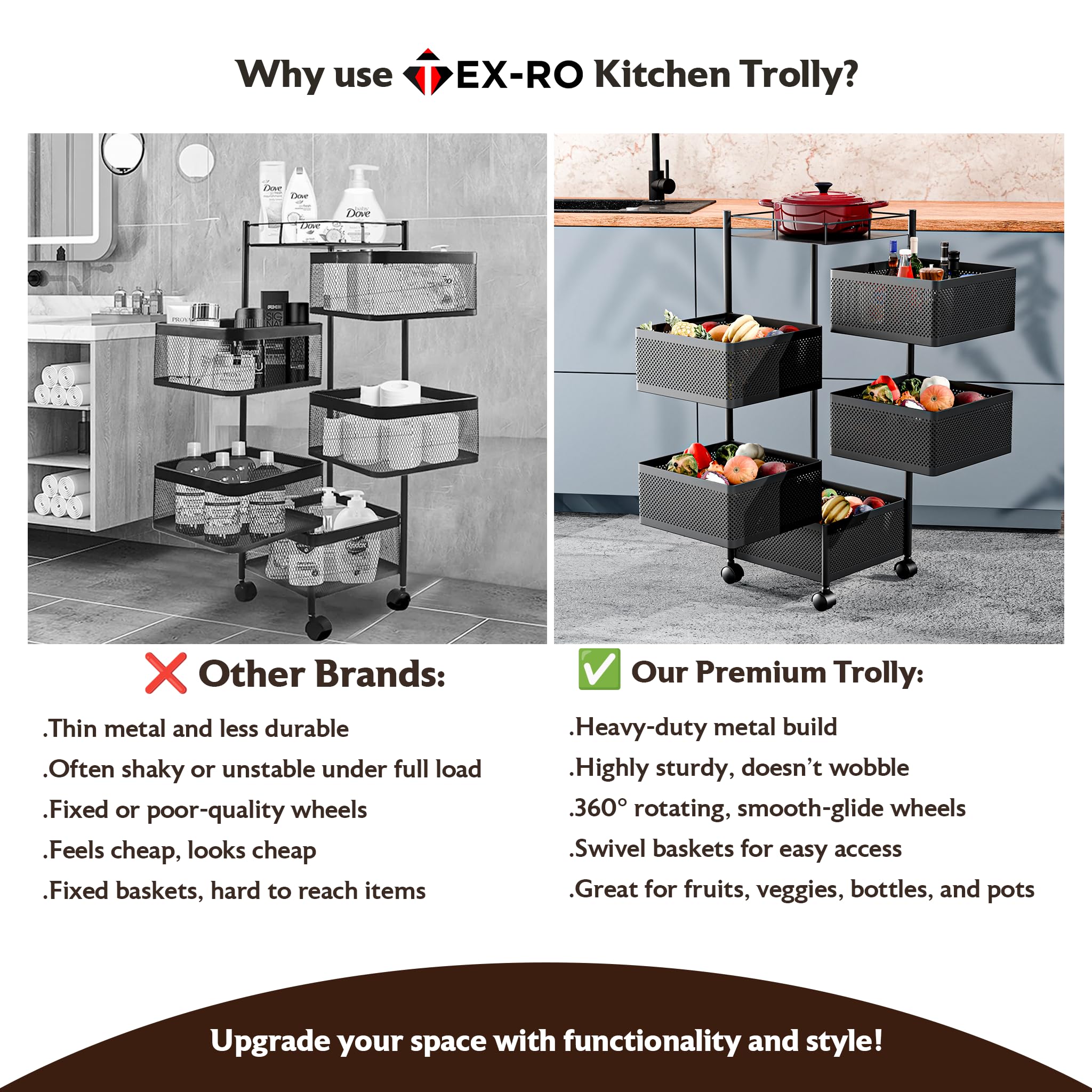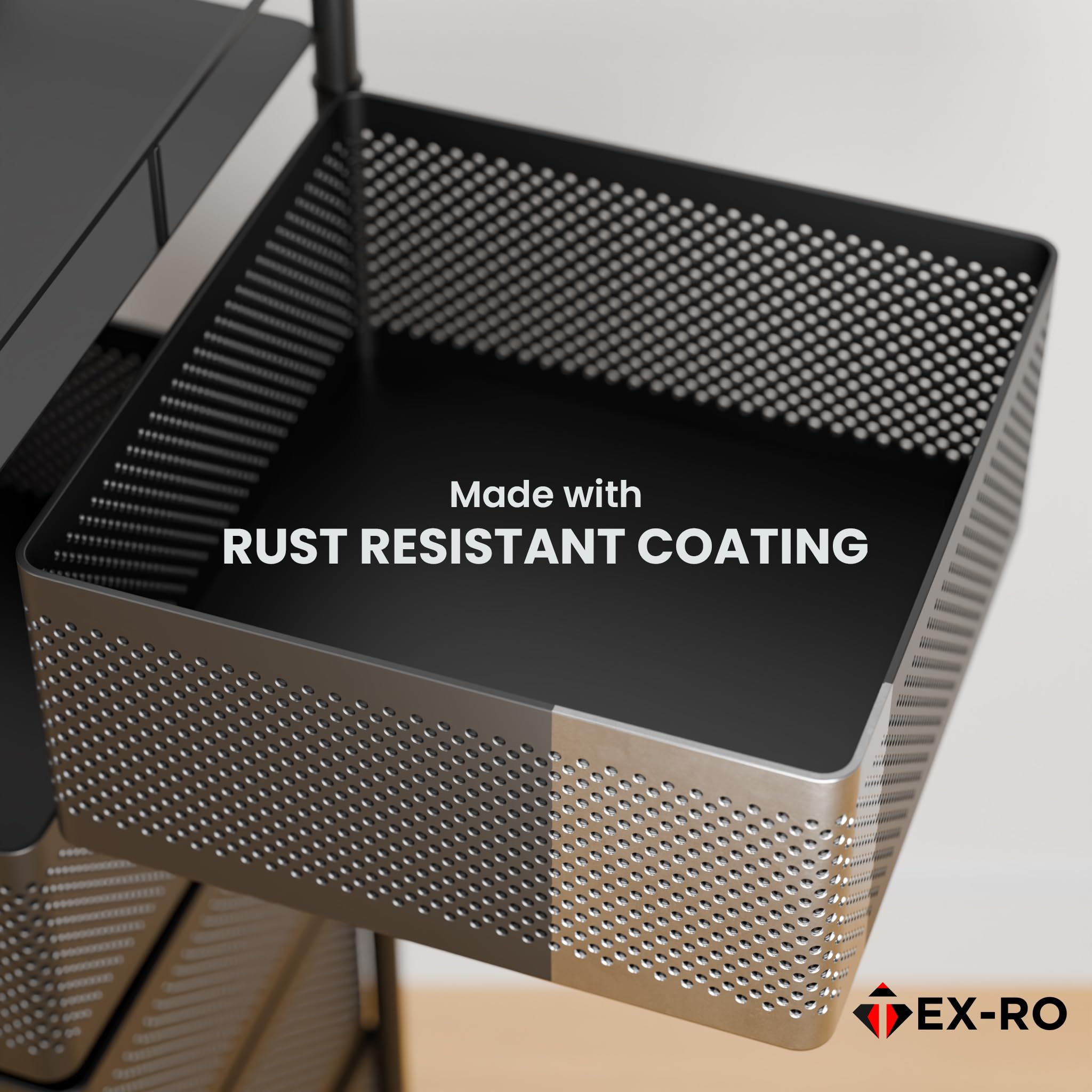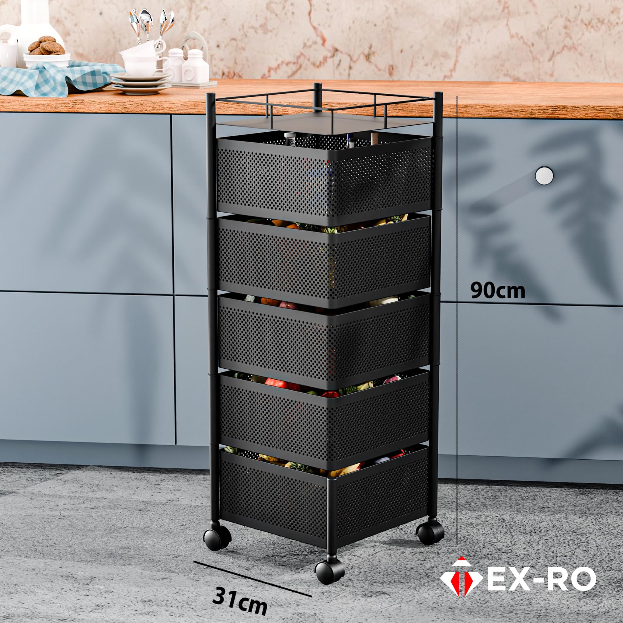 TEX-RO Kitchen Trolley with Wheels, Kitchen Organizer Items and Storage Solutions for Square Kitchen Organizer and Kitchen Accessories Items (Black,Layer 5) Metal