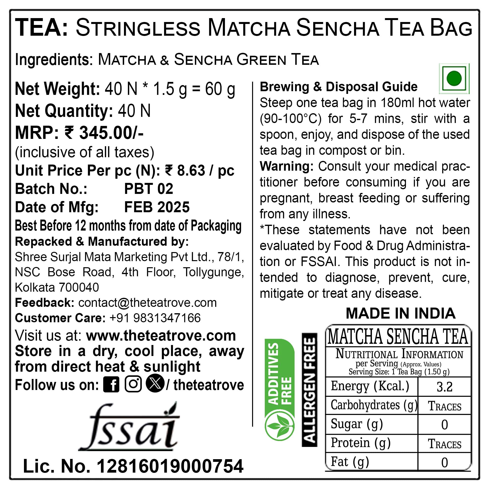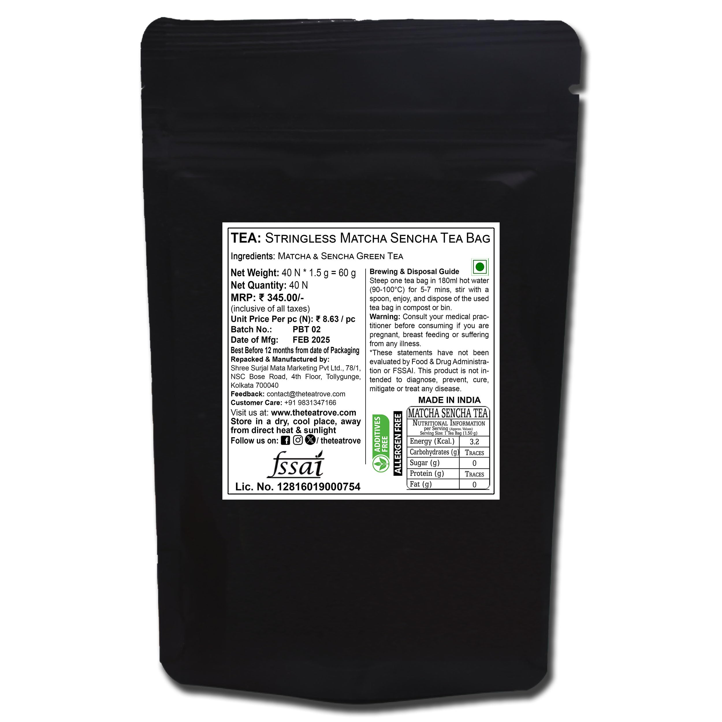 The Tea Trove Japanese Matcha Green Tea Bags-40 Eco-Friendly Matcha Tea + Sencha Green Tea Bag In Resealable Pouch,0.06 Kg