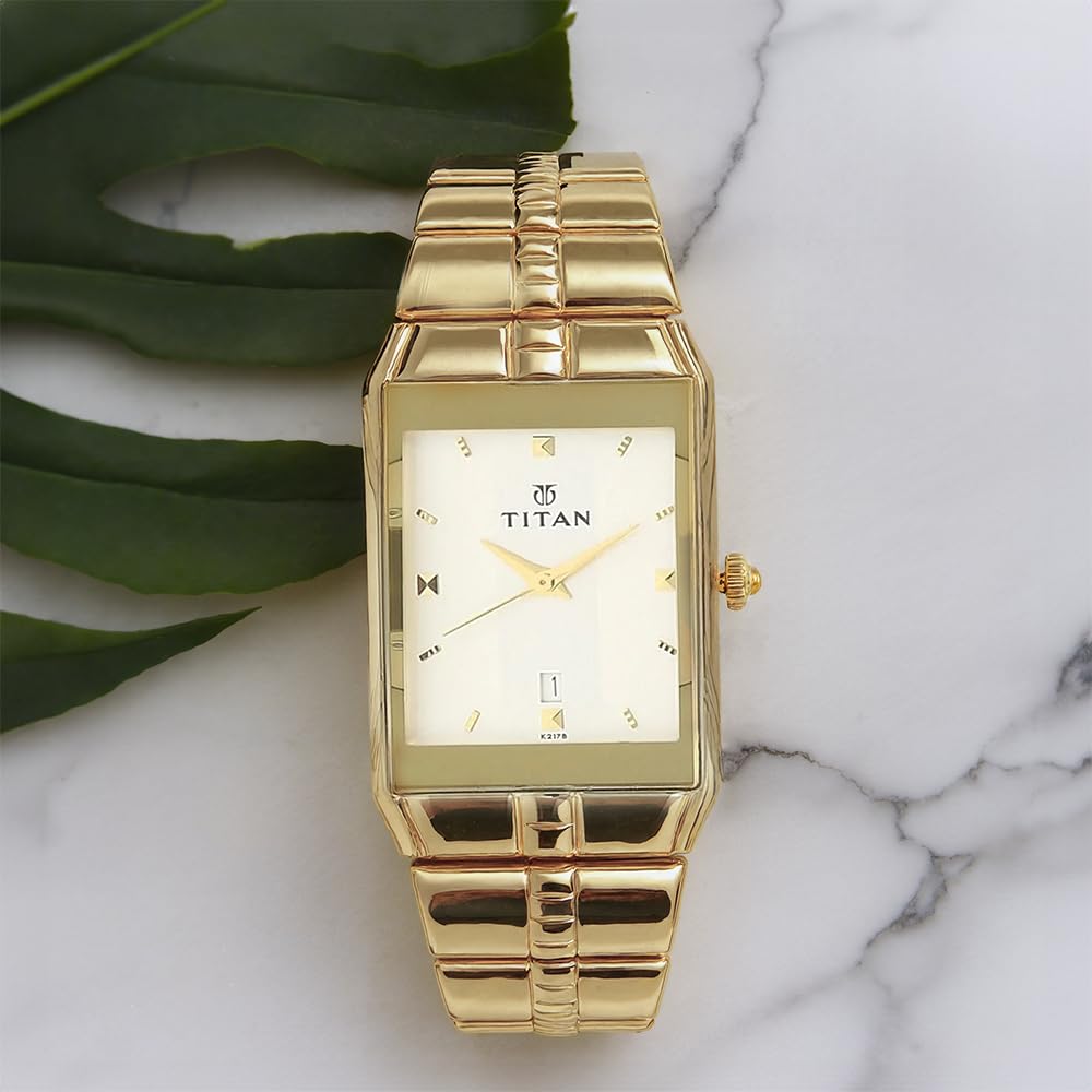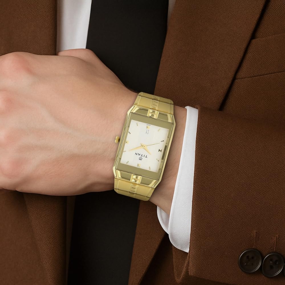 Brand: TitanColor: GoldFeatures: Rectangular Gold-Tone Case: Sleek and modern case shape for a distinctive wrist presence. Matte Gold Metal Strap:... Read more