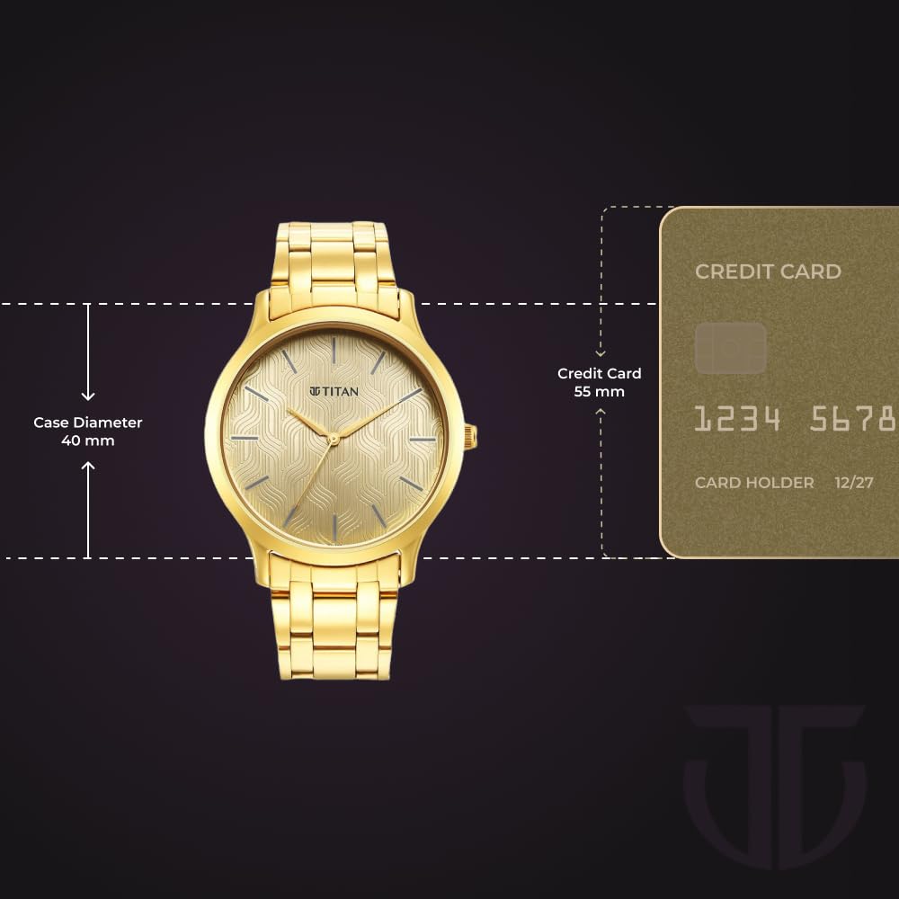 Brand: TitanColor: GoldFeatures: Gold-Toned Stainless Steel Strap: Shiny, durable bracelet enhances formal and festive appeal. Champagne Patterned Dial: Features a... Read more