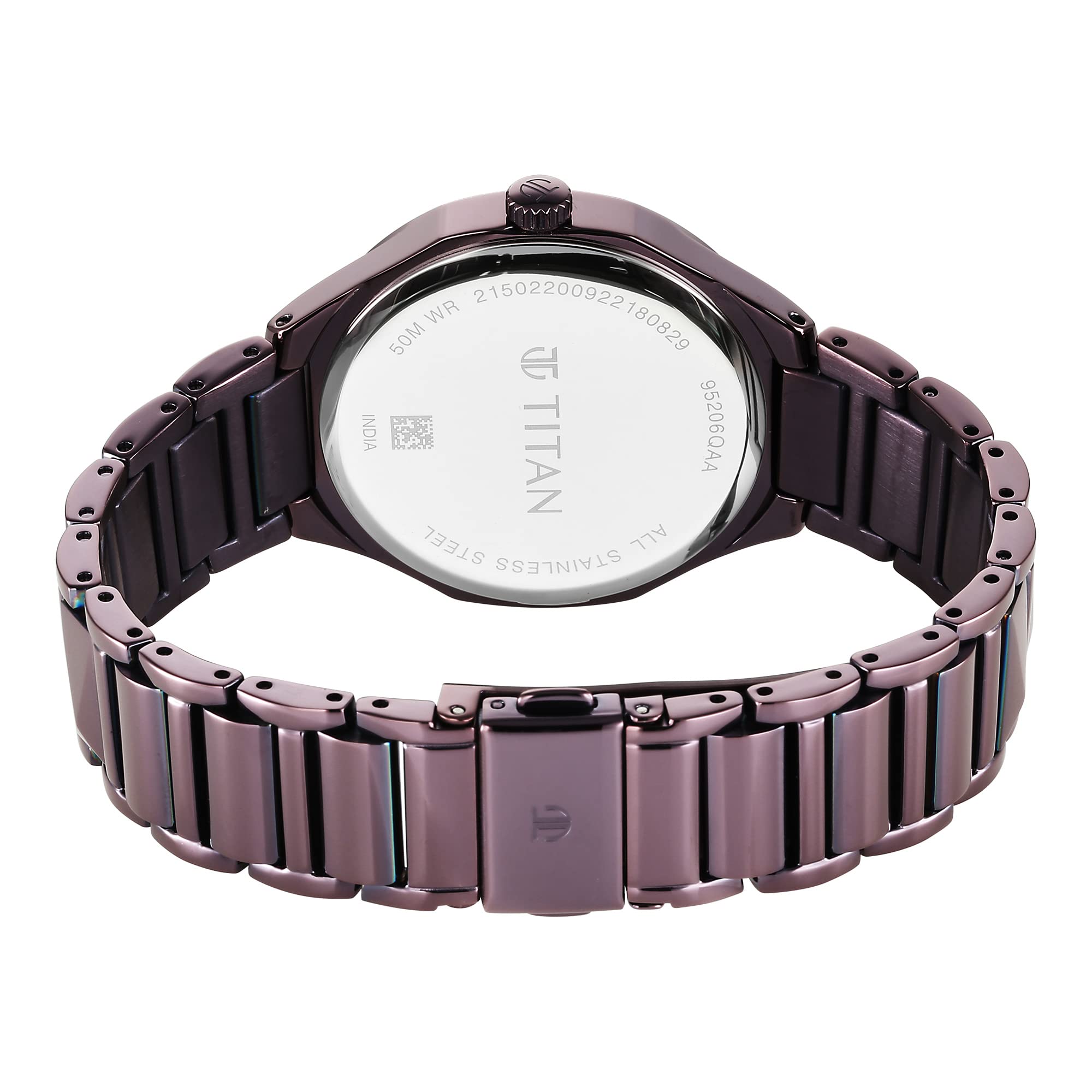 Titan Purple Glitz Quartz Analog Stainless Steel Strap Watch for Women-NS95206QM01