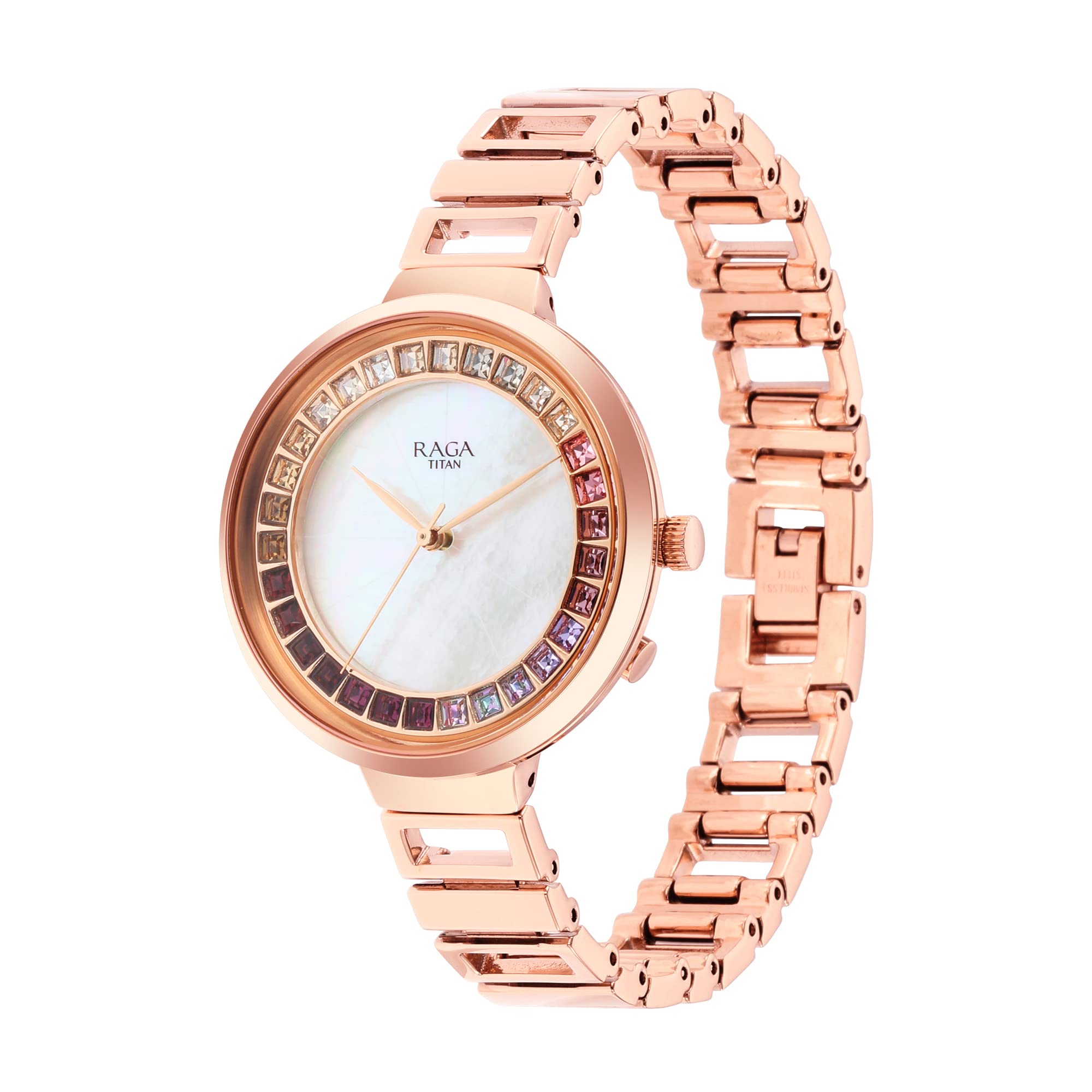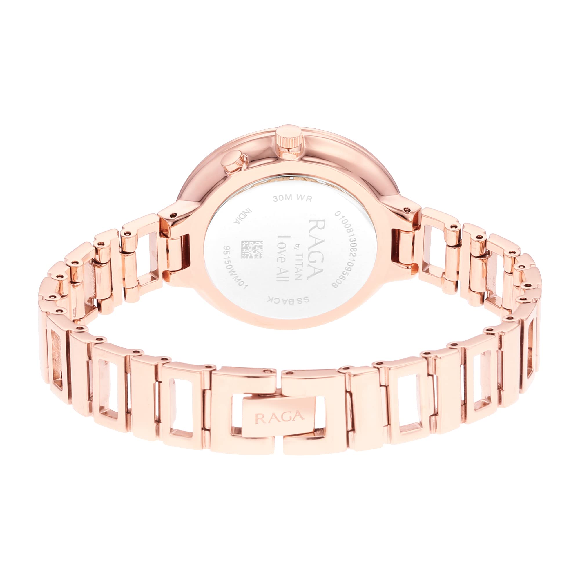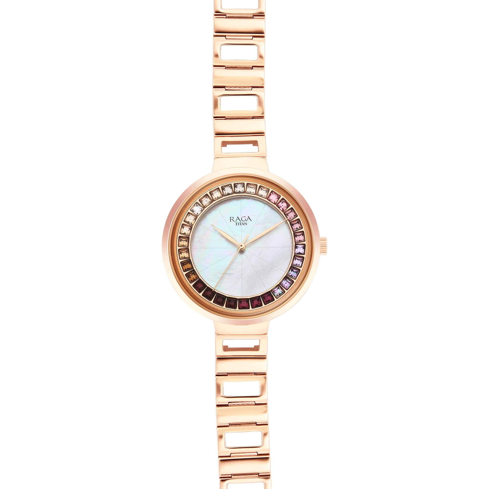 Titan Raga Love All Mother of Pearl Dial Women Silver White Analog Watch with Metal Strap-NS95150WM01