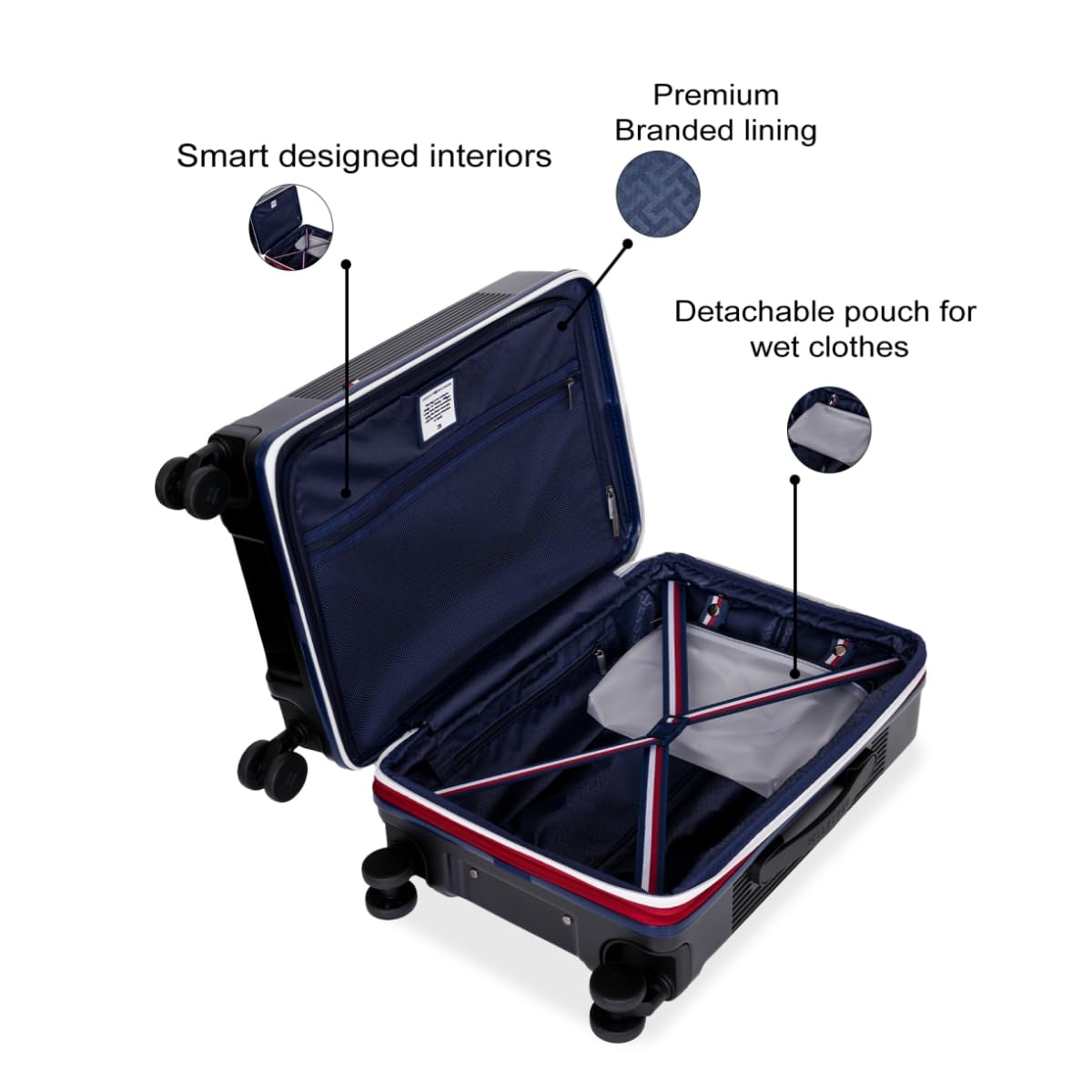 Tommy Hilfiger Mid-Size Luggage Patrick - Black | Check-in Trolley Bag with TSA Lock | 360° Spinner Wheels | Telescopic Handle |Hardshell Polycarbonate Suitcase |Water Resistance |74L Capacity |65cm