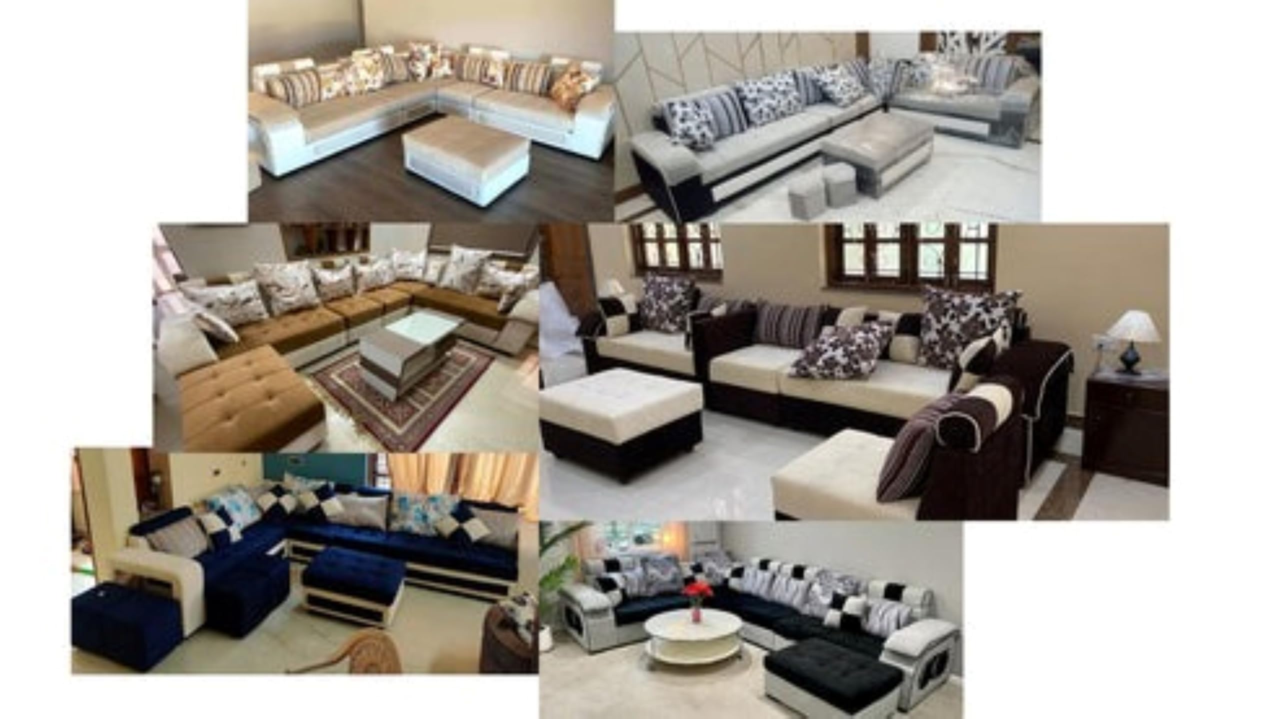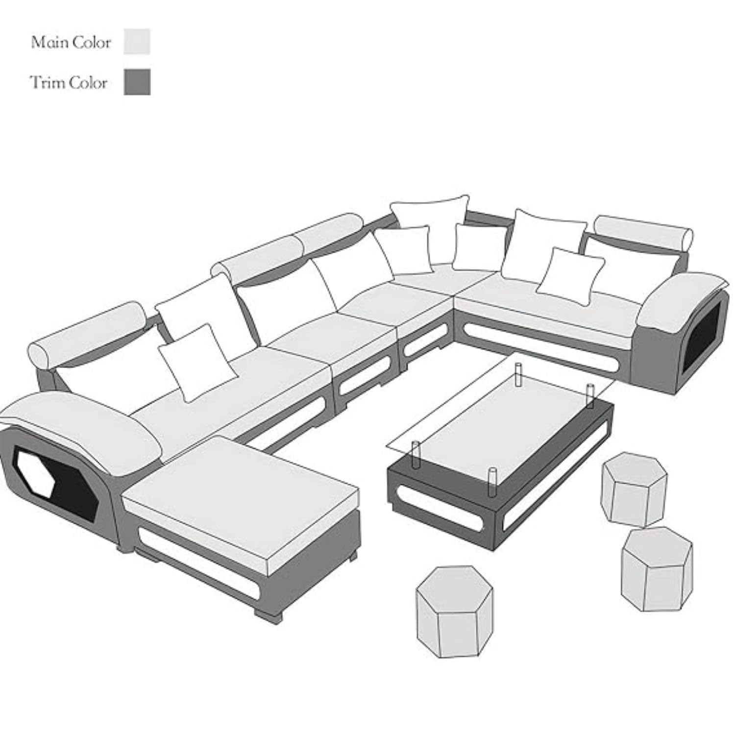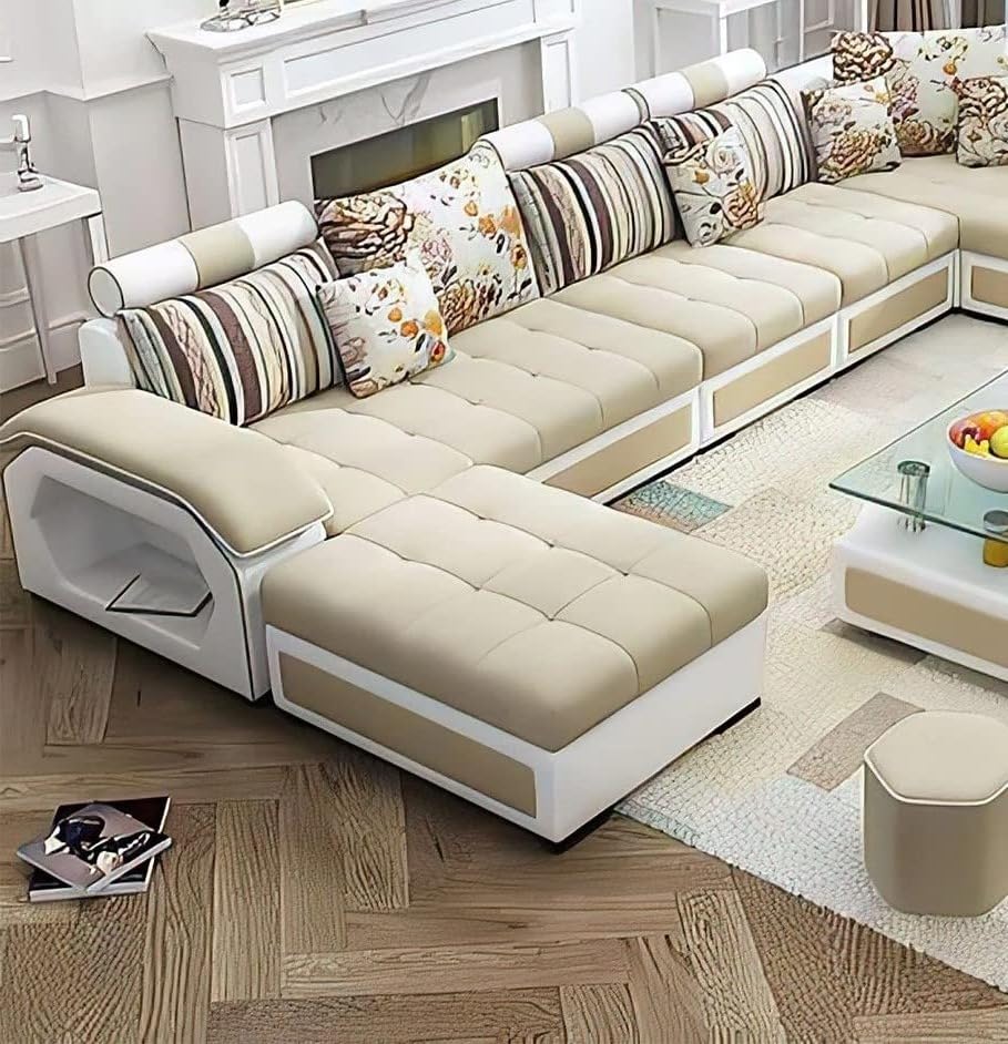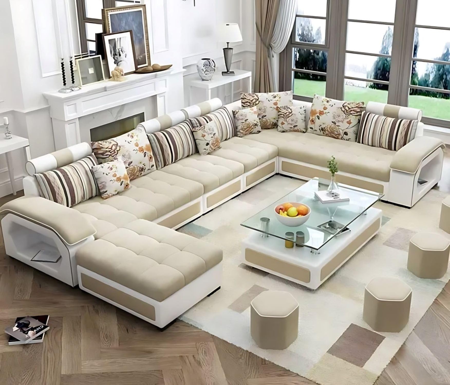 Torque - Silvester 12 Seater U Shaped Sofa for Living Room (Left Side, Beige & White) | Large 12-Seater Couch Set with Cushion and Stool | Fabric Sofa for Hall Festival Gifts
