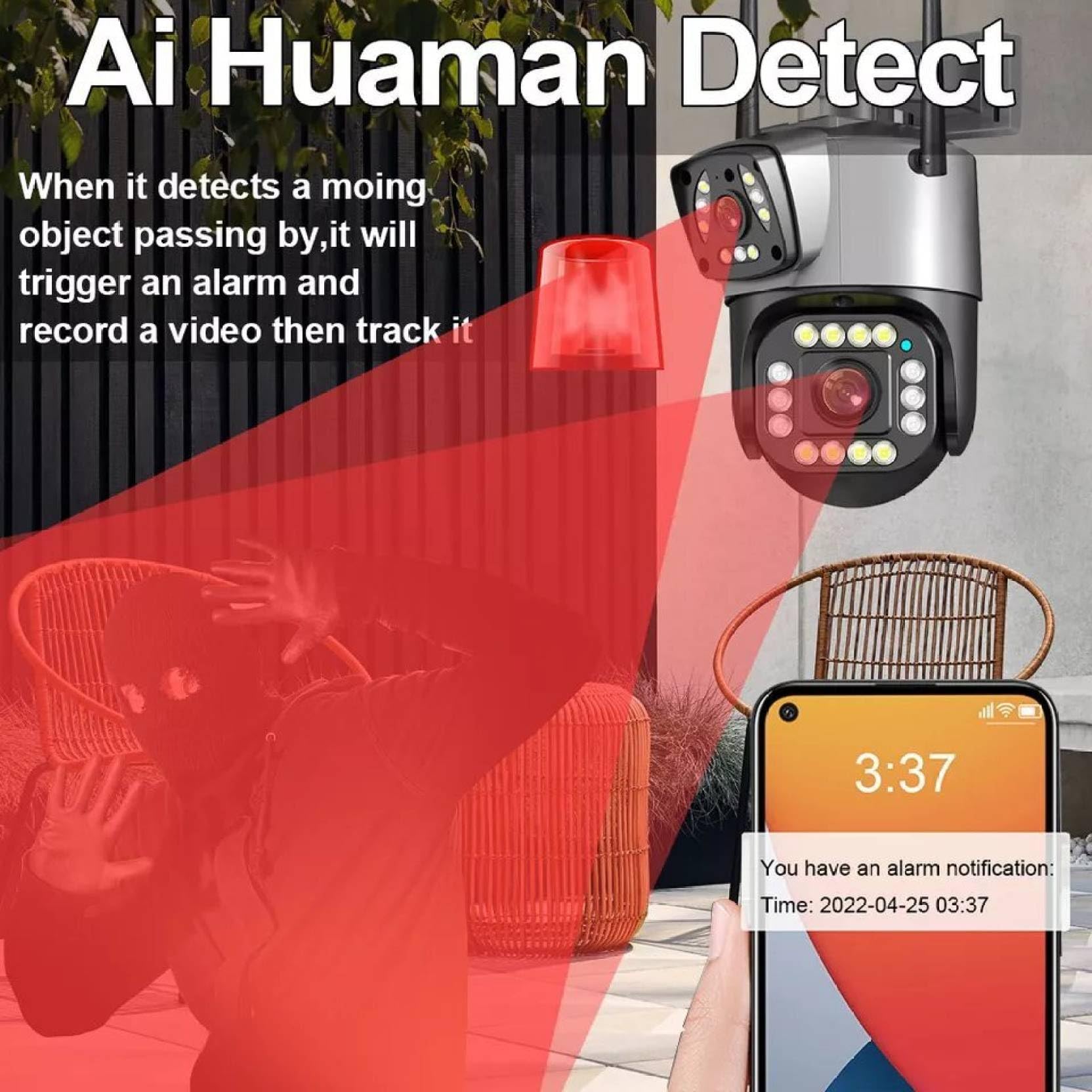 TP Plus 6MP WiFi Dual Lens Outdoor PTZ CCTV Camera 360 Degree View Night Vision