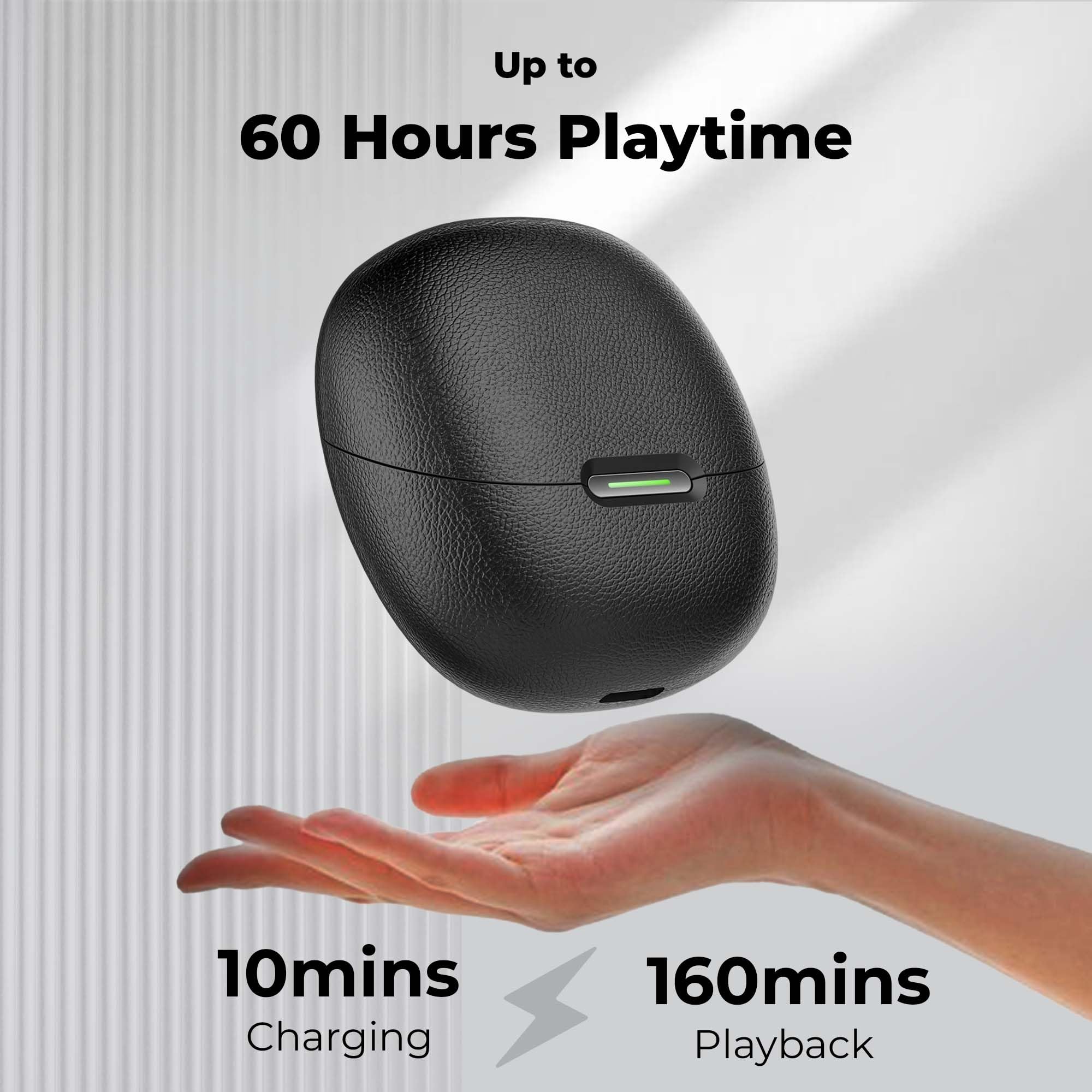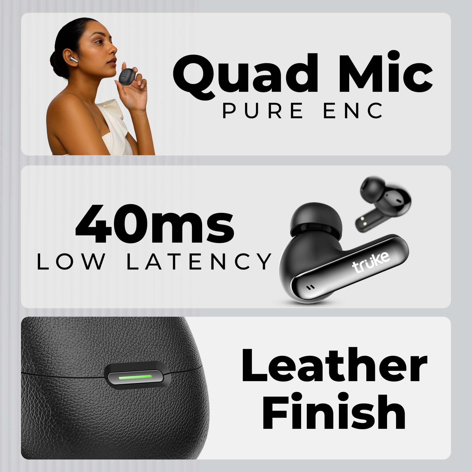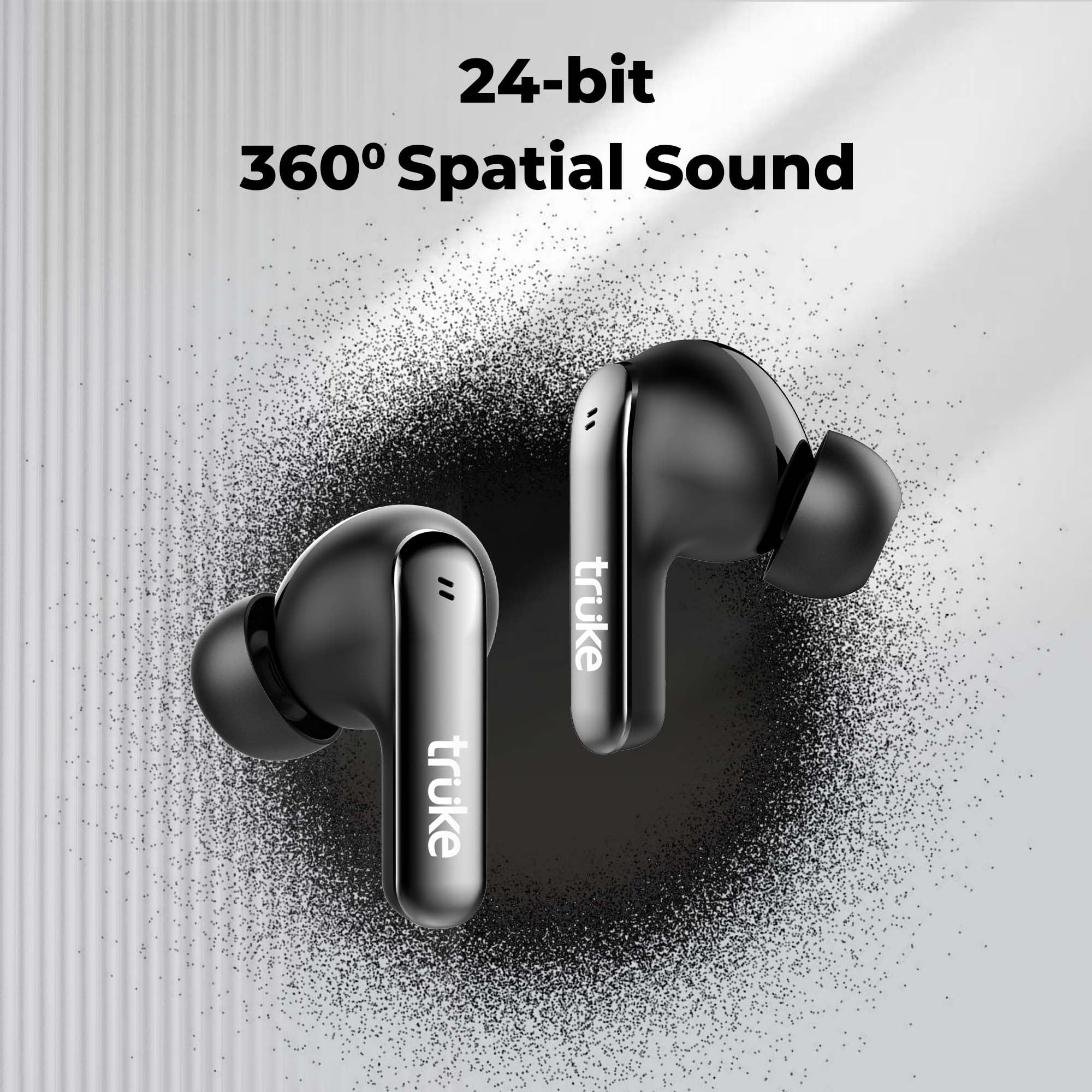 truke New Launch [2025] Mega 7 True Wireless in-Ear Earbuds w/ 24-Bit 360 Spatial Audio, 60H Playtime & Fast Charging Buds, Dual Pairing, 40ms Low Latency TWS, 4-Mic ENC, Made in India-(Coal Black)
