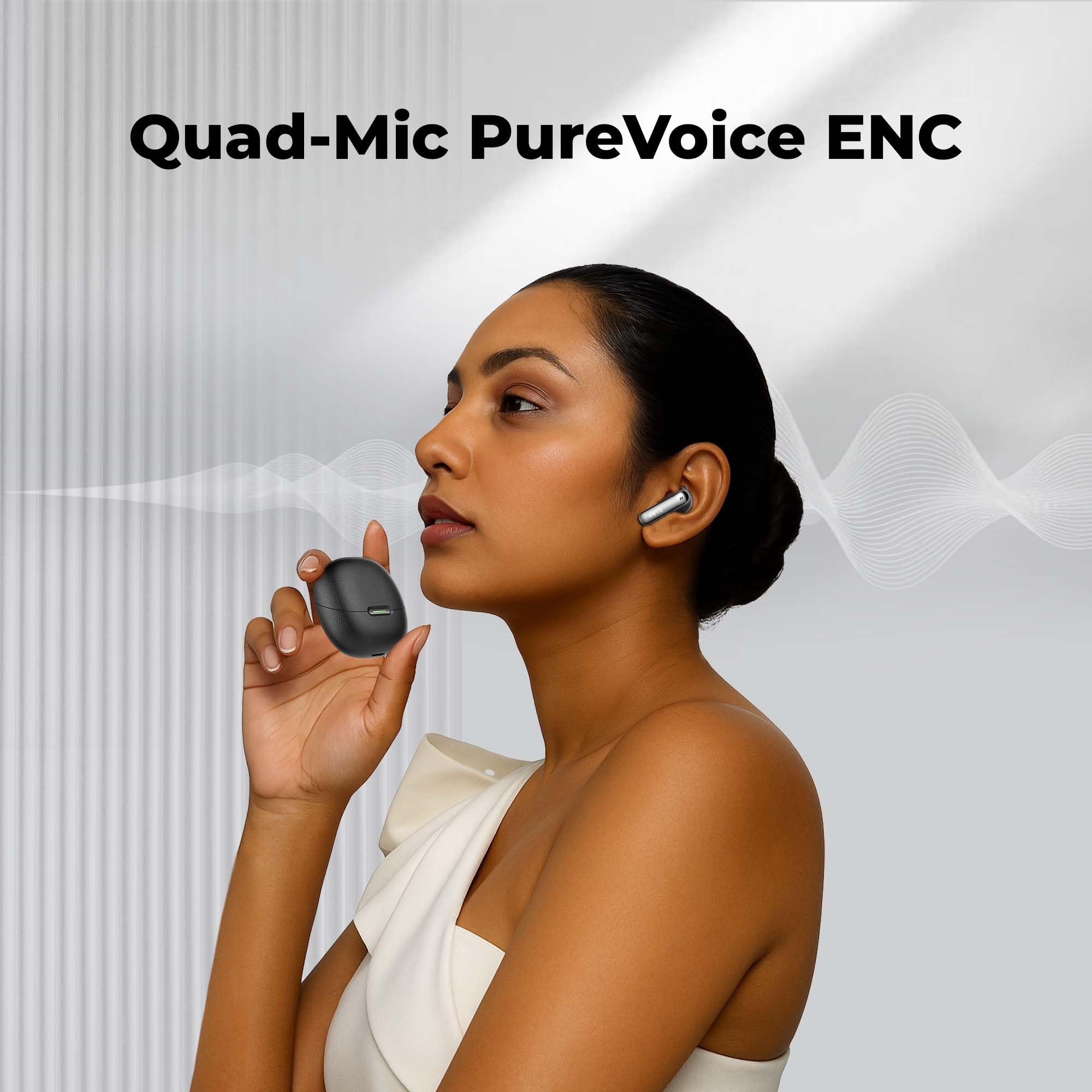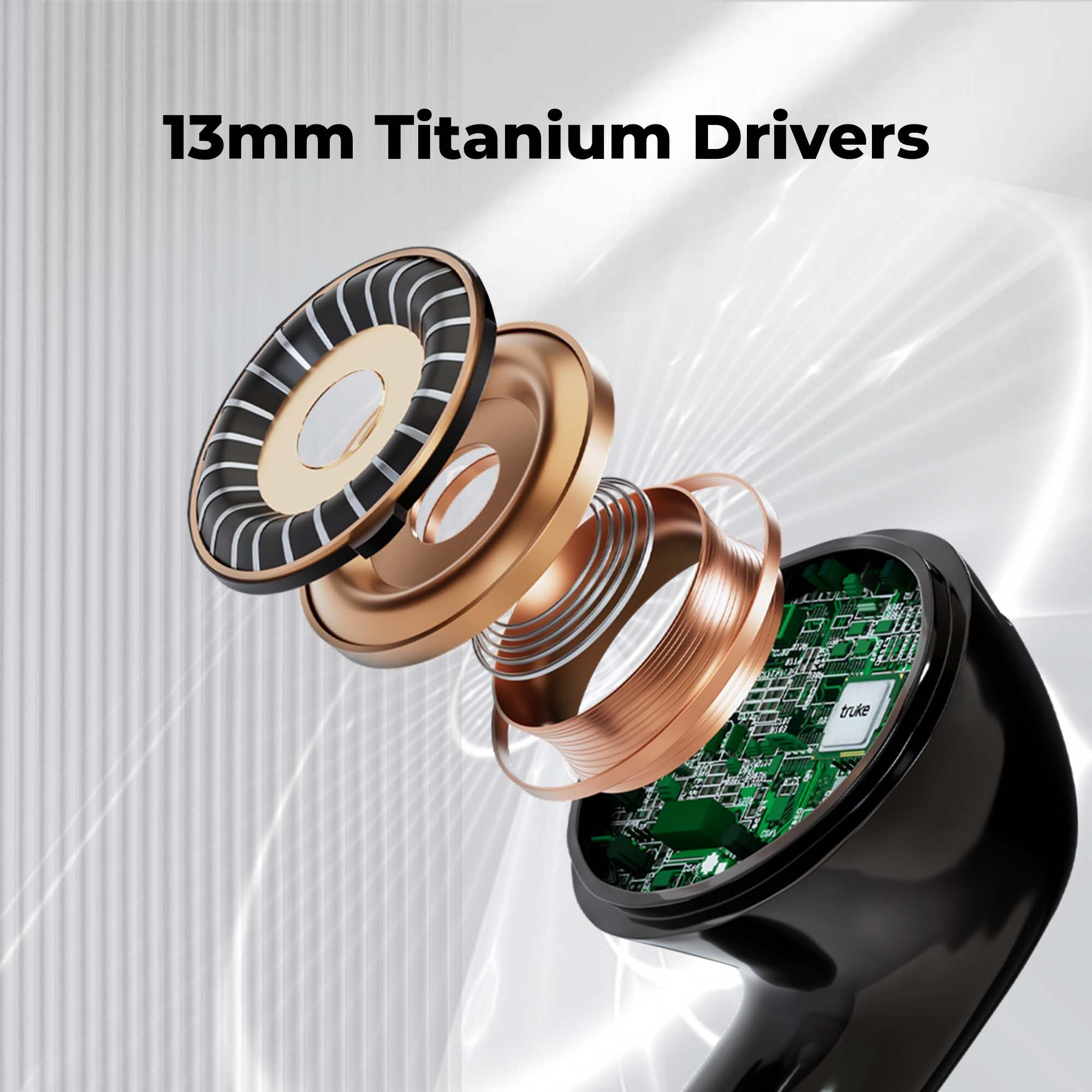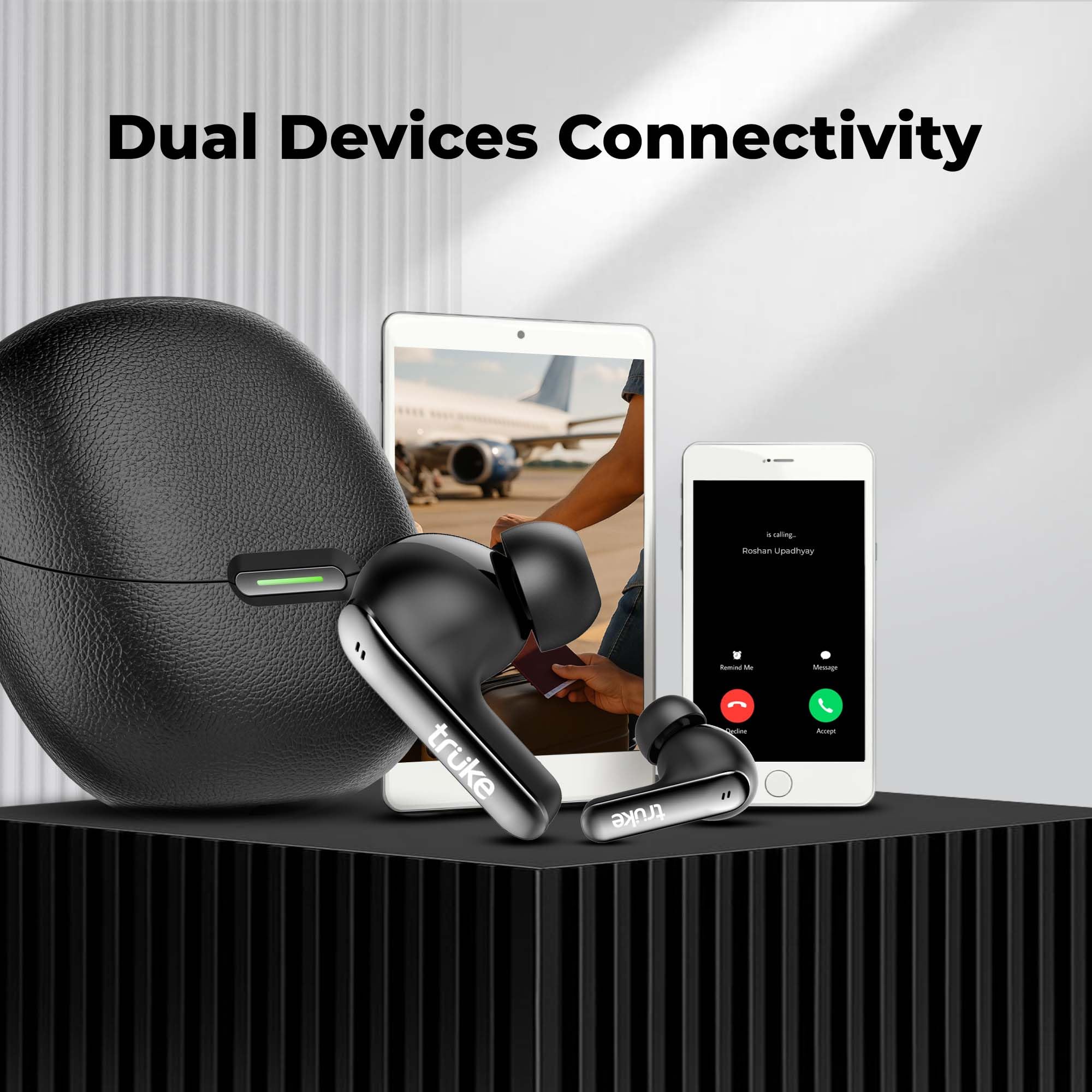 truke New Launch [2025] Mega 7 True Wireless in-Ear Earbuds w/ 24-Bit 360 Spatial Audio, 60H Playtime & Fast Charging Buds, Dual Pairing, 40ms Low Latency TWS, 4-Mic ENC, Made in India-(Coal Black)