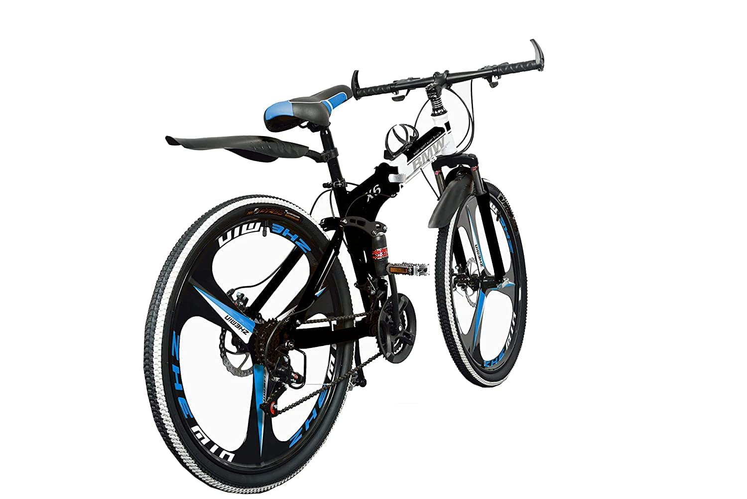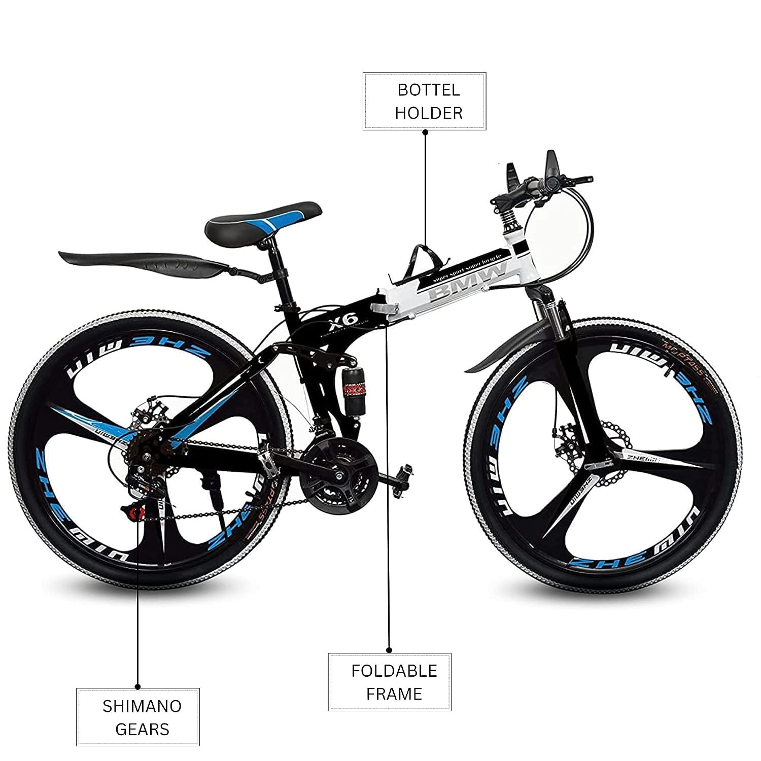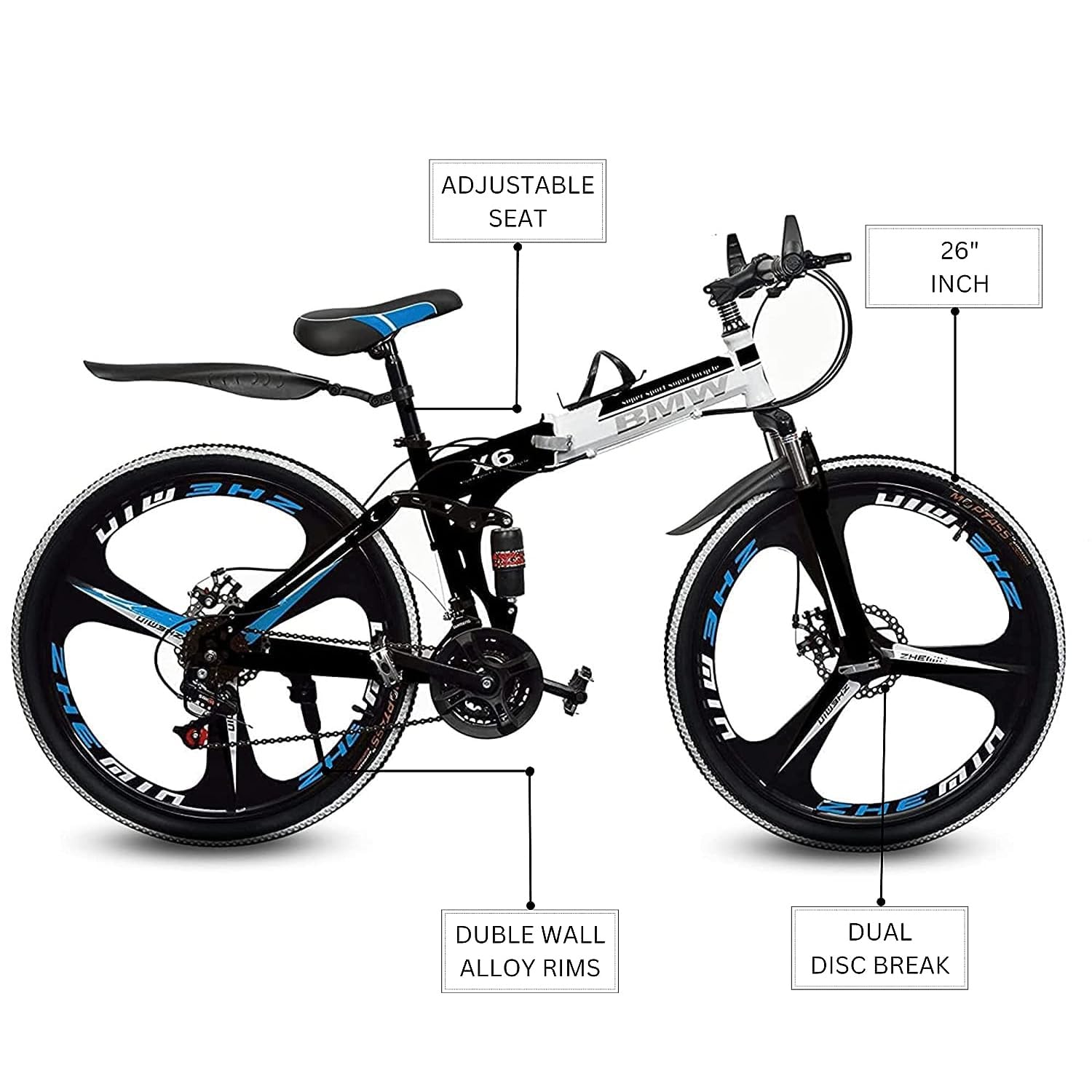 TRZINO BMV X6 Foldable Cruiser Bicycle | 26-Inch White Bike with 21-Speed Gears, Dual Disc Brakes, Hydraulic Suspension, and Strong Carbon Steel Frame | Great for City Rides and Off-Road Adventures