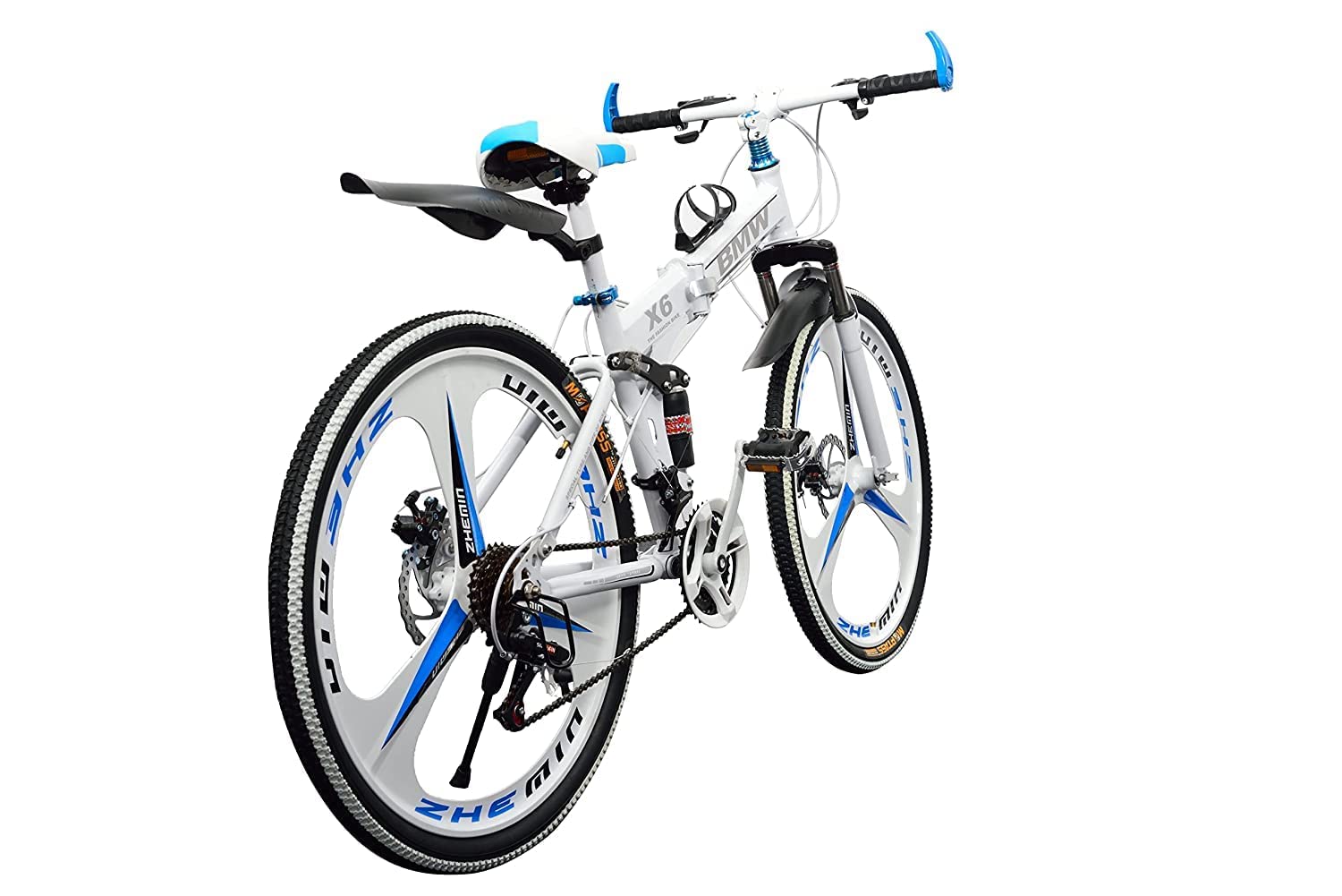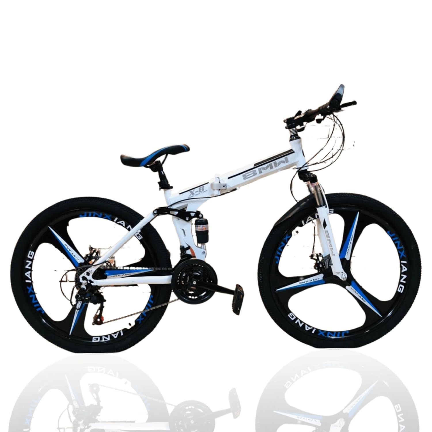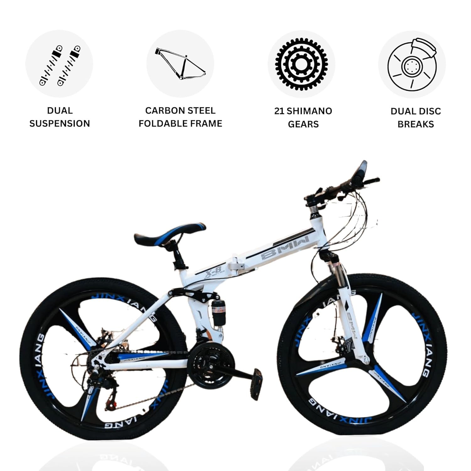 TRZINO BMV X6 Foldable Cruiser Bicycle | 26-Inch White Bike with 21-Speed Gears, Dual Disc Brakes, Hydraulic Suspension, and Strong Carbon Steel Frame | Great for City Rides and Off-Road Adventures